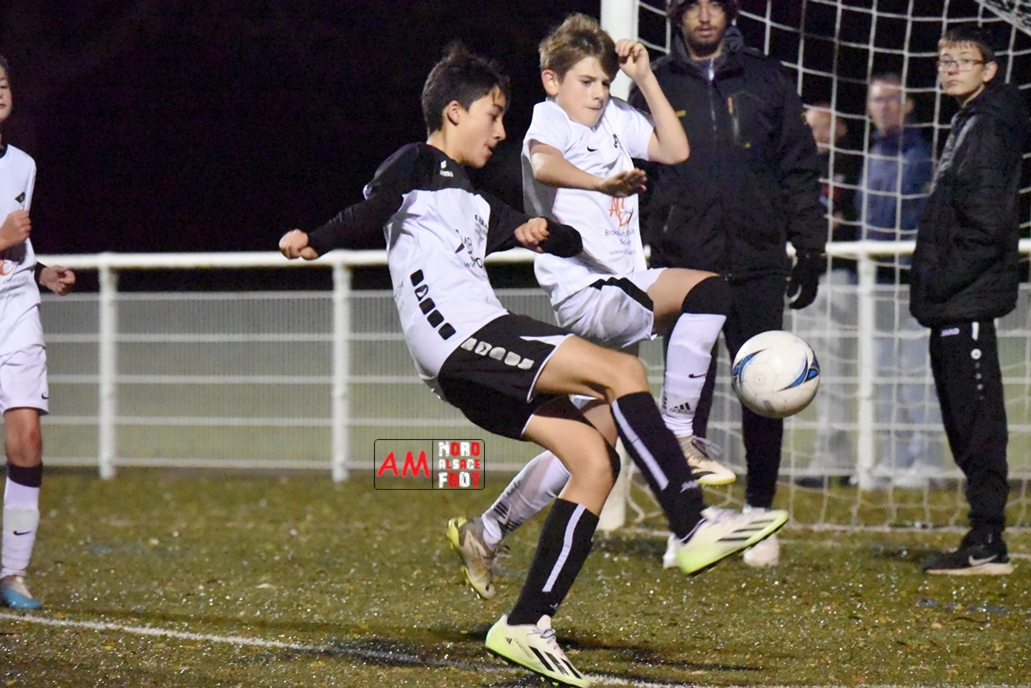 A l’occasion d’un match en retard comptant pour la sixième journée de championnat chez les U13/D3 (Poule AD), les U13-4 du GJAN (6e) accueillaient les U13-1 de la Section Jeunes Surbourg/Betschdorf (5e) afin de tenter d’enregistrer leur(s) premier(s) point(s) de cette phase automnale, et ce, face à des adversaires cherchant un premier résultat positif à l’extérieur depuis le début de l’exercice. Après une première période se soldant par un score de parité grâce à l’ouverture du score des visiteurs signée Trautmann Edgar (1ère) contre une égalisation des locaux signée Boukhalfa Amine (19e), les deux formations allaient se neutraliser tout au long du second acte avant qu’elles ne finissent par se quitter dos à dos sur ce score de 1-1! Retrouvez, ci-dessous, quelques images de cette rencontre et, pour en apprécier le contenu, veuillez cliquer sur l’une d’entre-elles pour afficher le diaporama.