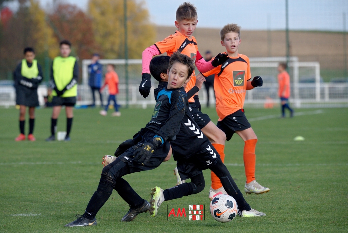 A l’occasion de la septième journée de championnat chez les U13/D1 (Groupe A), le Groupement Jeunes d’Alsace du Nord accueillait le FCSK 06 afin de tenter de faire perdurer leur série d’invincibilité (la dernière défaite remontant au 23 septembre contre l’actuel dauphin), et ce, face à des adversaires étant assez performants hors de leur camp de base. Après une première période se soldant par un court avantage en faveur des locaux grâce à une réalisation signée Beyer Liam (24e), ces derniers allaient faire le break à la 54e minute de jeu par l’intermédiaire de Ngako Ngaleu Dayane avant que les visiteurs ne réduisent la marque au cours du temps additionnel de ce second acte par l’intermédiaire de Aouaj Naël. Retrouvez, ci-dessous, quelques images de cette rencontre et, pour en apprécier le contenu, veuillez cliquer sur l’une d’entre-elles pour afficher le diaporama.