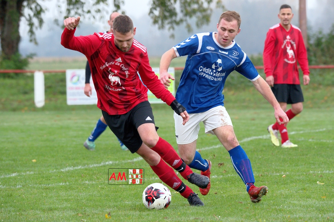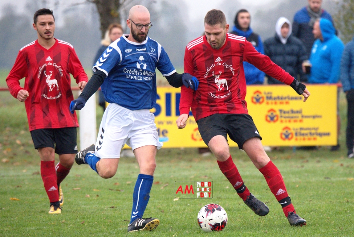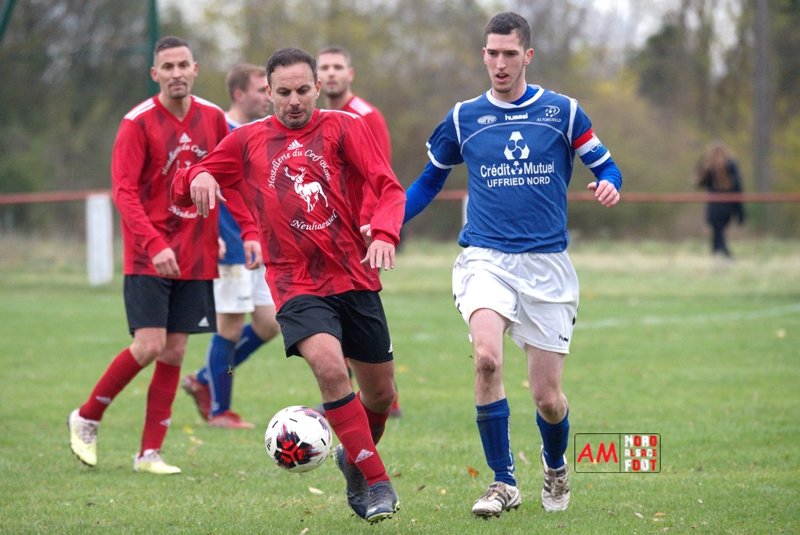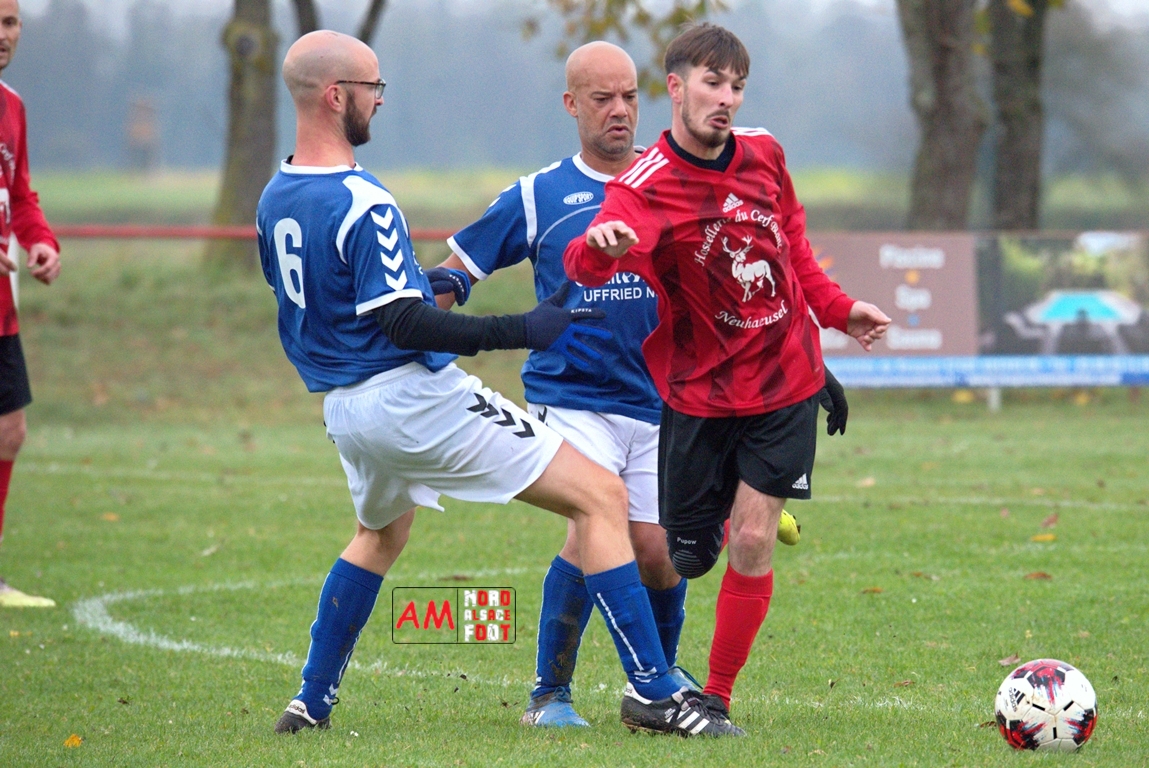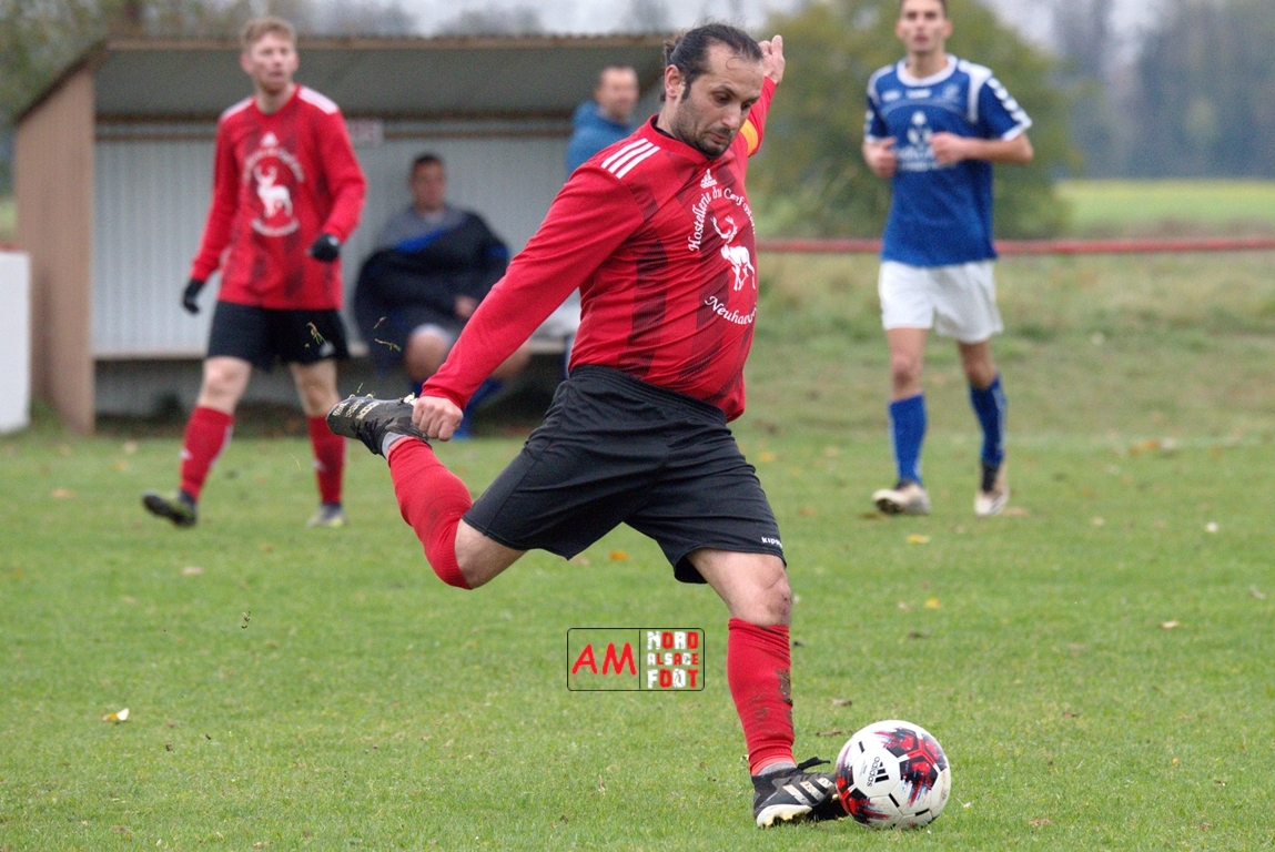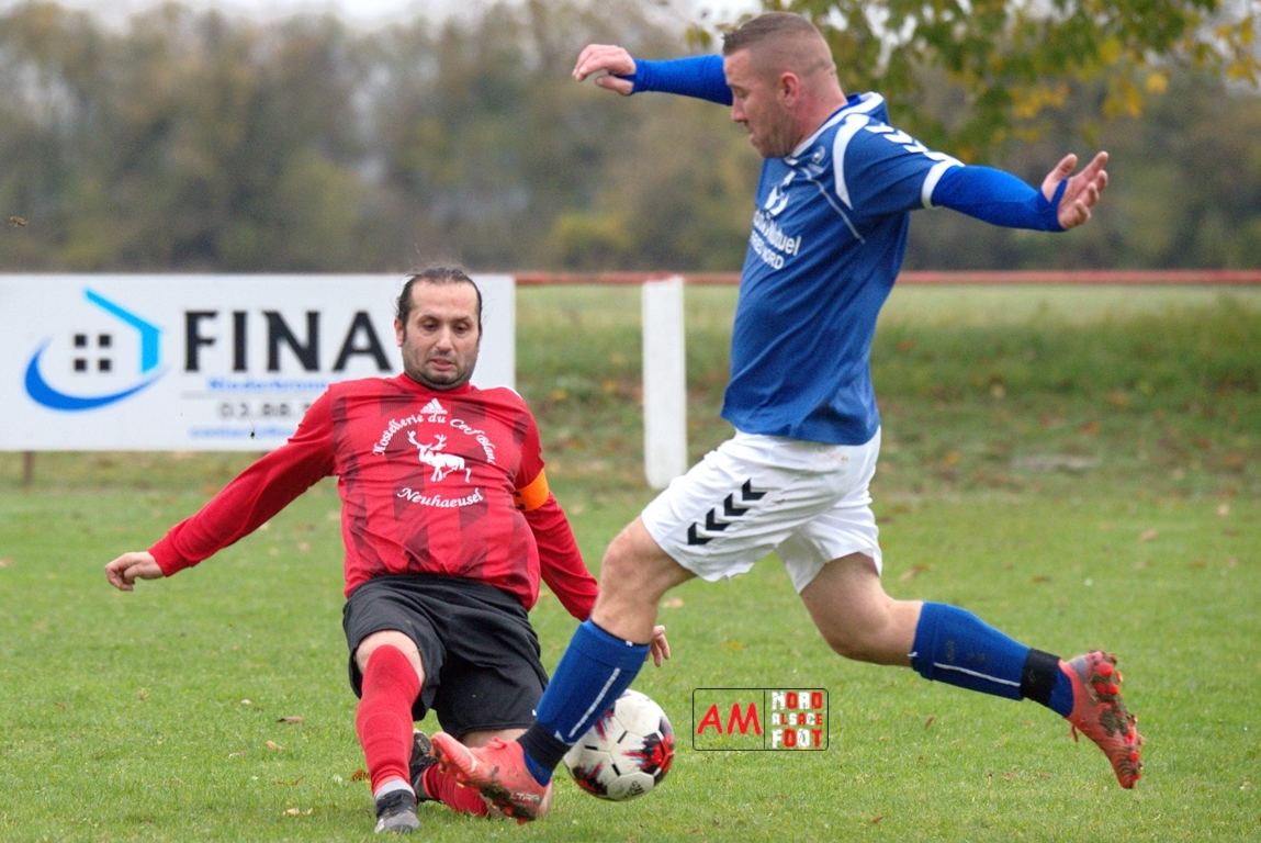 A l’occasion de la huitième et avant dernière journée de cette phase automnale en District 8 (Poule E), le FC Neuhaeusel (1er) accueillait l’AS Forstfeld 2 (2ème) pour un choc au sommet au terme duquel les locaux pouvaient creuser l’écart en tête de ce groupe en faveur d’une victoire ce dimanche matin et ce, face à des adversaires pouvant leur ravir la première place en cas de succès. Après une première période se soldant par un court avantage en faveur des locaux grâce à une réalisation signée Schissele Romain (41e), ces derniers allaient prendre le large en seconde période en ajoutant deux buts au compteur par l’intermédiaire de Fels Frédéric (55e) et de Gast Kévin (80e) avant qu’ils ne finissent par largement s’imposer sur ce score de 3-0! Retrouvez, ci-dessous, quelques images de cette rencontre et, pour en apprécier le contenu, veuillez cliquer sur l’une d’entre-elles pour afficher le diaporama.