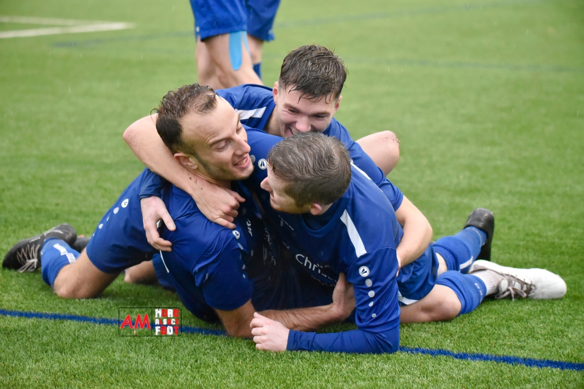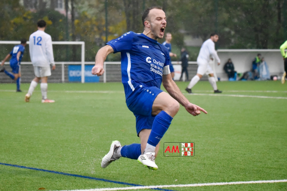 Herrmann Mathieu (EMM) se rendit coupable d’une faute sur Michalczyk Hervé à hauteur de la ligne médiane et légèrement excentrée sur la droite occasionnant un coup-franc que Meyer Brice se chargea de botter en direction de la meute de joueurs présente devant le but adverse à hauteur duquel Zacher Jordan reprit le cuir d’une frappe étant repoussée par Schmaltz Simon, le défenseur central local reprenant ensuite une seconde fois le cuir d’une frappe faisant trembler les filets, 1-0!