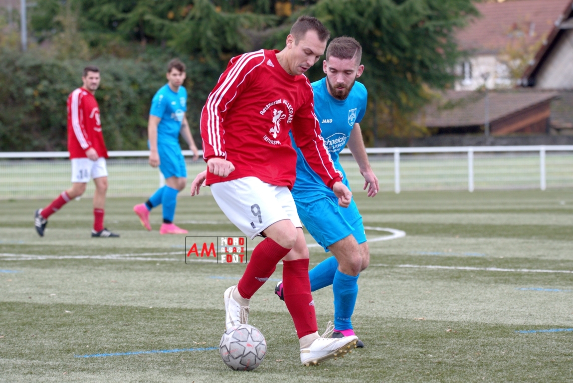 A l’occasion de la neuvième journée de championnat en District 8 (Poule D), le FC Rott 2 (7e) accueillait le FC Hoffen 1 (1er) afin de tenter de remporter une première victoire à domicile, et ce, face à des adversaires voulant la victoire pour consolider leur place de leader. Après une première période se soldant par un avantage confortable en faveur des visiteurs grâce à des réalisations signées Heller Joan (28e) et Cullmann Lucas (29e), les deux formations allaient se neutraliser au cours de la seconde période avant que le FC Hoffen ne finisse par s’imposer sur ce score de 0-2! Retrouvez, ci-dessous, quelques images de cette rencontre et, pour en apprécier le contenu, veuillez cliquer sur l’une d’entre-elles pour afficher le diaporama.