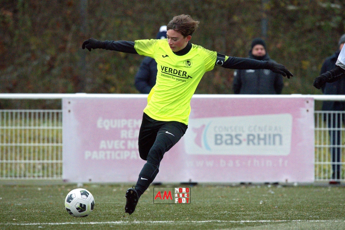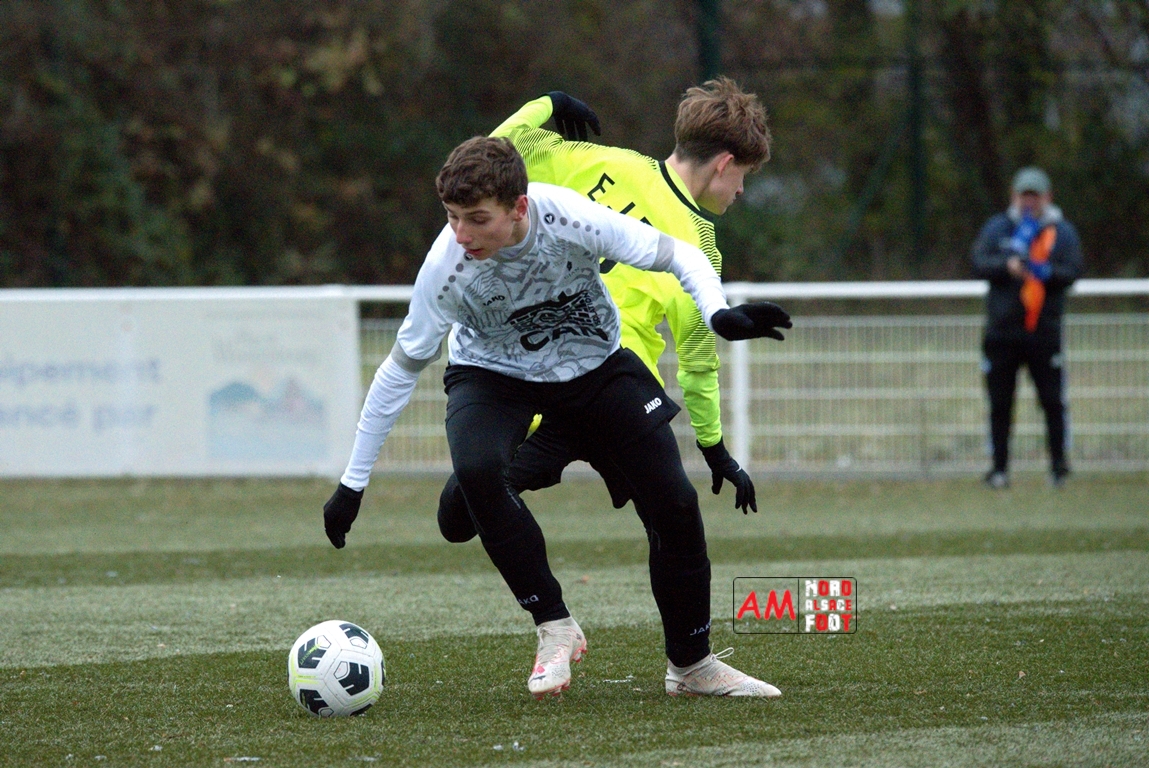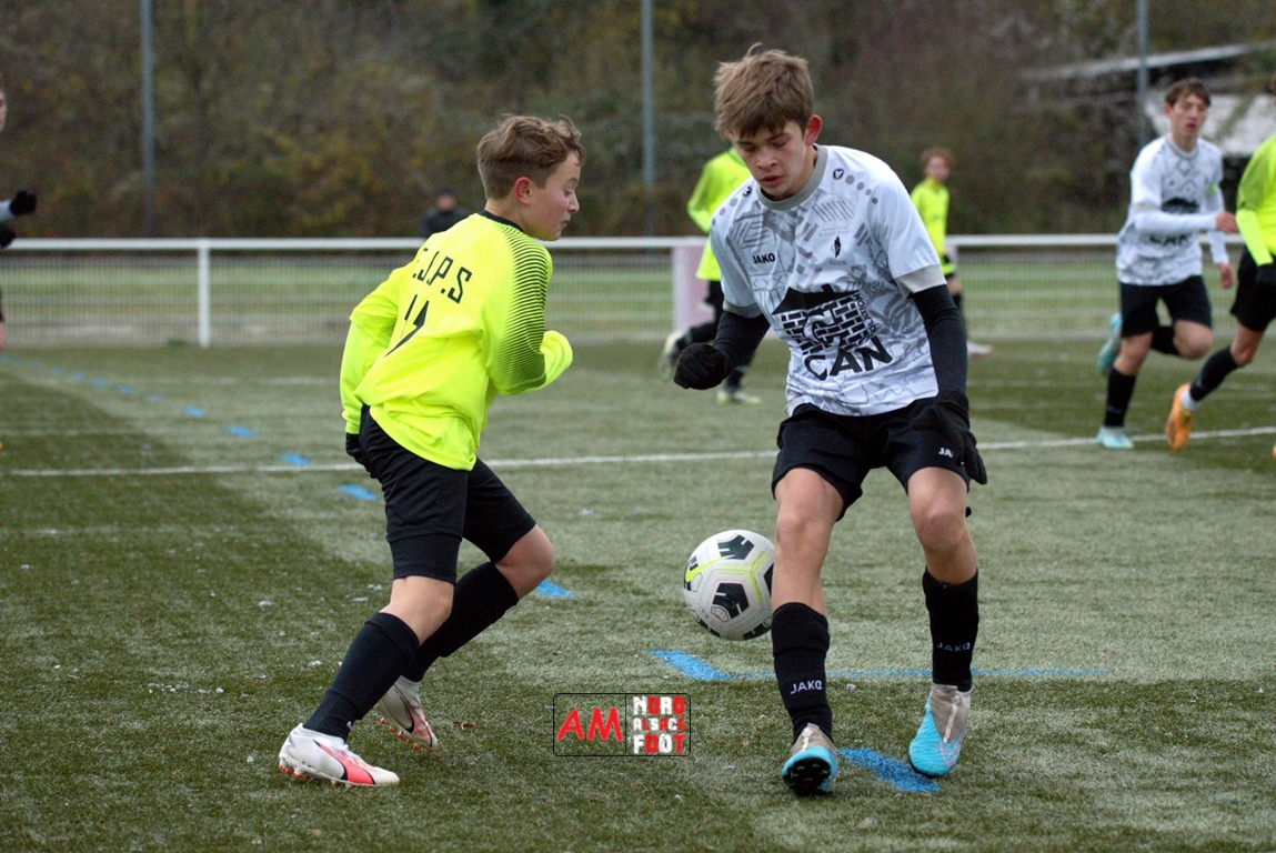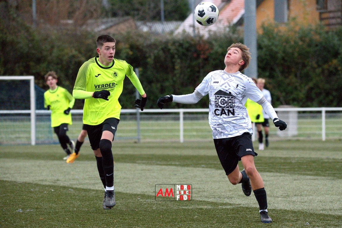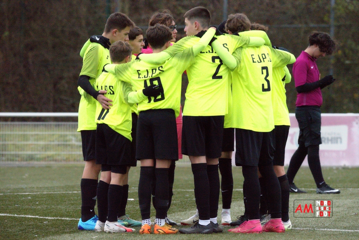 A l’occasion de la onzième journée de championnat chez les U15/R2 (Poule C), le Groupement Jeunes d’Alsace du Nord (5e) accueillait l’Entente Jeunes du Pays de Sierentz (9e) afin de tenter de faire perdurer leur série de quatre matchs sans défaites, et ce, face à des adversaires semblant à leur portée. Après une première période se soldant par un avantage confortable en faveur des visiteurs (0-2), ces derniers allaient corser l’addition en seconde période en ajoutant un but au compteur tout en en concédant un avant qu’ils ne finissent par s’imposer sur ce score de 1-3! Retrouvez, ci-dessous, quelques images de cette rencontre et, pour en apprécier le contenu, veuillez cliquer sur l’une d’entre-elles pour afficher le diaporama.