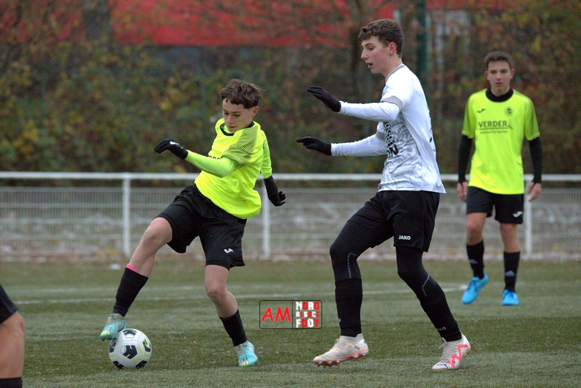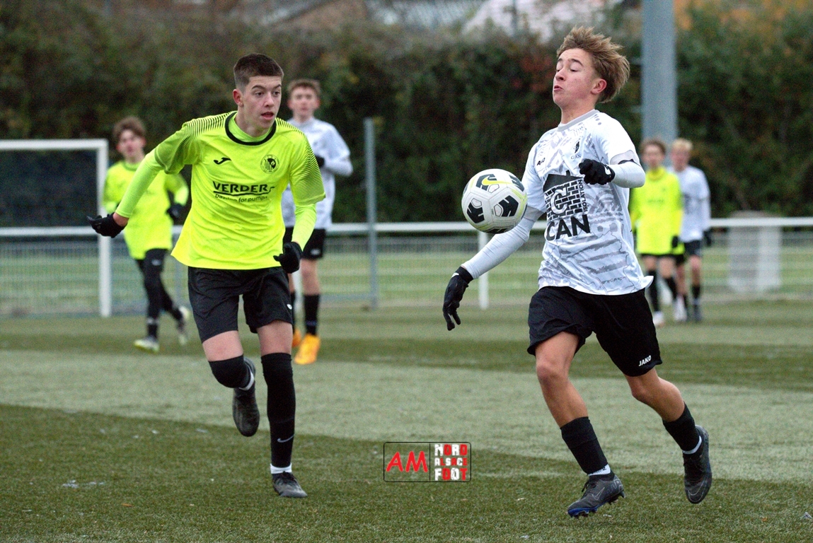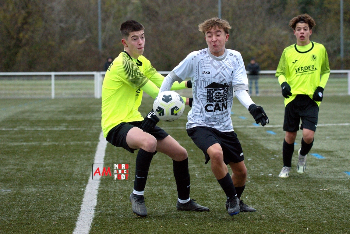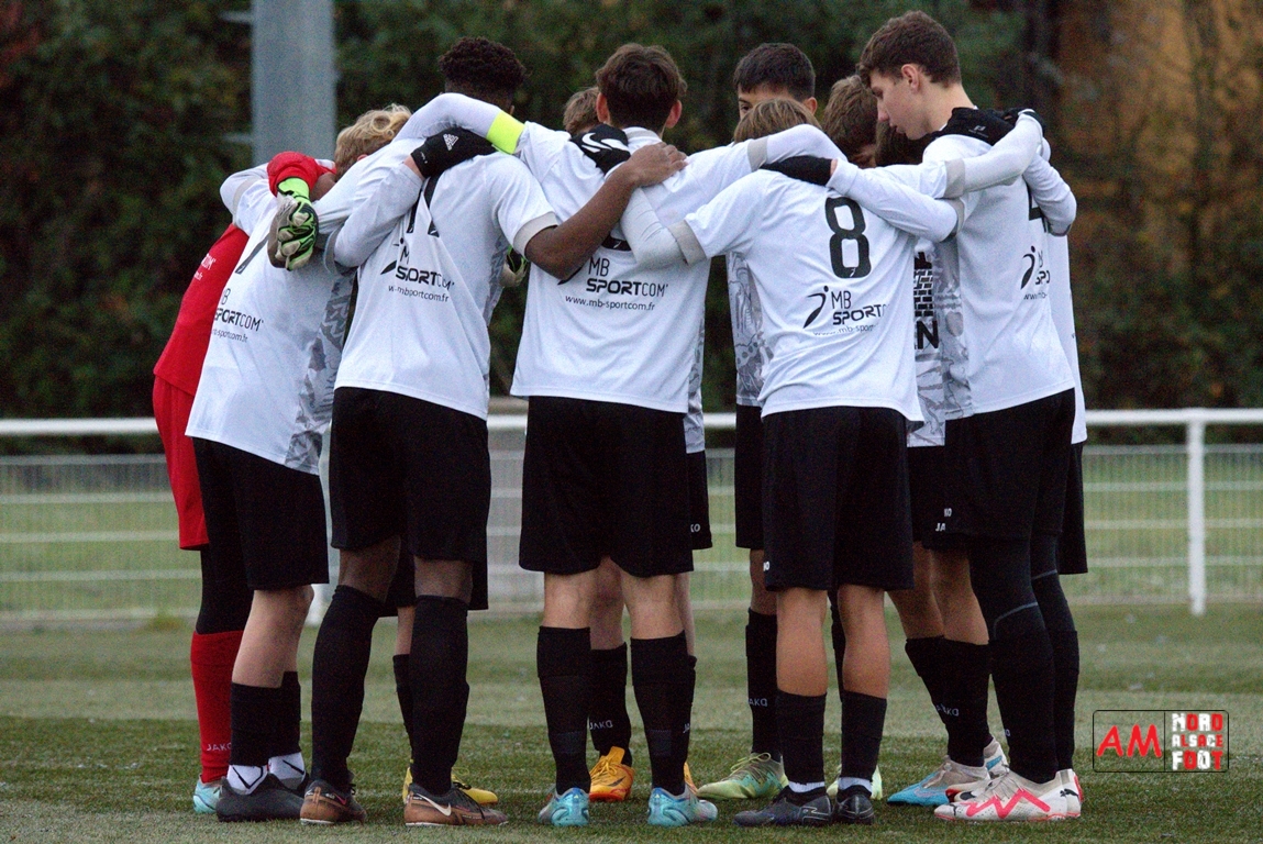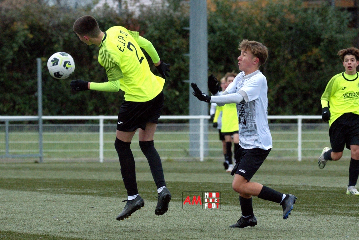 A l’occasion de la onzième journée de championnat chez les U15/R2 (Poule C), le Groupement Jeunes d’Alsace du Nord (5e) accueillait l’Entente Jeunes du Pays de Sierentz (9e) afin de tenter de faire perdurer leur série de quatre matchs sans défaites, et ce, face à des adversaires semblant à leur portée. Après une première période se soldant par un avantage confortable en faveur des visiteurs (0-2), ces derniers allaient corser l’addition en seconde période en ajoutant un but au compteur tout en en concédant un avant qu’ils ne finissent par s’imposer sur ce score de 1-3! Retrouvez, ci-dessous, quelques images de cette rencontre et, pour en apprécier le contenu, veuillez cliquer sur l’une d’entre-elles pour afficher le diaporama.