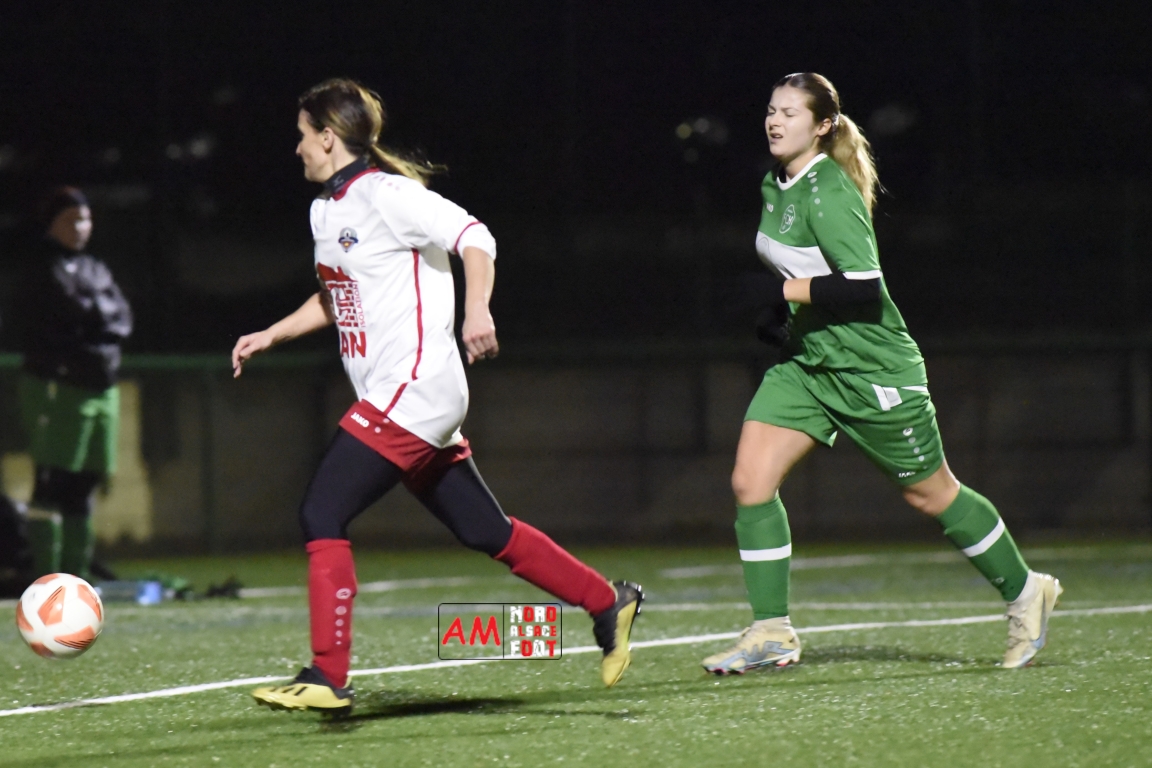 A l’occasion d’un match en retard comptant pour la première journée de championnat chez les Séniors à 8 Féminines (Poule C), le FR Schoenenbourg/M. accueillait le FC Herrlisheim afin de tenter de conclure cette phase automnal par un résultat positif, et ce, face à des adversaires qui les avaient battues au match aller (4-2). Après une première période se soldant par un score nul et vierge, il fallut attendre le retour des vestiaires pour voir le FRSM ouvrir la marque par l’intermédiaire de Meinzer Lisa (41e) avant que Jung Sarah ne fasse le break à la 63e minute de jeu, les deux formations se neutralisant ensuite jusqu’au coup de sifflet final scellant la victoire du FR Schoenenbourg/M. sur ce score de 2-0! Retrouvez, ci-dessous, quelques images de cette rencontre et, pour en apprécier le contenu, veuillez cliquer sur l’une d’entre-elles pour afficher le diaporama.