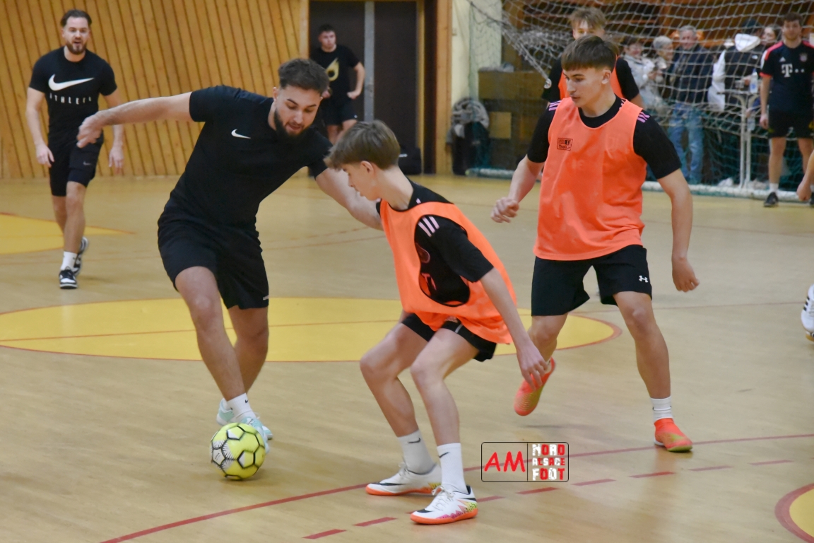 A l’occasion de la seconde édition du Tournoi en salle organisé par l’AS Hatten, pas moins de seize équipes se sont données rendez-vous sur le parquet de la salle polyvalente du village afin de tenter de succéder au “Bayern de Monique”, tenant du titre. Après plus de dix heures de tournoi reparties sur les deux journées, c’est finalement le “Bayern de Monique” qui conserva son titre en s’imposant en finale face au “Race in Club de Schalgbourg”, le “Circus Seltzus”, la “Tom tom team”, “Abracadabarbe”, “Les wowos”, le “FC Dropspotz”, “Les dentistes des Favelas”, le “FC Chaudières”, l’ASH 98, les “Y’a R”, la “Finition chirurgicale”, le “Später Peter FC”, les “Ultras de D8”, le “Picon FC” et les “Civils de Merde” (fft) complétèrent le tableau dans l’ordre. Retrouvez, ci-dessous, les images de la première soirée et celle de la seconde soirée et, pour en apprécier le contenu, veuillez cliquer sur l’une d’entre-elles pour afficher le diaporama.