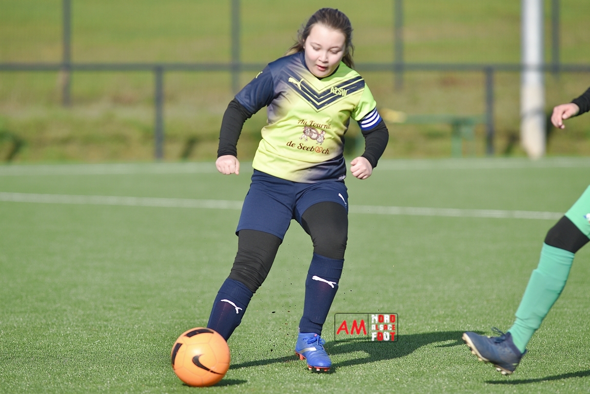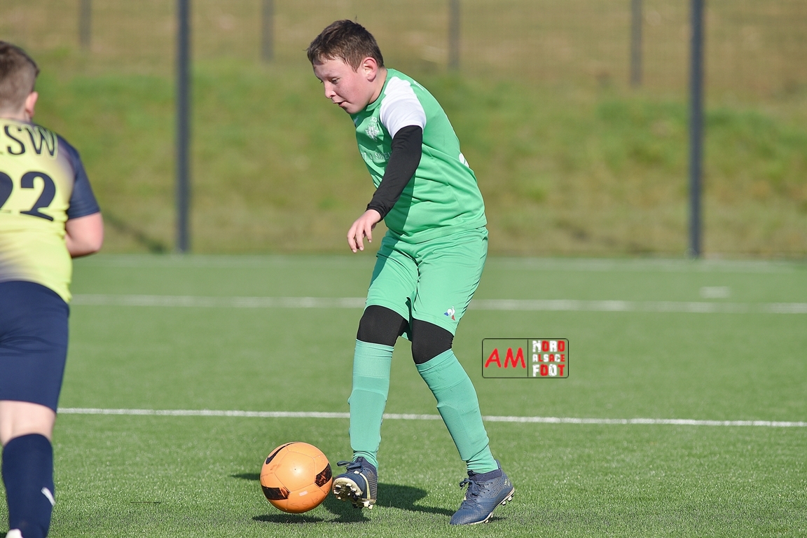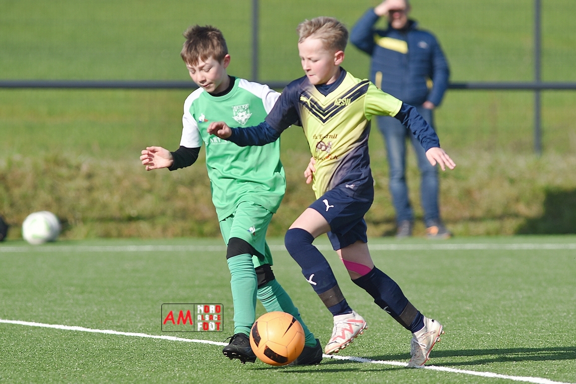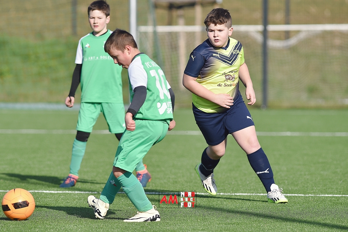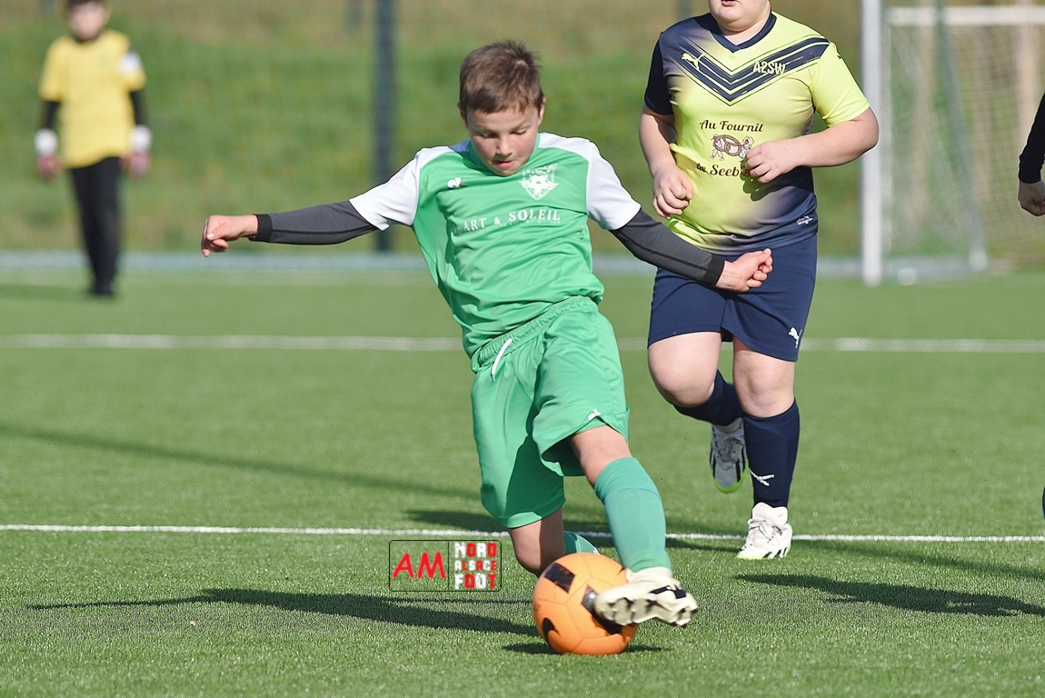 A l’occasion d’un match amical, les U11-1 de l’entente Seebach/EA2SW (District 3) accueillait les U11-2 de l’Entente de la Plaine du Rhin (District 3) afin de tenter de débuter par une victoire, et ce, face à des adversaires ayant domptés, la semaine dernière l’US Oberlauterbach 2&3 (4-2). Après une première période se soldant par un court avantage en faveur des visiteurs grâce à une réalisation signée Massé Baptiste (5e), ce dernier allait récidiver au retour de la pause (26e) avant que Stieber Jade (34e) ne lui emboite le pas, les locaux réduisant ensuite la marque par l’intermédiaire de Loehr Maxime (35e) et, à trois minutes du terme de cette rencontre, Massé Baptiste s’offrit un triplé permettant finalement aux U11-2 de l’Entente de la Plaine du Rhin de s’imposer sur ce score de 1-4! Retrouvez, ci-dessous, quelques images de cette rencontre et, pour en apprécier le contenu, veuillez cliquer sur l’une d’entre-elles pour afficher le diaporama.