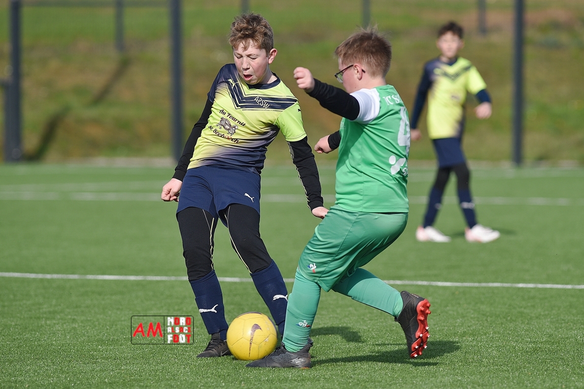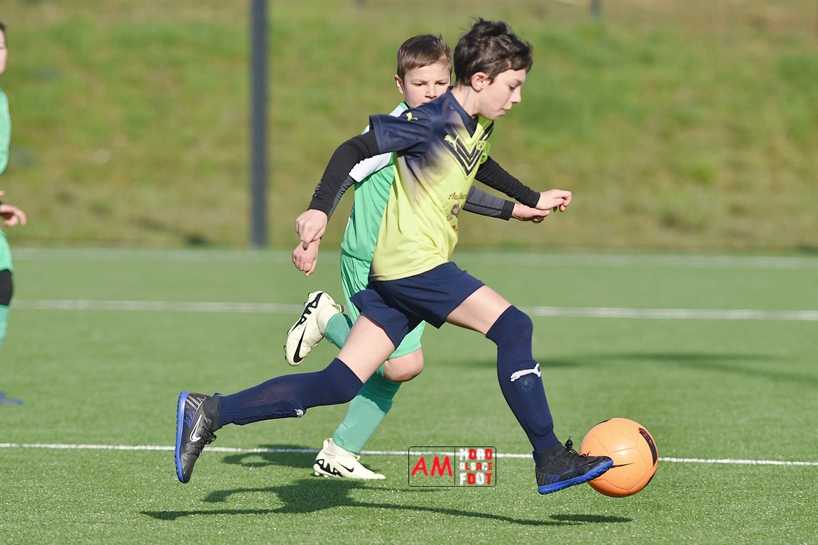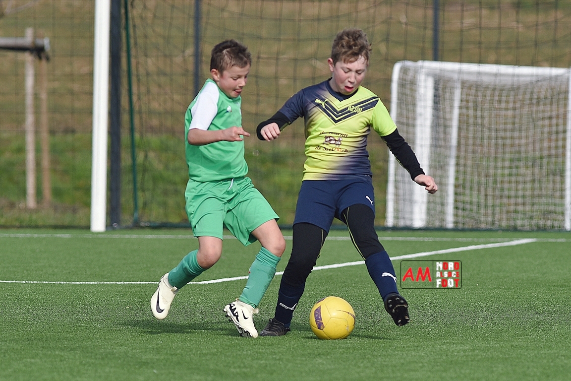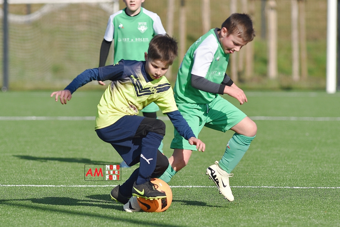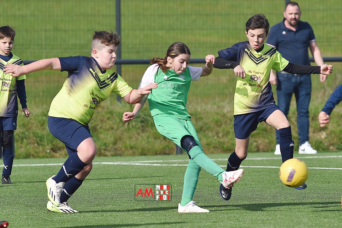 A l’occasion d’un match amical, les U11-1 de l’entente Seebach/EA2SW (District 3) accueillait les U11-2 de l’Entente de la Plaine du Rhin (District 3) afin de tenter de débuter par une victoire, et ce, face à des adversaires ayant domptés, la semaine dernière l’US Oberlauterbach 2&3 (4-2). Après une première période se soldant par un court avantage en faveur des visiteurs grâce à une réalisation signée Massé Baptiste (5e), ce dernier allait récidiver au retour de la pause (26e) avant que Stieber Jade (34e) ne lui emboite le pas, les locaux réduisant ensuite la marque par l’intermédiaire de Loehr Maxime (35e) et, à trois minutes du terme de cette rencontre, Massé Baptiste s’offrit un triplé permettant finalement aux U11-2 de l’Entente de la Plaine du Rhin de s’imposer sur ce score de 1-4! Retrouvez, ci-dessous, quelques images de cette rencontre et, pour en apprécier le contenu, veuillez cliquer sur l’une d’entre-elles pour afficher le diaporama.