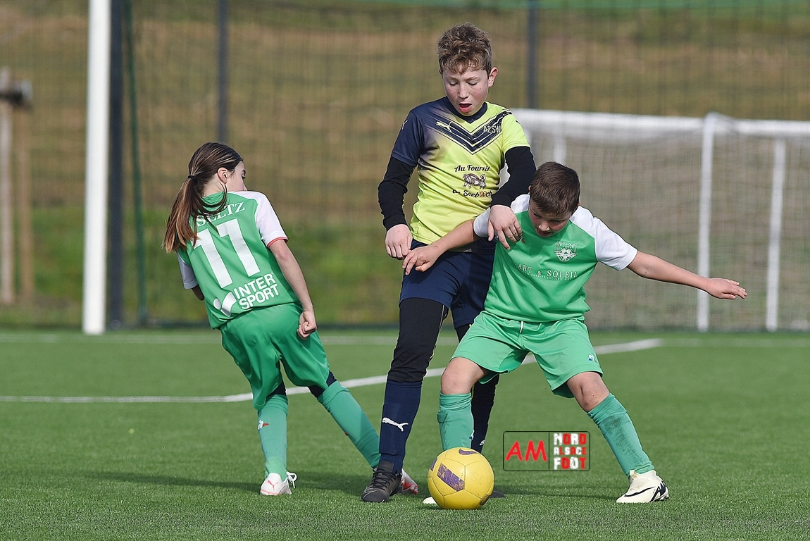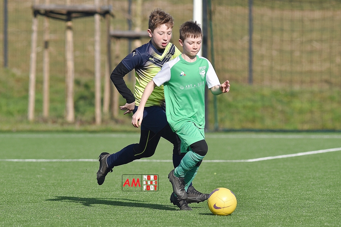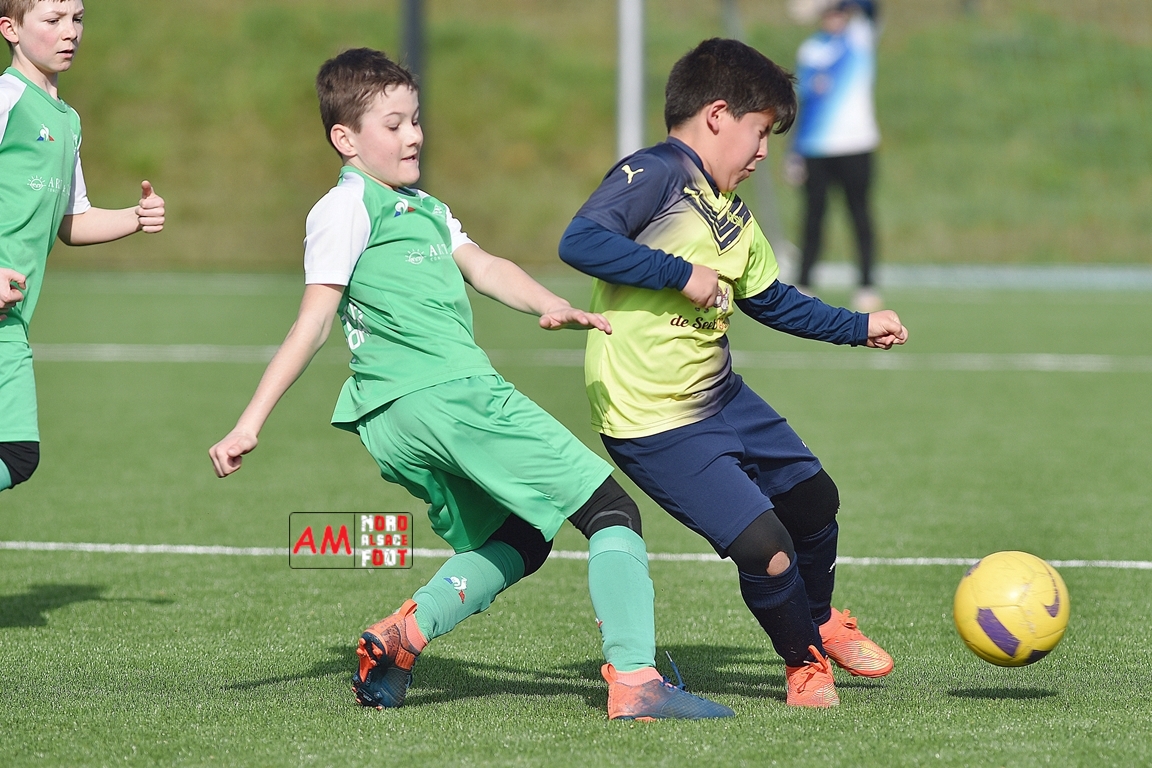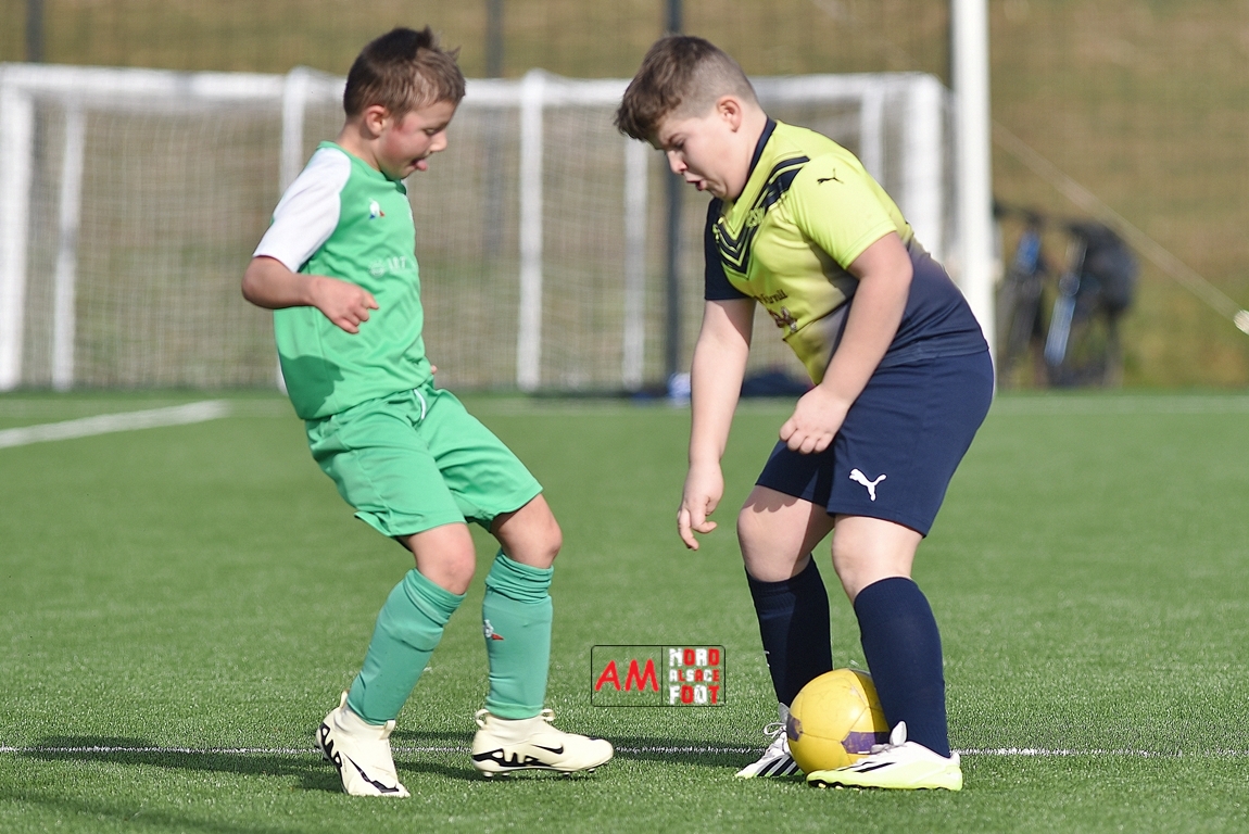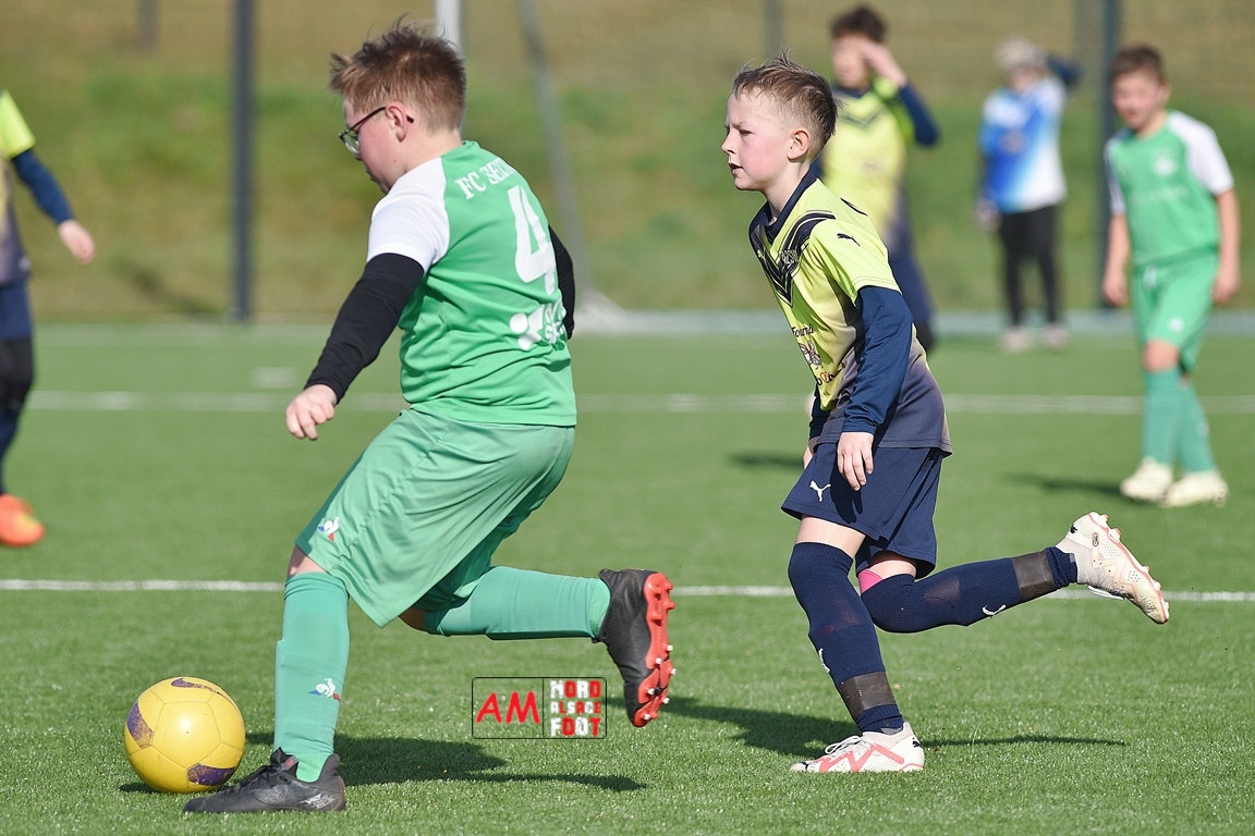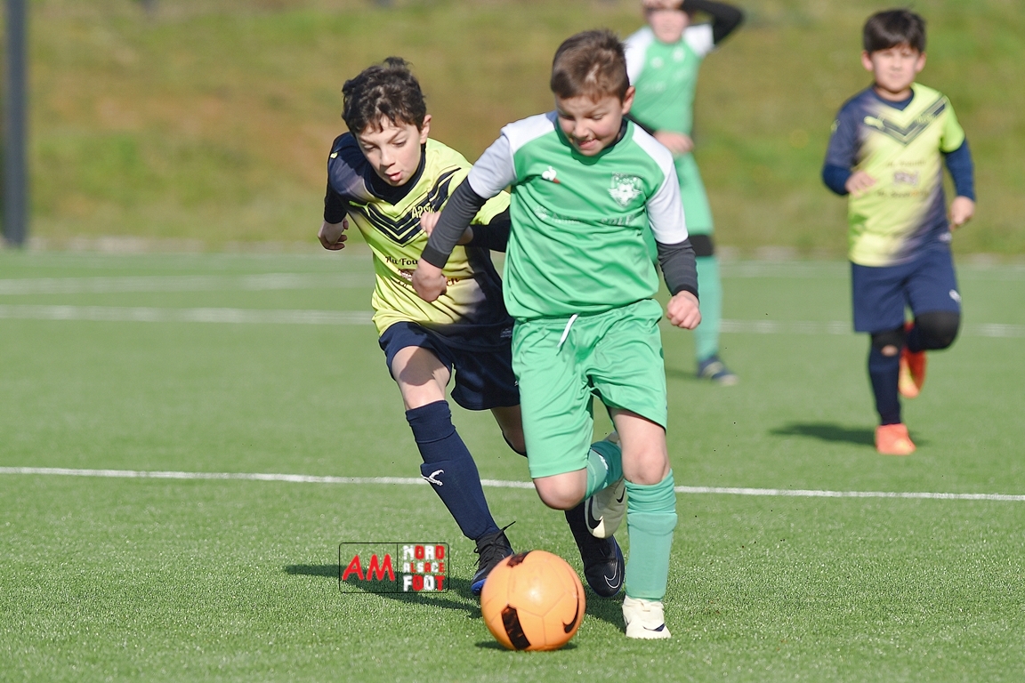 A l’occasion d’un match amical, les U11-1 de l’entente Seebach/EA2SW (District 3) accueillait les U11-2 de l’Entente de la Plaine du Rhin (District 3) afin de tenter de débuter par une victoire, et ce, face à des adversaires ayant domptés, la semaine dernière l’US Oberlauterbach 2&3 (4-2). Après une première période se soldant par un court avantage en faveur des visiteurs grâce à une réalisation signée Massé Baptiste (5e), ce dernier allait récidiver au retour de la pause (26e) avant que Stieber Jade (34e) ne lui emboite le pas, les locaux réduisant ensuite la marque par l’intermédiaire de Loehr Maxime (35e) et, à trois minutes du terme de cette rencontre, Massé Baptiste s’offrit un triplé permettant finalement aux U11-2 de l’Entente de la Plaine du Rhin de s’imposer sur ce score de 1-4! Retrouvez, ci-dessous, quelques images de cette rencontre et, pour en apprécier le contenu, veuillez cliquer sur l’une d’entre-elles pour afficher le diaporama.