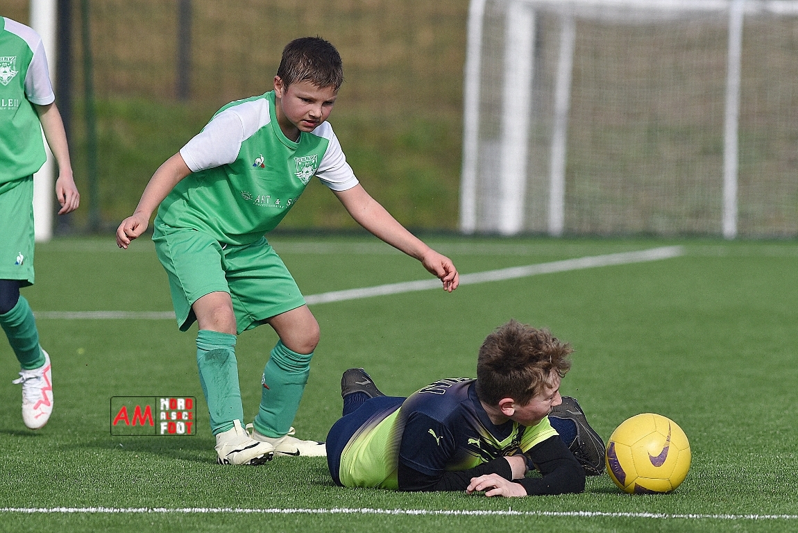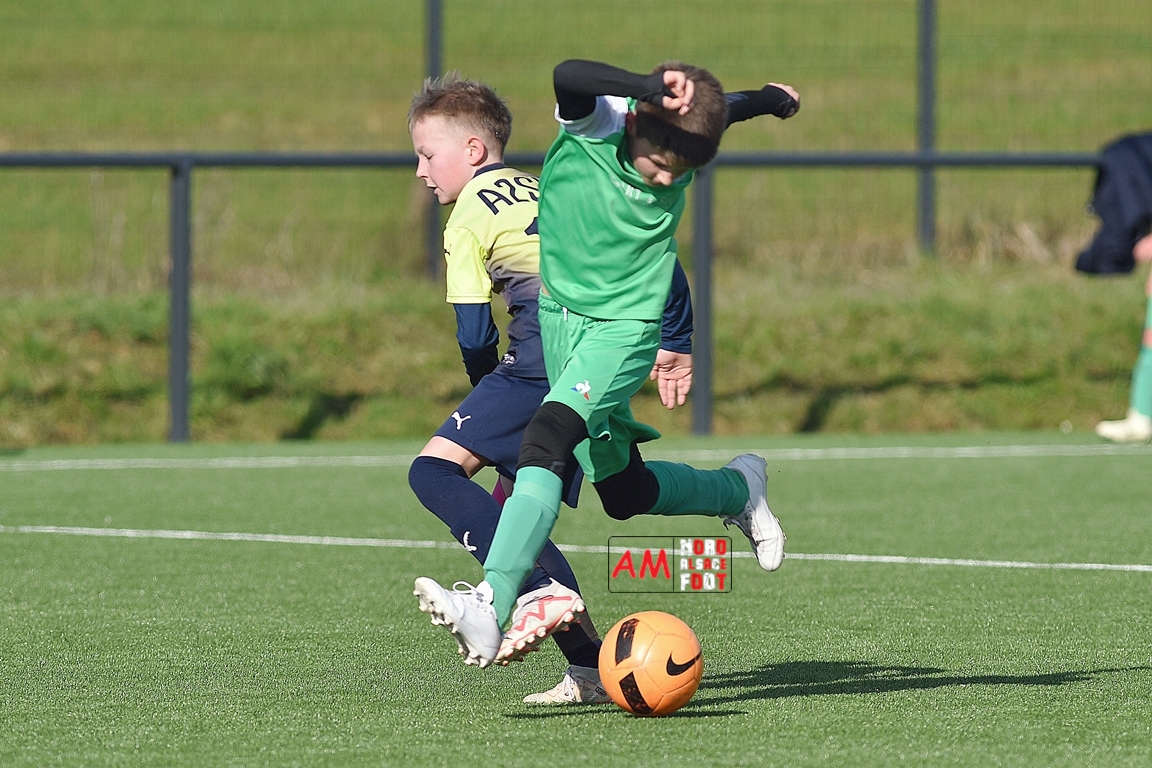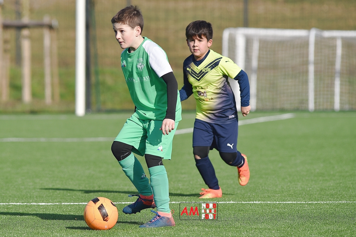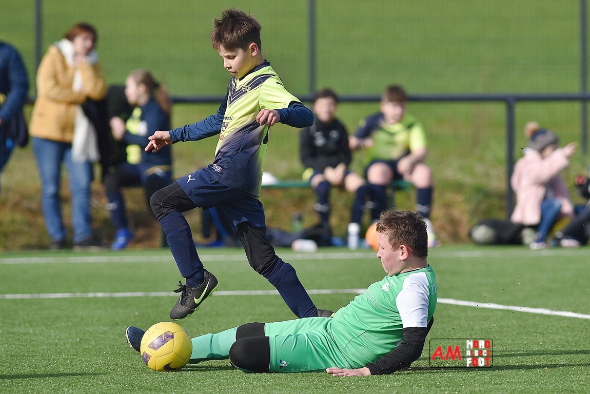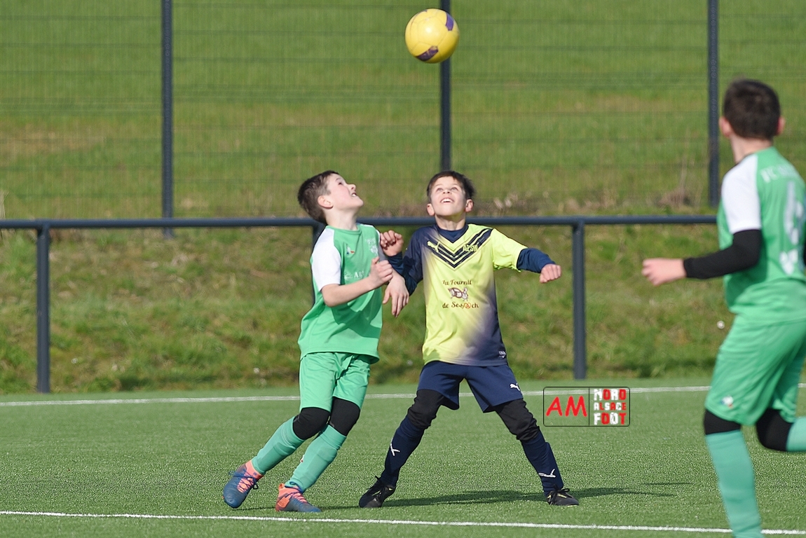A l’occasion d’un match amical, les U11-1 de l’entente Seebach/EA2SW (District 3) accueillait les U11-2 de l’Entente de la Plaine du Rhin (District 3) afin de tenter de débuter par une victoire, et ce, face à des adversaires ayant domptés, la semaine dernière l’US Oberlauterbach 2&3 (4-2). Après une première période se soldant par un court avantage en faveur des visiteurs grâce à une réalisation signée Massé Baptiste (5e), ce dernier allait récidiver au retour de la pause (26e) avant que Stieber Jade (34e) ne lui emboite le pas, les locaux réduisant ensuite la marque par l’intermédiaire de Loehr Maxime (35e) et, à trois minutes du terme de cette rencontre, Massé Baptiste s’offrit un triplé permettant finalement aux U11-2 de l’Entente de la Plaine du Rhin de s’imposer sur ce score de 1-4! Retrouvez, ci-dessous, quelques images de cette rencontre et, pour en apprécier le contenu, veuillez cliquer sur l’une d’entre-elles pour afficher le diaporama.