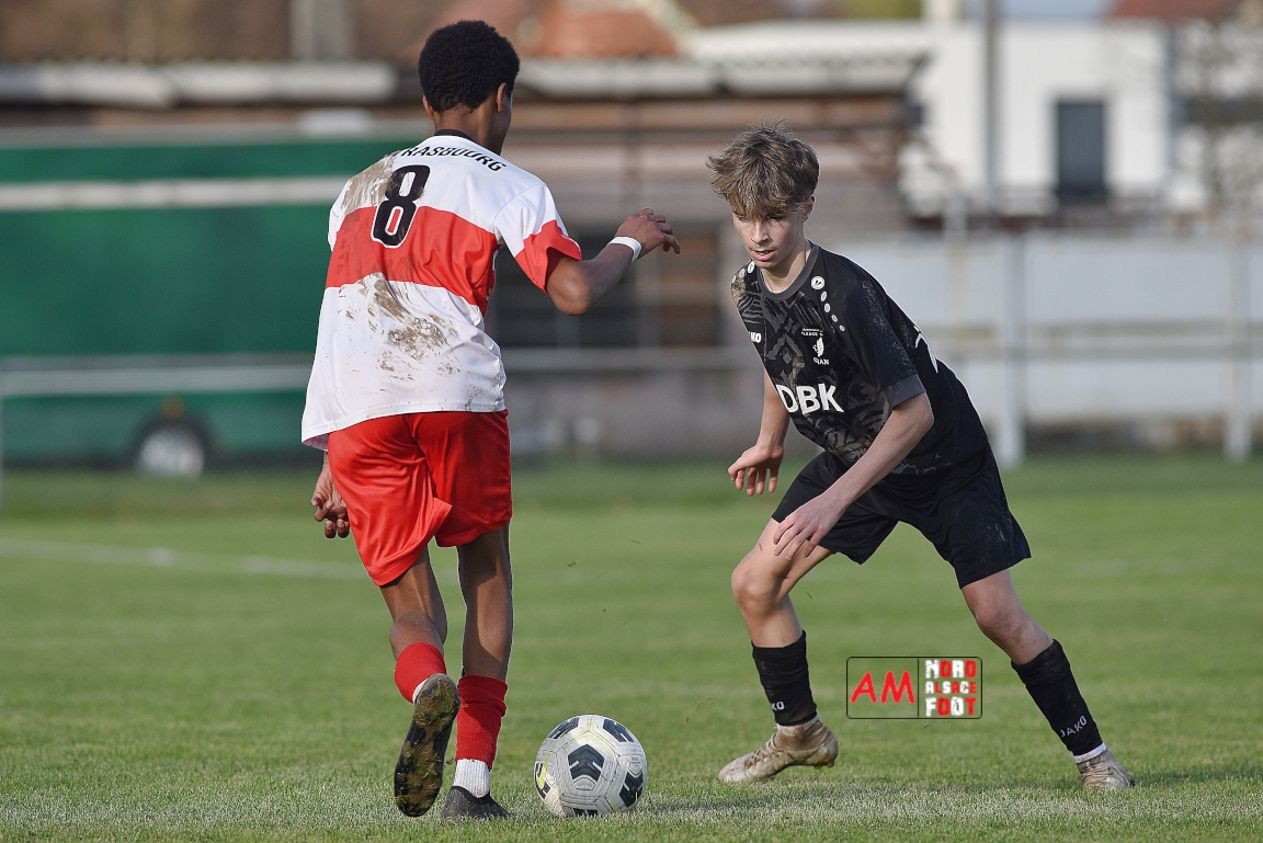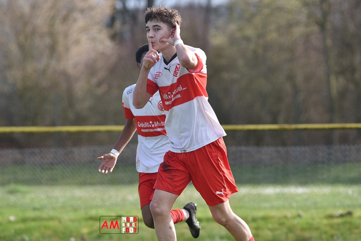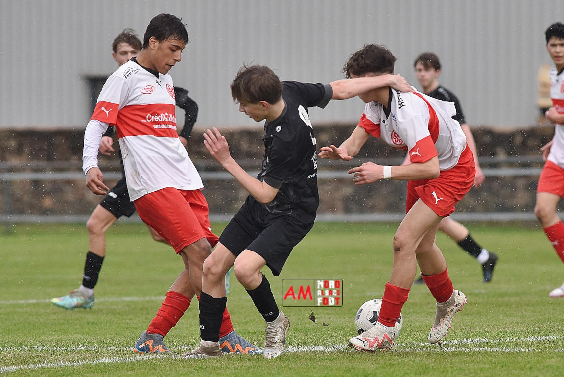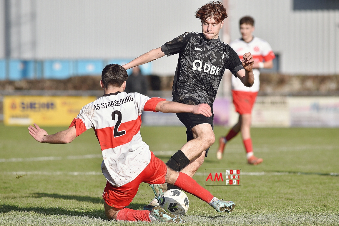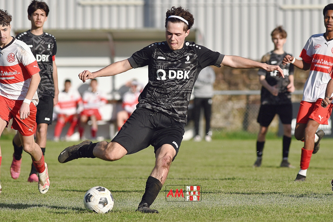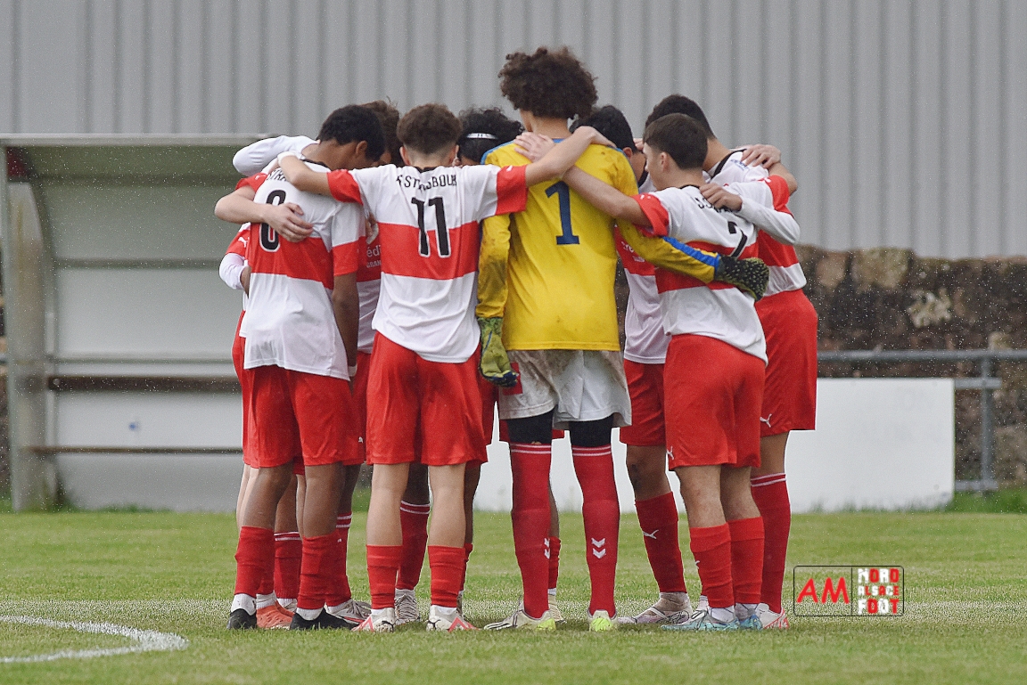 A l’occasion de la onzième journée de championnat chez les U16/Régionale 2 (Poule C), le Groupement Jeunes d’Alsace du Nord (3e) accueillait l’AS Strasbourg (leader) pour un match au sommet pouvant permettre aux locaux de prendre la seconde place du groupe en faveur d’une victoire ce samedi, et ce, face à des adversaires pouvant reprendre la première place du groupe en faveur d’un succès au Turcos. Après une première période se soldant par un léger avantage en faveur des visiteurs (1-2), les deux équipes se neutralisèrent tout au long de la seconde période avant que les Strasbougeois ne s’imposent sur ce score de 1-2! Retrouvez, ci-dessous, quelques images de cette rencontre et, pour en apprécier le contenu, veuillez cliquer sur l’une d’entre-elles pour afficher le diaporama.