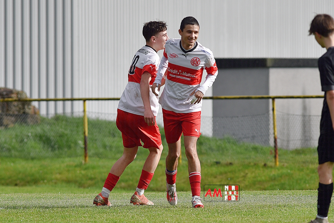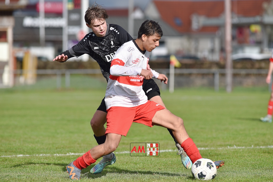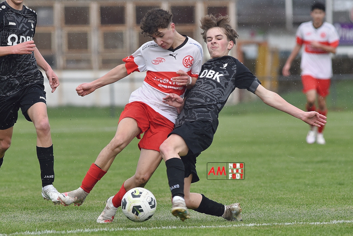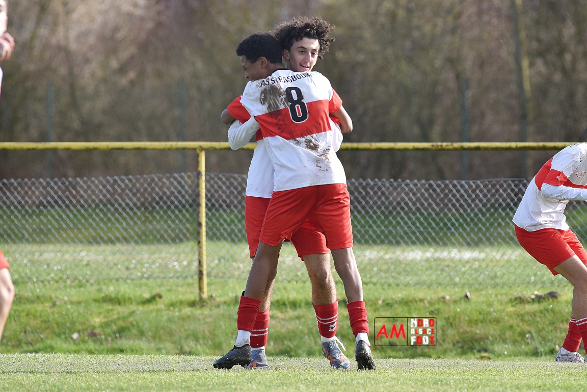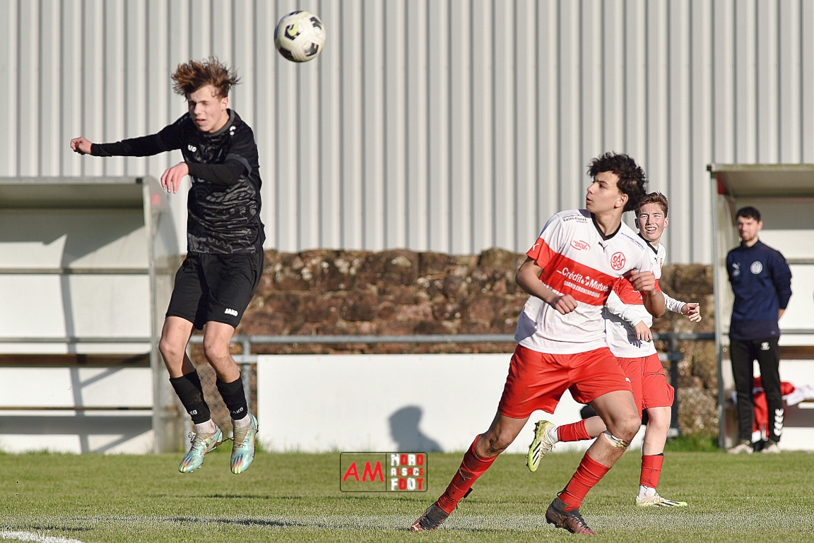 A l’occasion de la onzième journée de championnat chez les U16/Régionale 2 (Poule C), le Groupement Jeunes d’Alsace du Nord (3e) accueillait l’AS Strasbourg (leader) pour un match au sommet pouvant permettre aux locaux de prendre la seconde place du groupe en faveur d’une victoire ce samedi, et ce, face à des adversaires pouvant reprendre la première place du groupe en faveur d’un succès au Turcos. Après une première période se soldant par un léger avantage en faveur des visiteurs (1-2), les deux équipes se neutralisèrent tout au long de la seconde période avant que les Strasbougeois ne s’imposent sur ce score de 1-2! Retrouvez, ci-dessous, quelques images de cette rencontre et, pour en apprécier le contenu, veuillez cliquer sur l’une d’entre-elles pour afficher le diaporama.