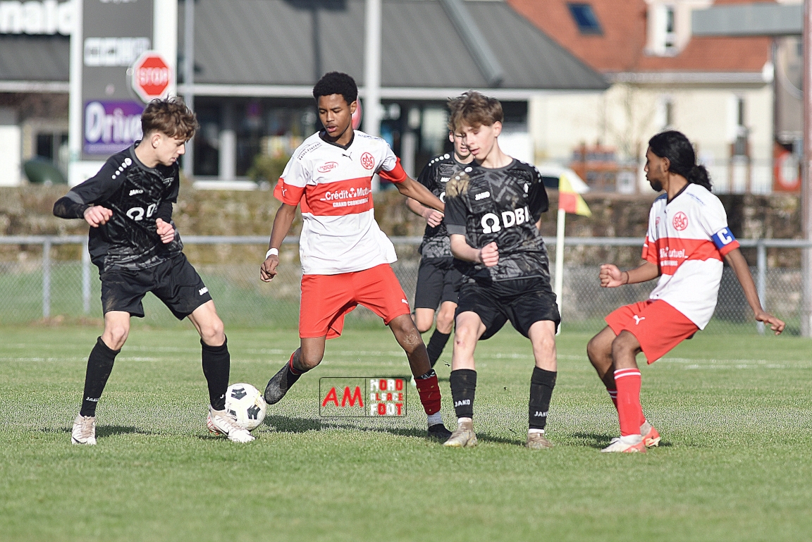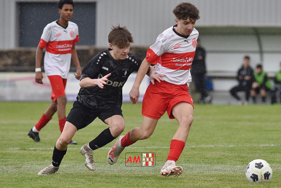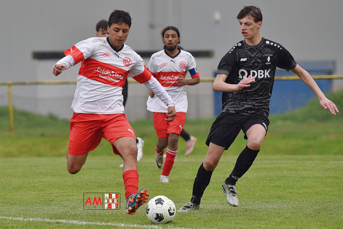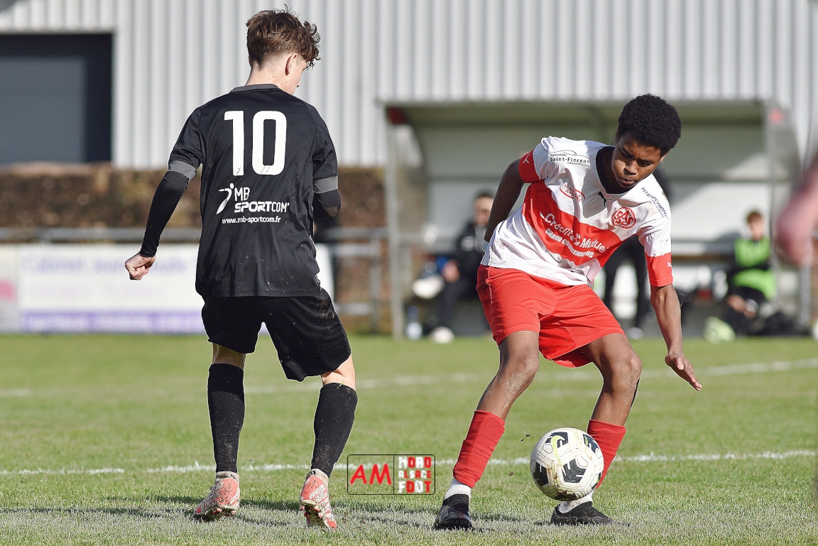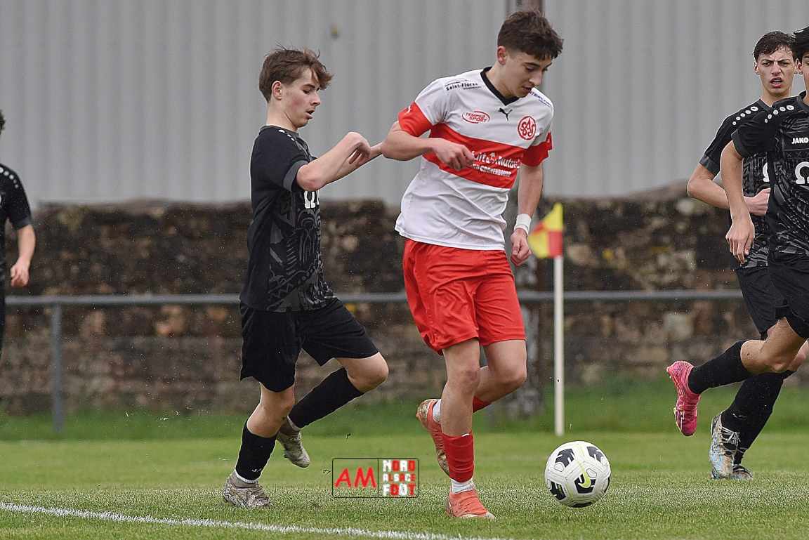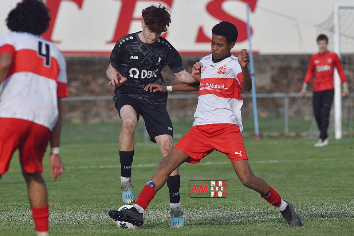 A l’occasion de la onzième journée de championnat chez les U16/Régionale 2 (Poule C), le Groupement Jeunes d’Alsace du Nord (3e) accueillait l’AS Strasbourg (leader) pour un match au sommet pouvant permettre aux locaux de prendre la seconde place du groupe en faveur d’une victoire ce samedi, et ce, face à des adversaires pouvant reprendre la première place du groupe en faveur d’un succès au Turcos. Après une première période se soldant par un léger avantage en faveur des visiteurs (1-2), les deux équipes se neutralisèrent tout au long de la seconde période avant que les Strasbougeois ne s’imposent sur ce score de 1-2! Retrouvez, ci-dessous, quelques images de cette rencontre et, pour en apprécier le contenu, veuillez cliquer sur l’une d’entre-elles pour afficher le diaporama.