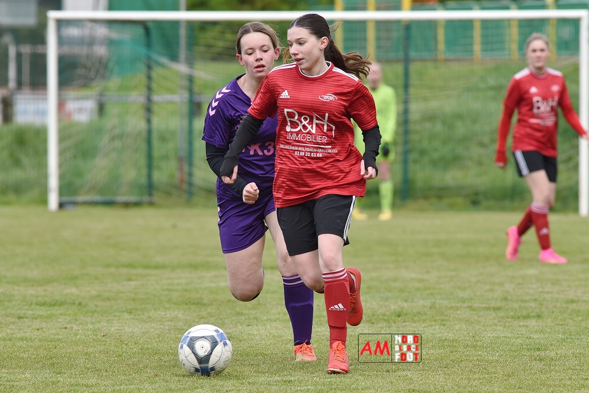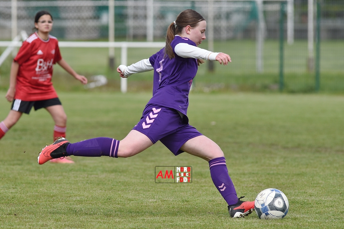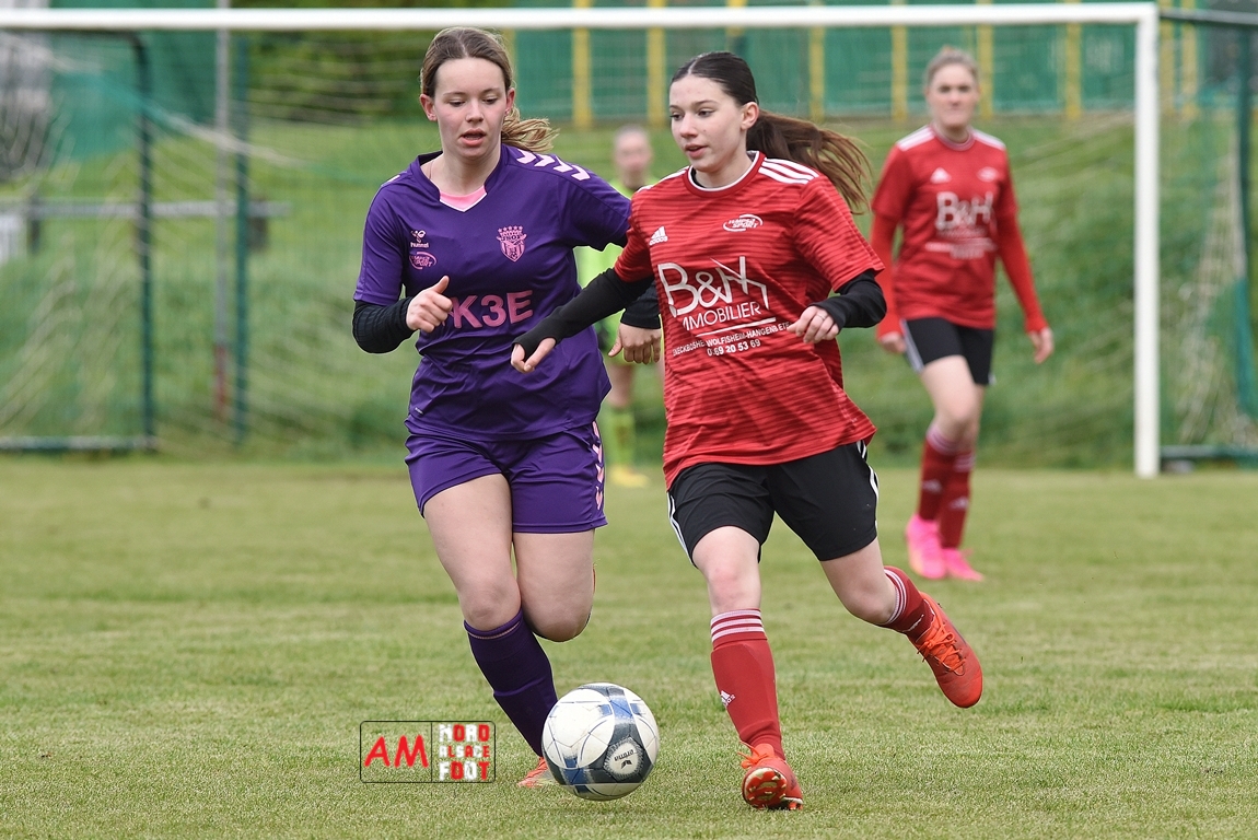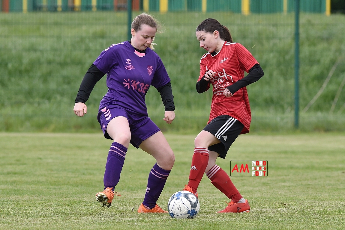 A l’occasion de la quatrième journée de championnat chez les U18/F à 8 (Poule B), la Jeunesse Sportive de l’Outre-Forêt accueillait l’AS Holtzheim afin de tenter d’enregistrer un premier succès ce printemps, et ce, face à des adversaires ayant enregistrées jusqu’alors autant de victoires que de rencontres disputées. Après une première période se soldant par un large avantage en faveur des visiteurs (0-6), ces dernières allaient en ajouter autant en seconde période tout en encaissant deux buts avant que les deux formations ne se quittent sur ce score sans appel de 2-12! Retrouvez, ci-dessous, quelques images de cette rencontre et, pour en apprécier le contenu, veuillez cliquer sur l’une d’entre-elles pour afficher le diaporama.