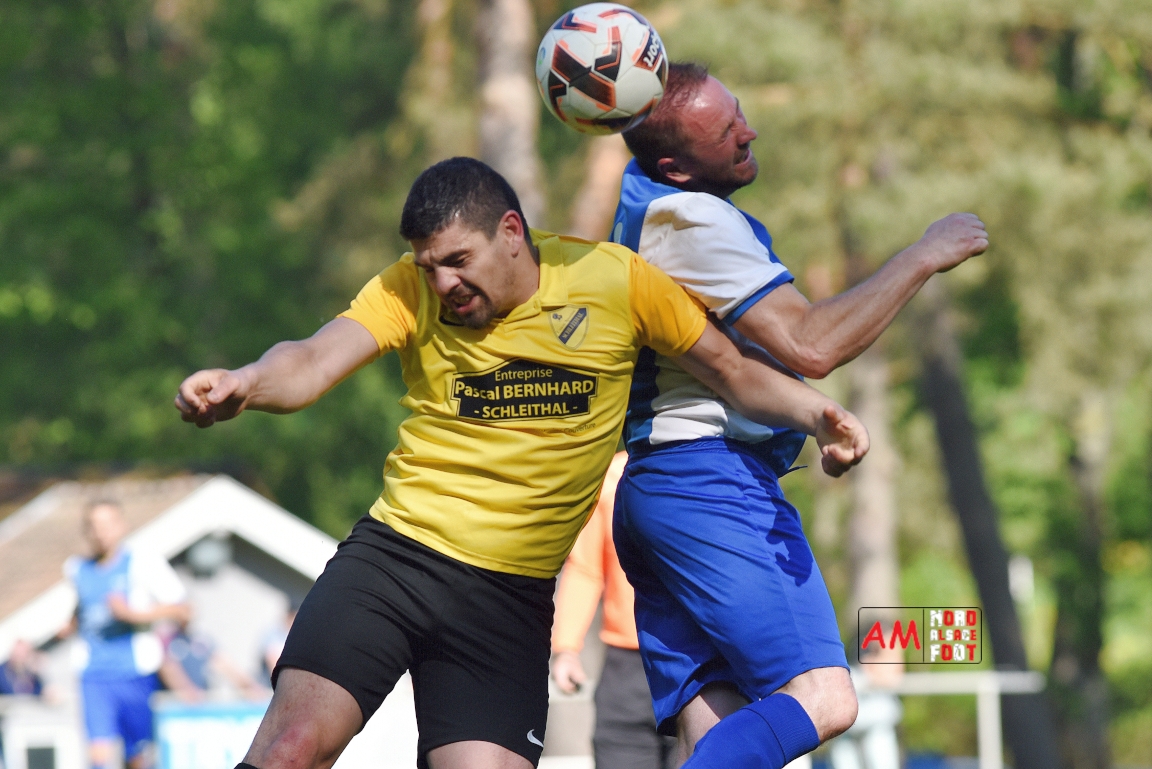A l’occasion d’un match en retard comptant pour la quatorzième journée de championnat en District 5 (Poule B), le FC Dambach/Neunhoffen (8e) accueillait l’US Schleithal 2 (4e) afin de tenter de prendre leur revanche sur le match aller (3-1), et ce, face à des adversaires devant compter, ce jeudi, sur Kevin Achard au poste de gardien de but. Après une première période se soldant par un court avantage en faveur des locaux grâce à une réalisation signée Wambach Jérémy (29e), ces derniers allaient creuser l’écart en seconde période en ajoutant trois buts au compteur grâce à un doublé de Gasser William (59e, 66e) et grâce à une réalisation signée Gasser Noah (71e) avant qu’ils ne s’imposent sur ce score de 4-0! Retrouvez, ci-dessous, quelques images de cette rencontre et, pour en apprécier le contenu, veuillez cliquer sur l’une d’entre-elles pour afficher le diaporama.