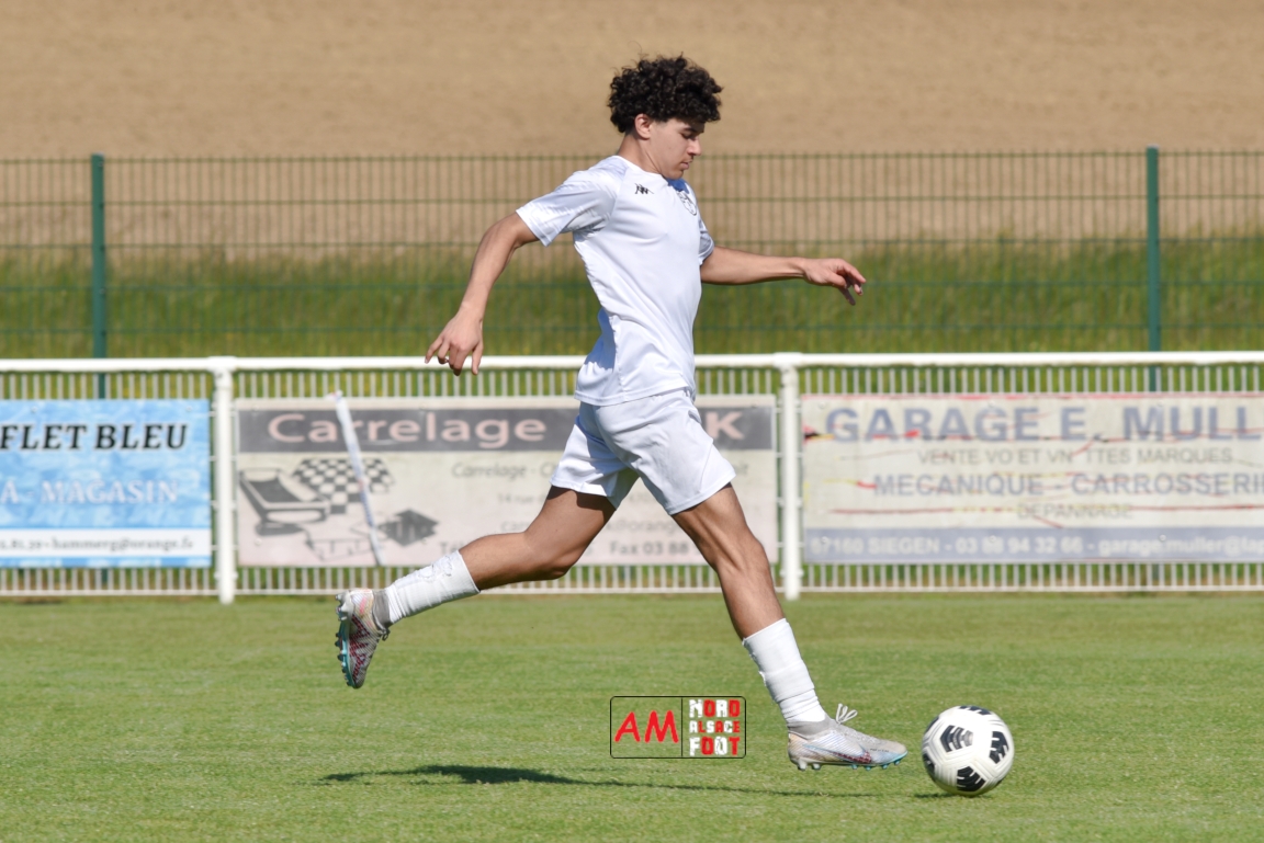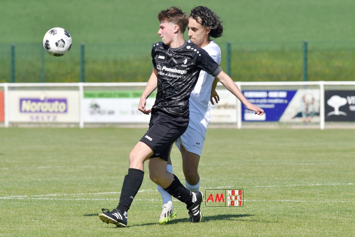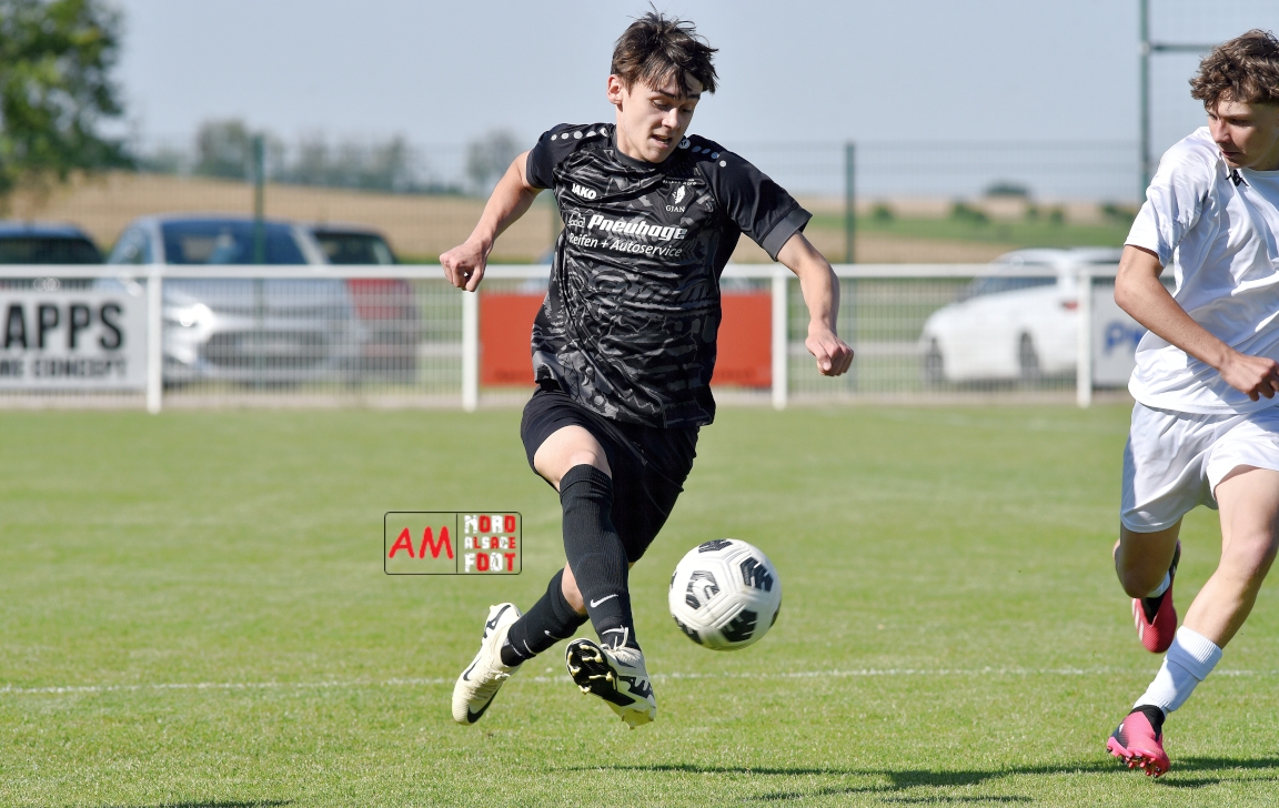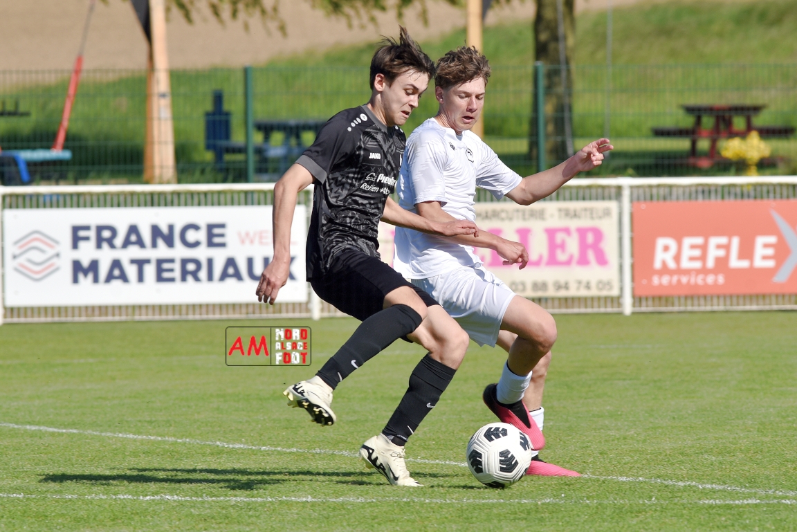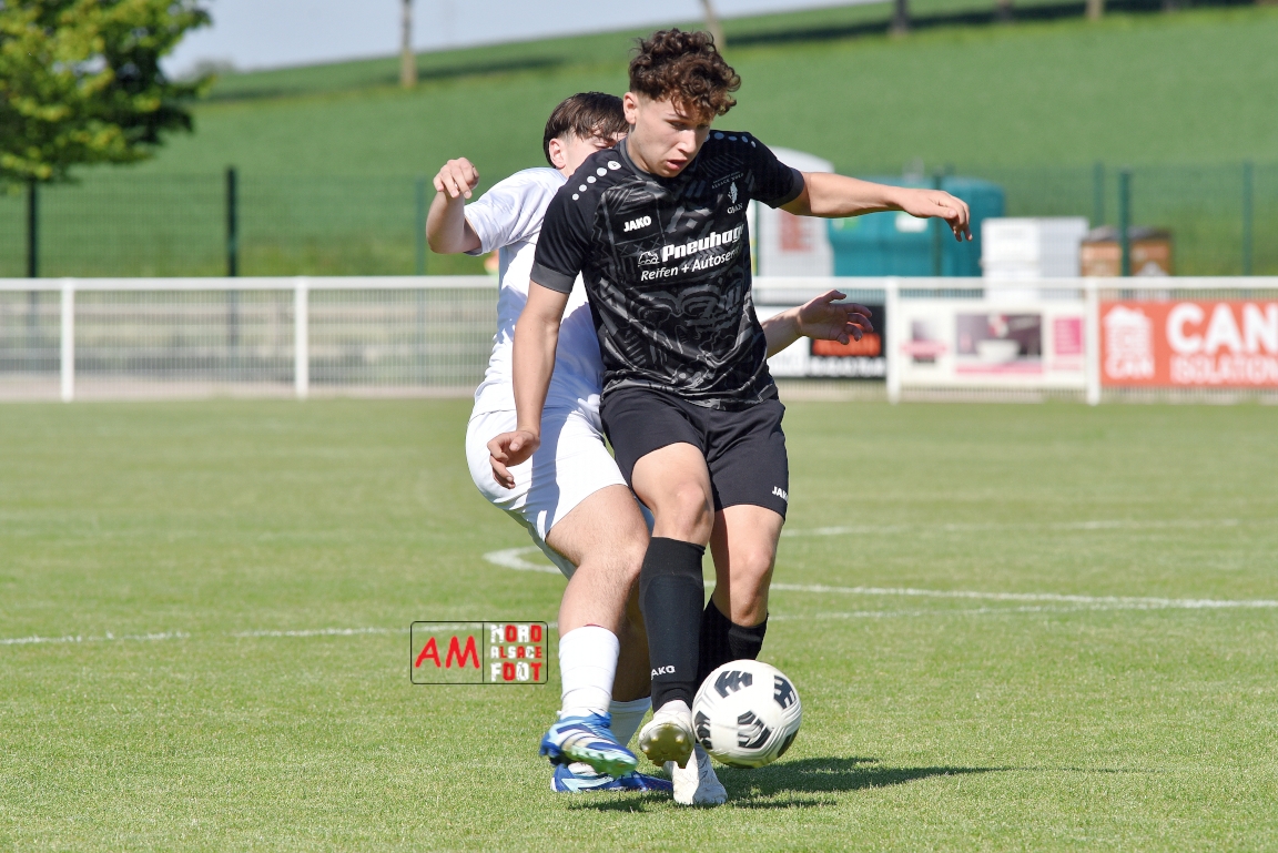 A l’occasion de la dix-neuvième journée de championnat chez les U17/Régional 2 (Poule C), le Groupement Jeunes d’Alsace du Nord (6e) accueillait le SO Merlebach (5e) afin de tenter de repartir du bon pied après le revers concédé, la semaine passée, face à l’EN Saint-Avold (5-3), et ce, face à des adversaires ne s’étant pas déplacés pour faire de la figuration. Après une première période se soldant par un score de parité (1-1), les locaux allaient prendre le large en seconde période en ajoutant deux buts au compteur avant qu’ils ne s’imposent sur ce score de 3-1! Retrouvez, ci-dessous, quelques images de cette rencontre et, pour en apprécier le contenu, veuillez cliquer sur l’une d’entre-elles pour afficher le diaporama.