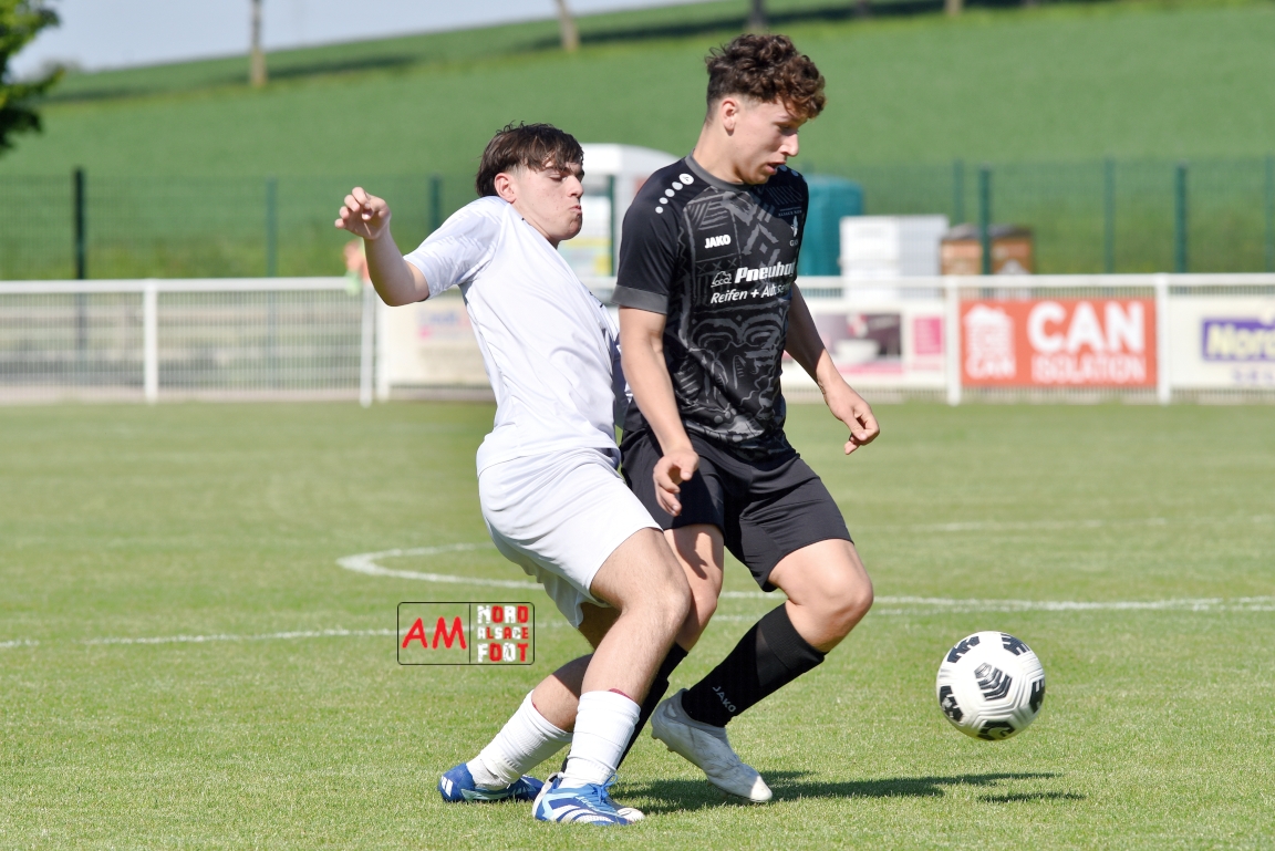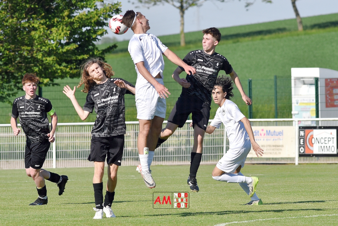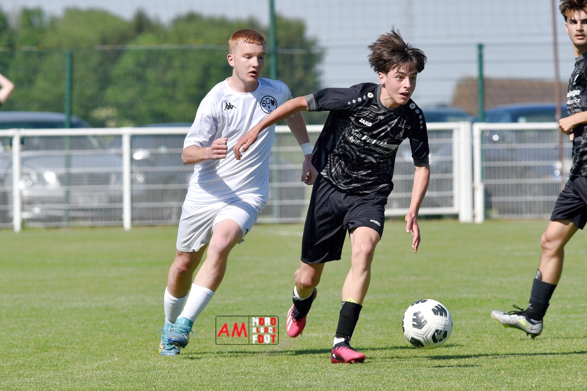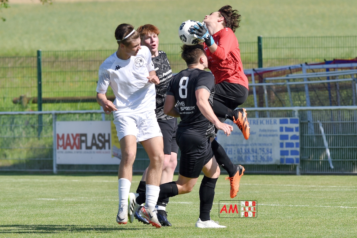 A l’occasion de la dix-neuvième journée de championnat chez les U17/Régional 2 (Poule C), le Groupement Jeunes d’Alsace du Nord (6e) accueillait le SO Merlebach (5e) afin de tenter de repartir du bon pied après le revers concédé, la semaine passée, face à l’EN Saint-Avold (5-3), et ce, face à des adversaires ne s’étant pas déplacés pour faire de la figuration. Après une première période se soldant par un score de parité (1-1), les locaux allaient prendre le large en seconde période en ajoutant deux buts au compteur avant qu’ils ne s’imposent sur ce score de 3-1! Retrouvez, ci-dessous, quelques images de cette rencontre et, pour en apprécier le contenu, veuillez cliquer sur l’une d’entre-elles pour afficher le diaporama.