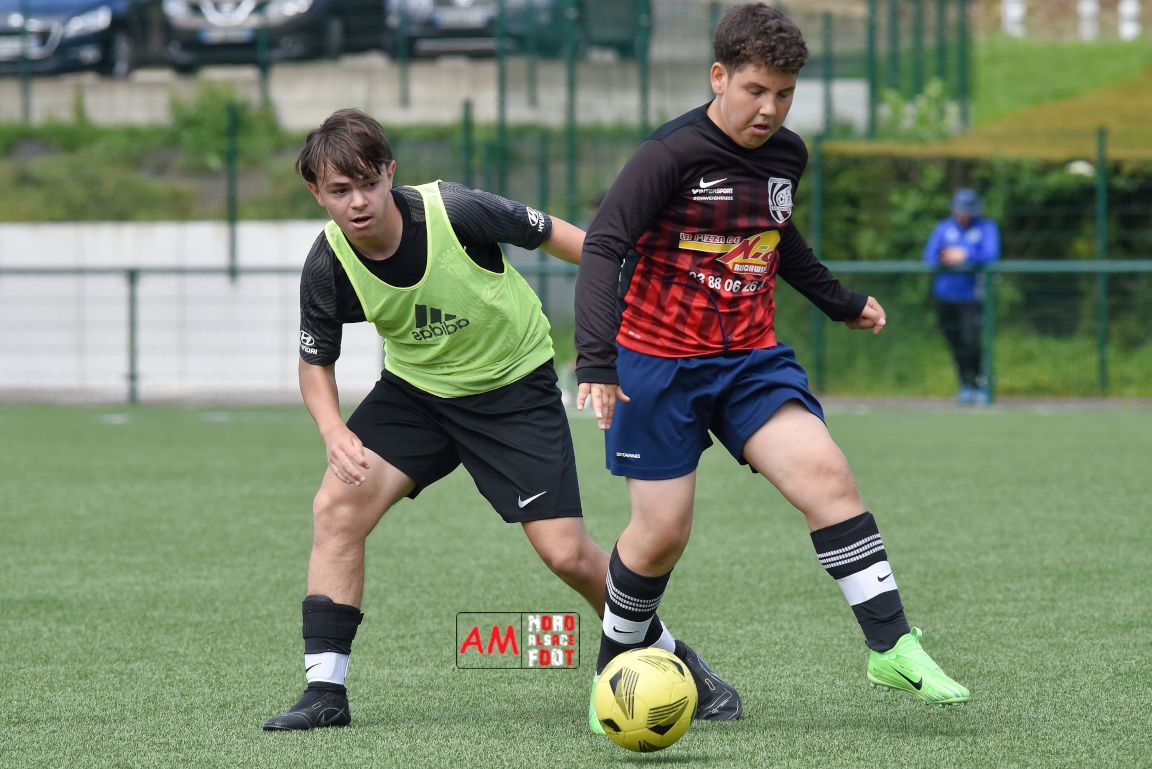 A l’occasion de la neuvième journée de championnat de cette phase printanière chez les U13/D3 (Poule B), les U13-2 de la Jeunesse Sportive de l’Outre-Forêt (4e) accueillaient les U13-1 du FC Bischwiller (5e) afin de tenter de repartir de l’avant après le derby perdu face à l’Entente du Val de Sauer (0-4), et ce, face à des adversaires n’ayant remporté aucun match lorsqu’ils se déplaçaient. Après une première période se soldant par un avantage confortable en faveur des locaux (3-1), ces derniers allaient ajouter cinq buts au compteur en seconde période tout en encaissant avant qu’ils ne finissent par largement s’imposer sur ce score de 8-2! Retrouvez, ci-dessous, quelques images de cette rencontre et, pour en apprécier le contenu, veuillez cliquer sur l’une d’entre-elles pour afficher le diaporama.