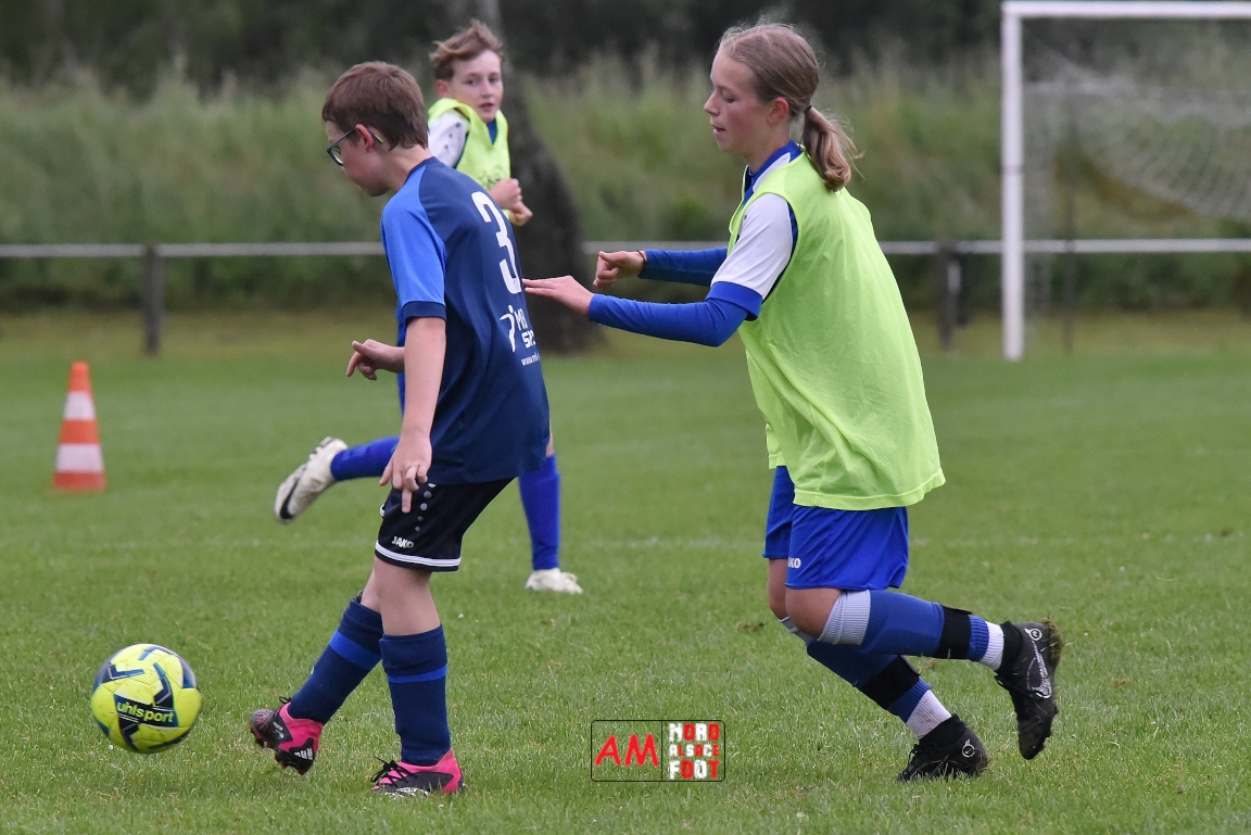 A l’occasion d’un match en retard comptant pour la septième journée de championnat chez les U13/D4 (Poule E), les U13-4 de l’Entente de la Plaine du Rhin (4e) accueillaient les U13-2 de la Jeunesse de l’UFFRIED (lanterne rouge) afin de tenter de prendre leur revanche sur le match aller (5-4), et ce, face à des adversaires accusant cette seule victoire sur la phase printanière. Après une première période se soldant par un score de parité (2-2), les deux équipes allaient se neutraliser tout au long de la seconde période avant qu’elles ne se quittent dos à dos sur ce score de 2-2! Retrouvez, ci-dessous, quelques images de cette rencontre et, pour en apprécier le contenu, veuillez cliquer sur l’une d’entre-elles pour afficher le diaporama.