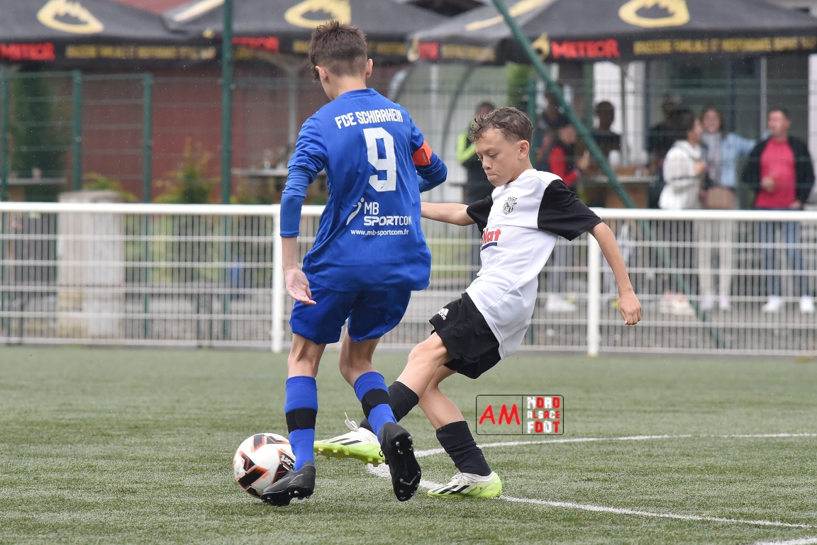 A l’occasion de la dixième et dernière journée de championnat de cette phase “Titre” chez les U13/D3 (Poule B), les U13-2 du FCE Schirrhein (lanterne rouge) accueillaient les U13-1 de la Jeunesse Sportive de l’Outre-Forêt (2e) avec l’espoir d’enregistrer leur(s) premier(s) point(s) de cette phase, et ce, face à des adversaires voulant tenter la passe de trois afin de définitivement consolider leur seconde place ou carrément pour s’adjuger le titre en cas de contreperformance des U13-3 du FCSR Haguenau. Après une première période se soldant par un net avantage en faveur des visiteurs (1-7), ces derniers allaient ajouter quatre buts au compteur en seconde période avant qu’ils ne finissent par largement s’imposer sur ce score de 1-11! Retrouvez, ci-dessous, quelques images de cette rencontre et, pour en apprécier le contenu, veuillez cliquer sur l’une d’entre-elles pour afficher le diaporama.