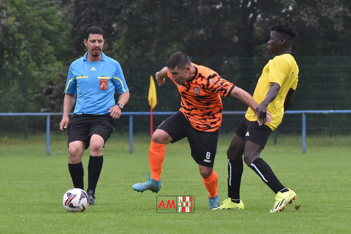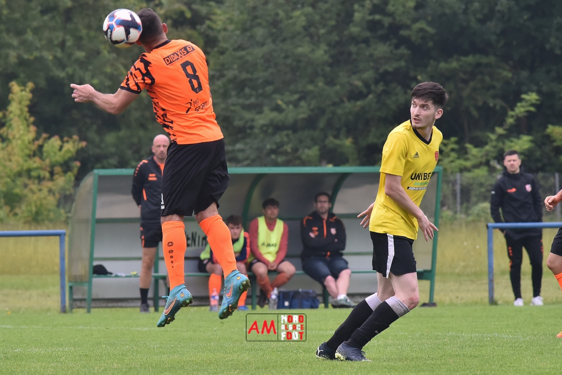 A l’occasion de l’épilogue de cette saison 2023/2024 en District 3 (Poule B), le Fatih Sport Haguenau (3e) accueillait l’US Oberlauterbach 3 (10e) afin de tenter de tenter de remporter cette rencontre pour continuer à croire à une montée à l’échelon supérieur, et ce, face à des adversaires qui se devaient de prendre au moins un point pour assurer leur maintien avant le match de l’après-midi opposant l’AS Kurtzenhouse à l’AS Copains Hinterfeld, le club recevant pouvant leur passer devant en cas de succès associé à une contreperformance des “Oranges” ce dimanche matin. Après une première période se soldant par un avantage confortable en faveur des locaux grâce à des réalisations signées Soumah Salif (1ère, 9e) et Turhan Omer (33e) contre une réduction du score des visiteurs signée Muller Olivier (37e), les locaux allaient à nouveau creuser l’écart à la 51e minute de jeu grâce à un but inscrit par Toure Djan avant que les “Oranges” ne tentent une “remontada” grâce à des buts inscrits par Pinto Youri (59e) et Muller Olivier (71e, sp) et, alors que Geyer Julien avait l’occasion d’égaliser en toute fin de partie en se retrouvant seul face au but, sur le dernier contre des visiteurs, Duren Dogan allait définitivement faire le break à la 94e minute de jeu afin d’assurer la victoire à son équipe. Dans un même temps, l’US Kaltenhouse/Marienthal 2 battait l’AS Hunspach 2 (0-1), ce qui plaçait le Fatih Sport Haguenau à la seconde place du classement avant la rencontre opposant l’US Surbourg au FC Soufflenheim étant déterminant pour la première place et, sur cette rencontre, le FC Soufflenheim fut large vainqueur et ce fut finalement le statu quo dans cette poule, le FC Soufflenheim finissant à la première place, l’US Kaltenhouse/Marienthal 2 prenant la seconde place et le Fatih Sport Haguenau finissant sur la troisième marche. En queue de classement, l’AS Kurtzenhouse remporta sa rencontre capitale pour le maintien face à l’AS Copains Hinterfeld (3-2), cette performance reléguant l’US Oberlauterbach 3 en District 4. Retrouvez, ci-dessous, quelques images de cette rencontre et, pour en apprécier le contenu, veuillez cliquer sur l’une d’entre-elles pour afficher le diaporama.