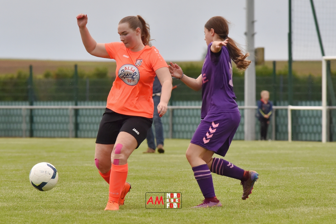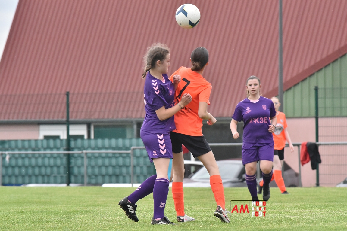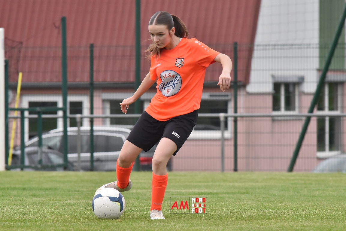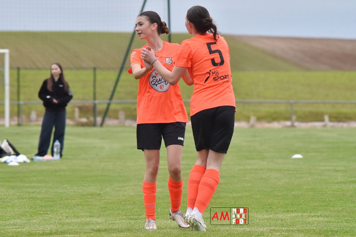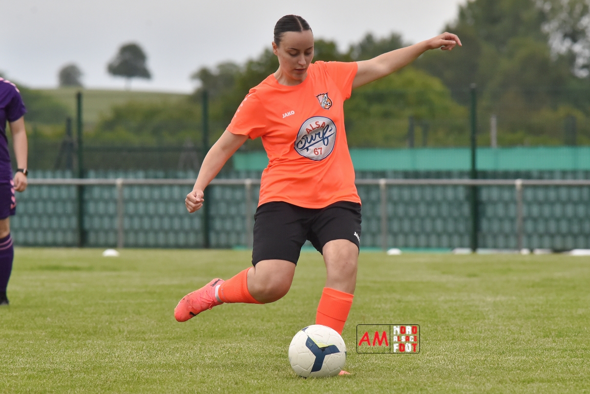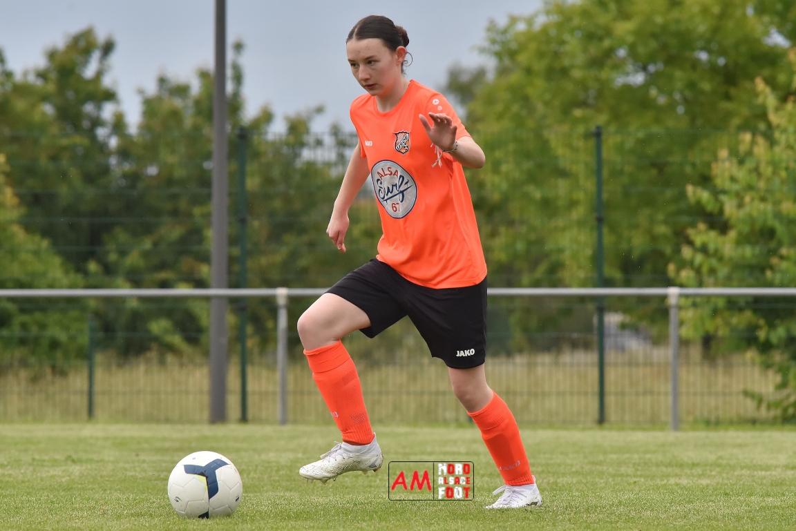 A l’occasion de la quatorzième et dernière journée de championnat de cette phase printanière chez les U18/Féminines à 8 (Poule B), l’US Oberlauterbach F (3e) accueillait la Jeunesse Sportive de l’Outre-Forêt (lanterne rouge) pour une rencontre aux allures de derby au cours de laquelle les visiteuses comptaient prendre leur(s) premier(s) point(s) de cette phase afin de terminer la saison en beauté, et ce, face à des adversaires restant sur un très bon résultat obtenu face au leader (1-1). Après une première période se soldant par un score nul et vierge, la rencontre allait s’emballer à son terme avec l’égalisation des visiteuses (1-1) avant que les “Oranges” ne parviennent à prendre le large au cours des arrêts de jeu en ajoutant deux buts au compteur afin de s’adjuger une dernière victoire sur ce score de 3-1! Retrouvez, ci-dessous, quelques images de cette rencontre et, pour en apprécier le contenu, veuillez cliquer sur l’une d’entre-elles pour afficher le diaporama.