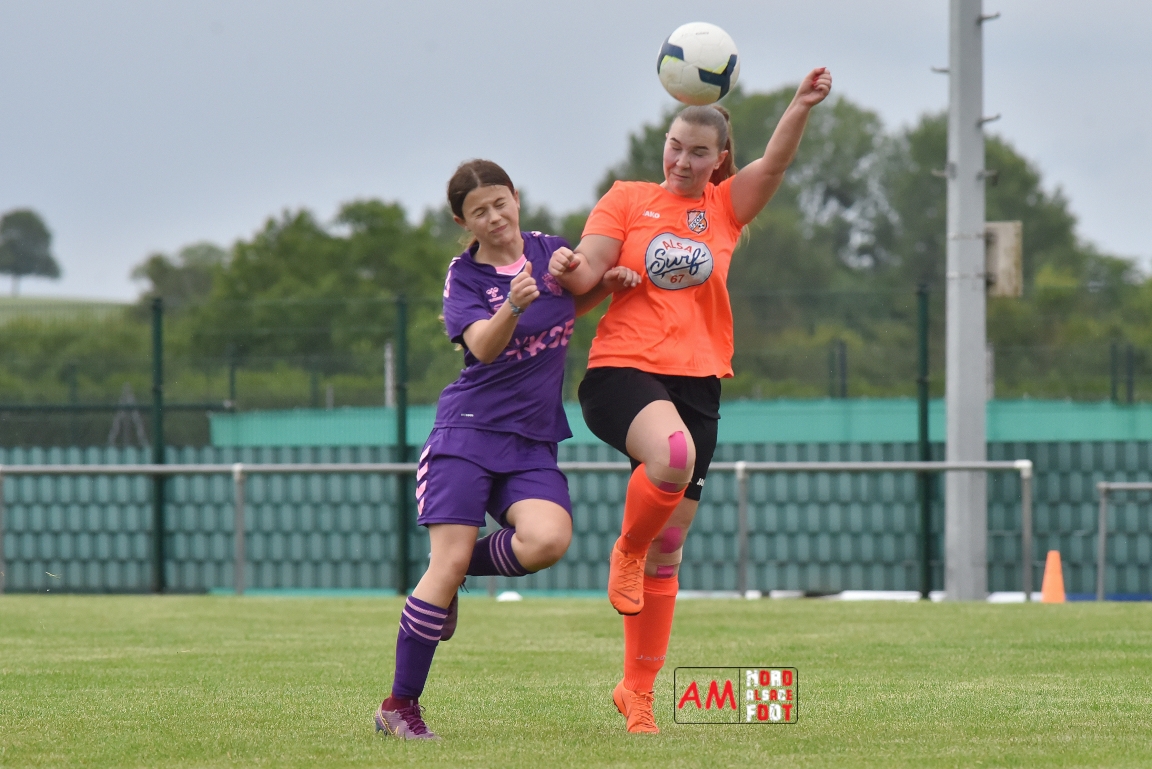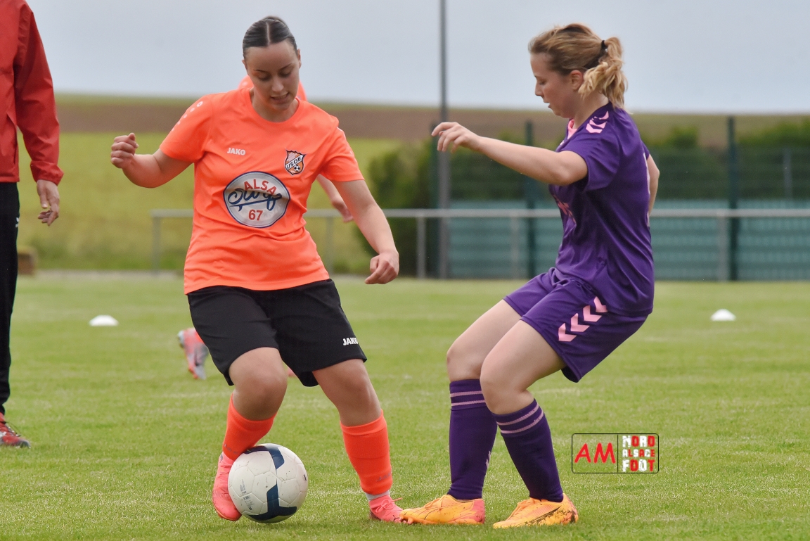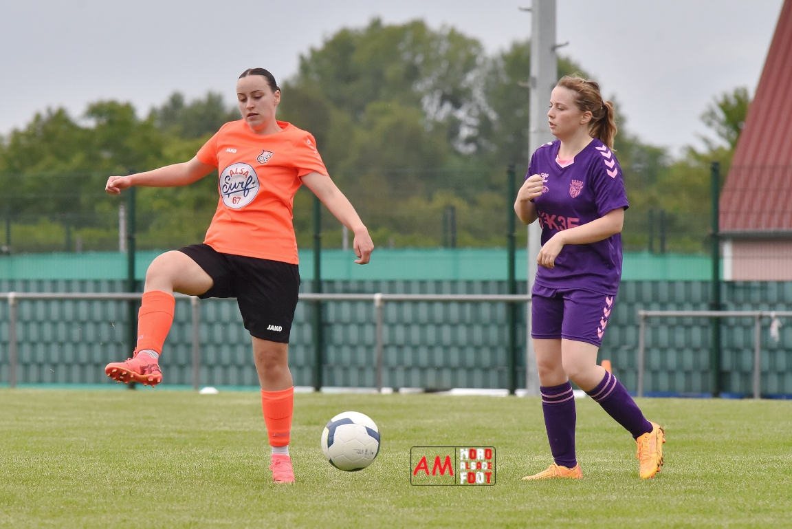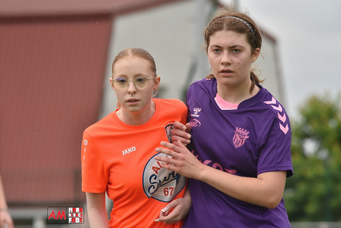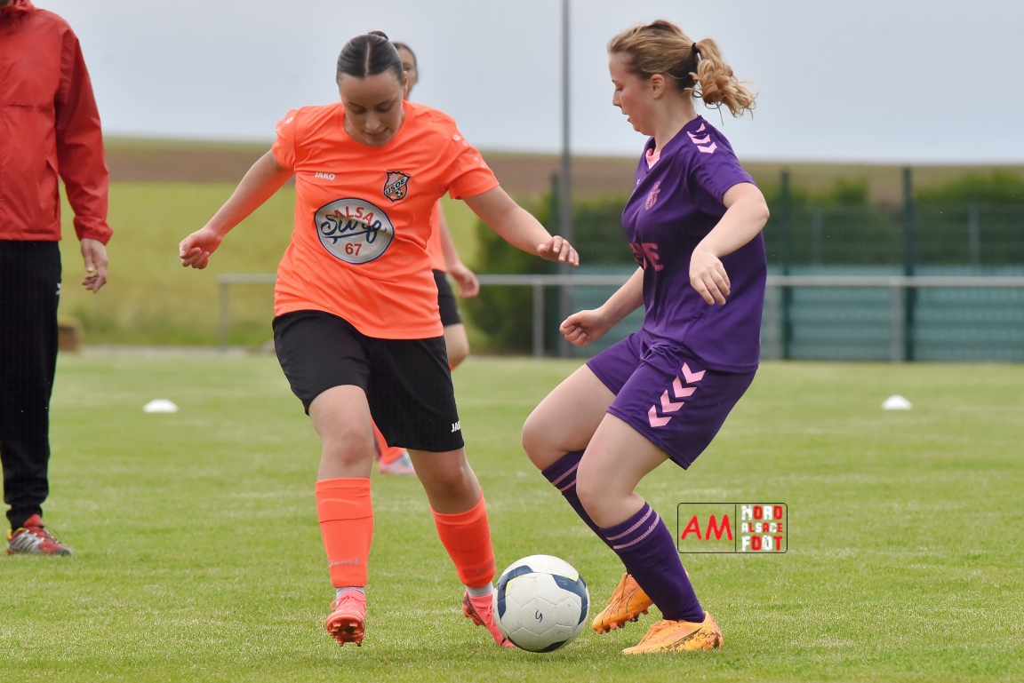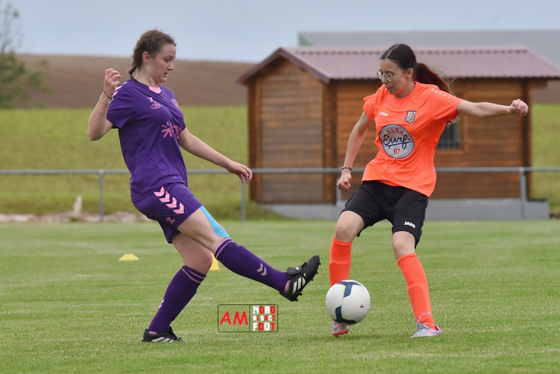 A l’occasion de la quatorzième et dernière journée de championnat de cette phase printanière chez les U18/Féminines à 8 (Poule B), l’US Oberlauterbach F (3e) accueillait la Jeunesse Sportive de l’Outre-Forêt (lanterne rouge) pour une rencontre aux allures de derby au cours de laquelle les visiteuses comptaient prendre leur(s) premier(s) point(s) de cette phase afin de terminer la saison en beauté, et ce, face à des adversaires restant sur un très bon résultat obtenu face au leader (1-1). Après une première période se soldant par un score nul et vierge, la rencontre allait s’emballer à son terme avec l’égalisation des visiteuses (1-1) avant que les “Oranges” ne parviennent à prendre le large au cours des arrêts de jeu en ajoutant deux buts au compteur afin de s’adjuger une dernière victoire sur ce score de 3-1! Retrouvez, ci-dessous, quelques images de cette rencontre et, pour en apprécier le contenu, veuillez cliquer sur l’une d’entre-elles pour afficher le diaporama.