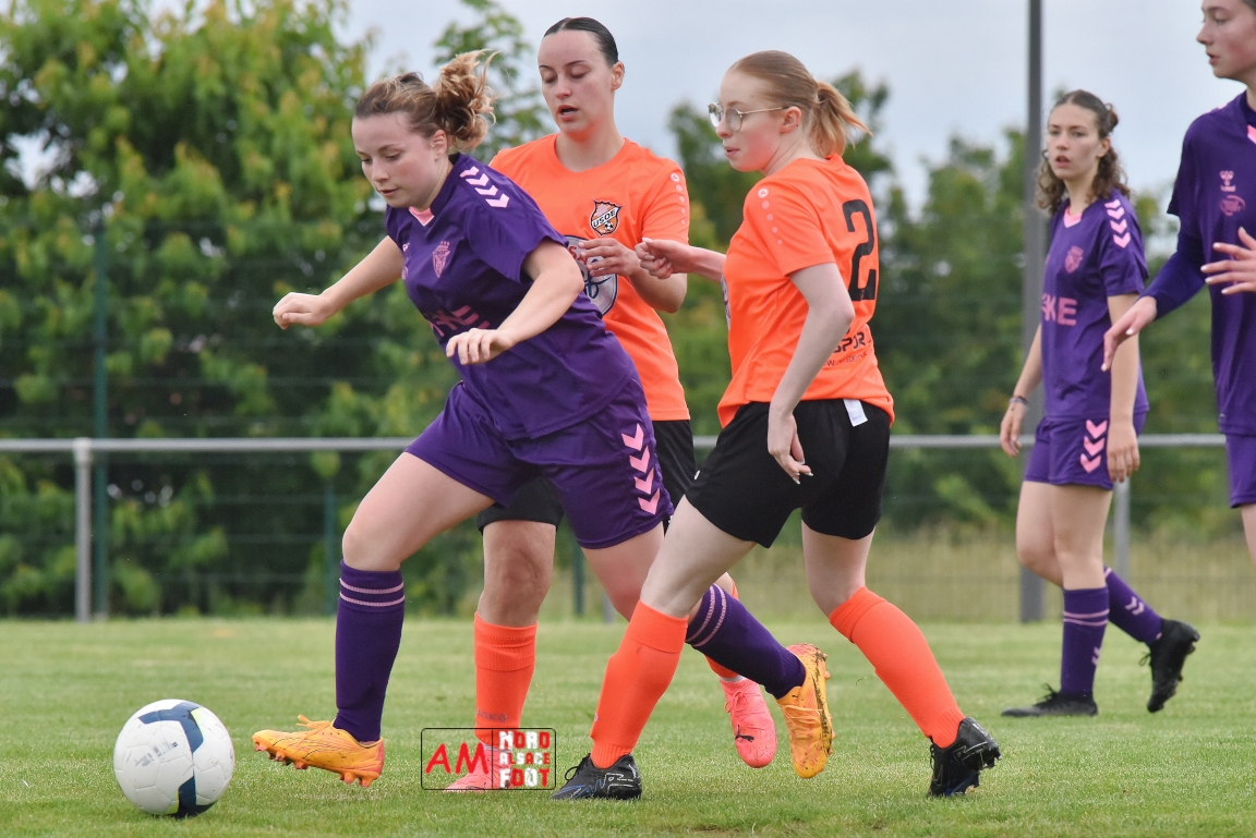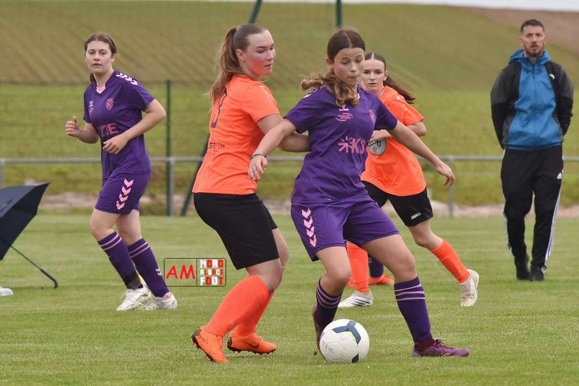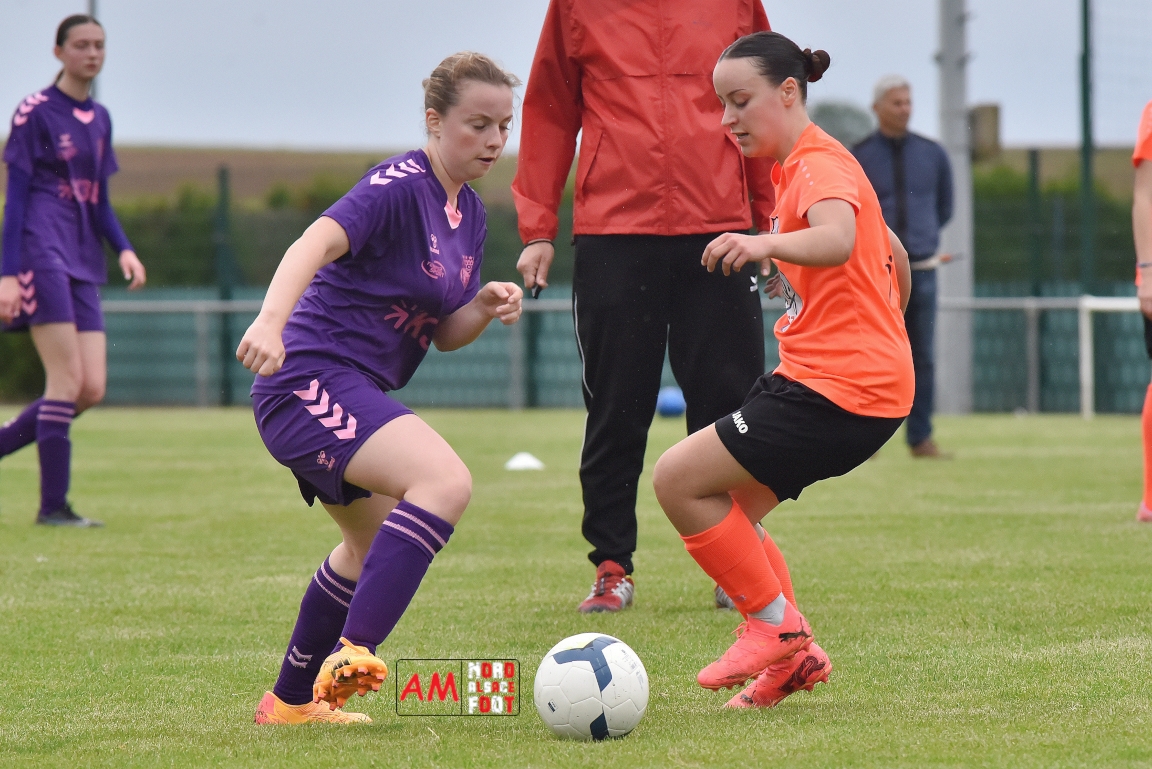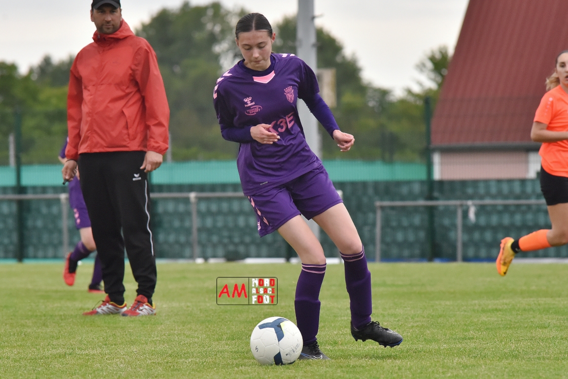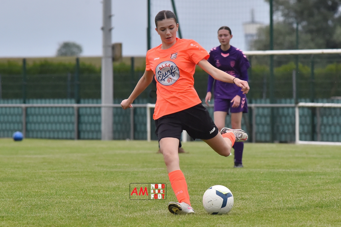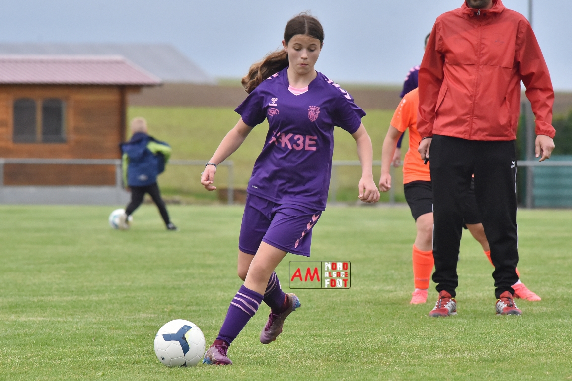 A l’occasion de la quatorzième et dernière journée de championnat de cette phase printanière chez les U18/Féminines à 8 (Poule B), l’US Oberlauterbach F (3e) accueillait la Jeunesse Sportive de l’Outre-Forêt (lanterne rouge) pour une rencontre aux allures de derby au cours de laquelle les visiteuses comptaient prendre leur(s) premier(s) point(s) de cette phase afin de terminer la saison en beauté, et ce, face à des adversaires restant sur un très bon résultat obtenu face au leader (1-1). Après une première période se soldant par un score nul et vierge, la rencontre allait s’emballer à son terme avec l’égalisation des visiteuses (1-1) avant que les “Oranges” ne parviennent à prendre le large au cours des arrêts de jeu en ajoutant deux buts au compteur afin de s’adjuger une dernière victoire sur ce score de 3-1! Retrouvez, ci-dessous, quelques images de cette rencontre et, pour en apprécier le contenu, veuillez cliquer sur l’une d’entre-elles pour afficher le diaporama.