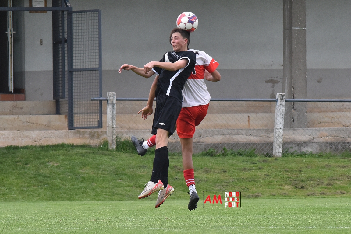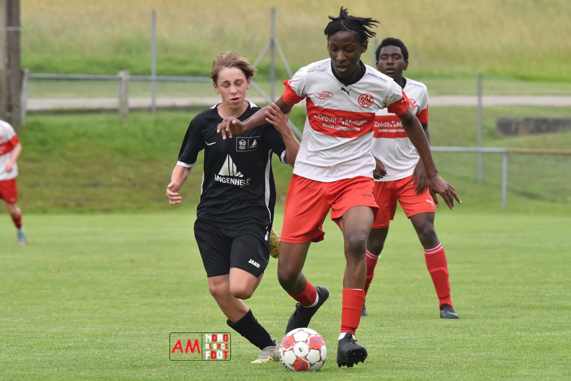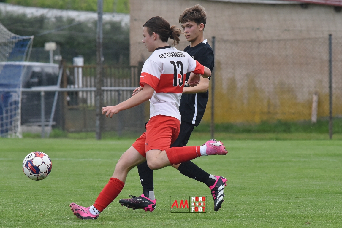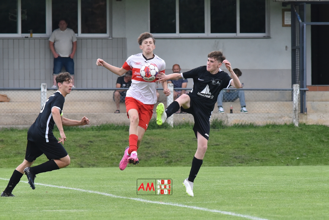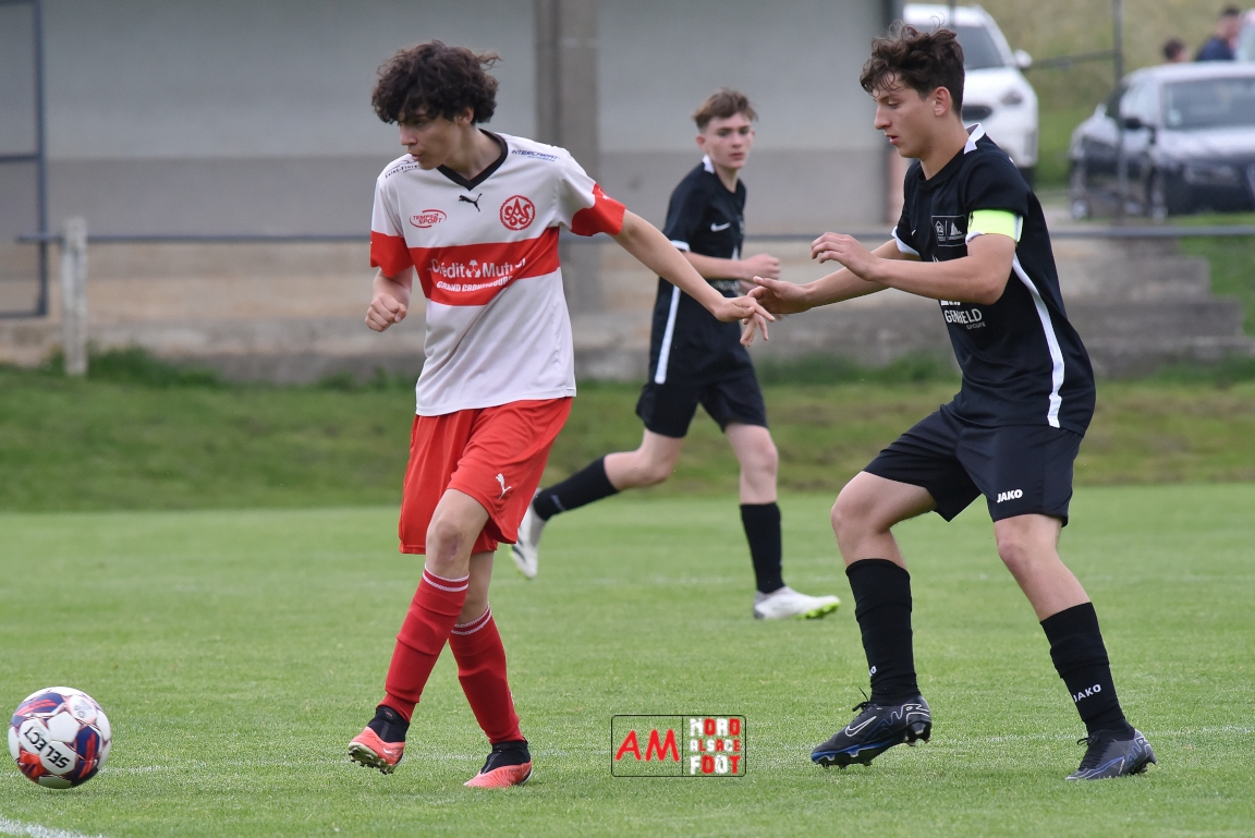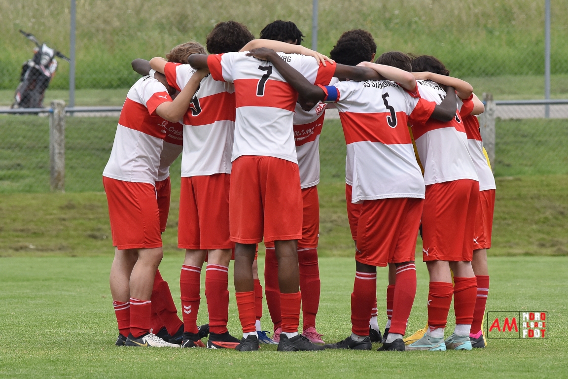 A l’occasion de la 22e et dernière journée de championnat chez les U15/Régionale 2 (Poule C), le Groupement Jeunes d’Alsace du Nord (7e) accueillait l’AS Strasbourg (2e) afin de tenter de se lancer un dernier défi, à savoir prendre leur revanche de la déroute du match aller face à des mêmes adversaires (7-0). Après une première période se soldant par un léger avantage en faveur des visiteurs (1-2), les locaux allaient parvenir à égaliser avant que les Strasbourgeois ne fassent la différence au cours des dix dernières minutes de jeu, ces derniers s’imposant finalement sur ce score de 2-3! Retrouvez, ci-dessous, quelques images de cette rencontre et, pour en apprécier le contenu, veuillez cliquer sur l’une d’entre-elles pour afficher le diaporama.