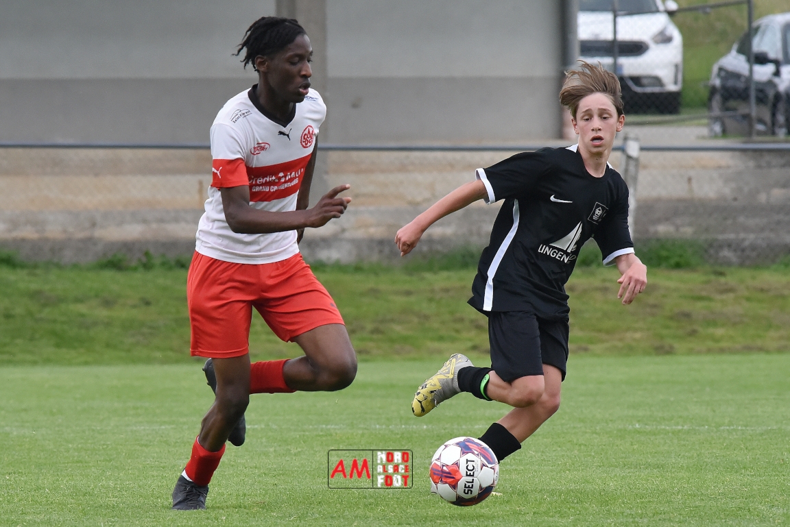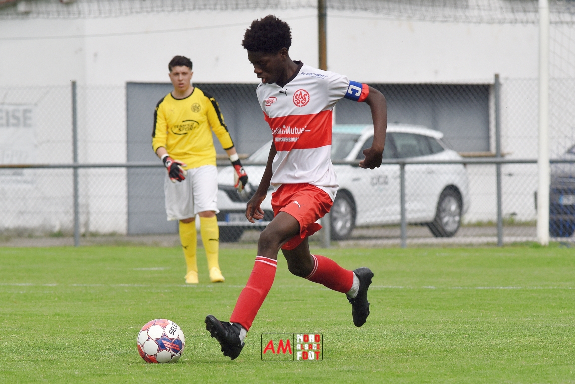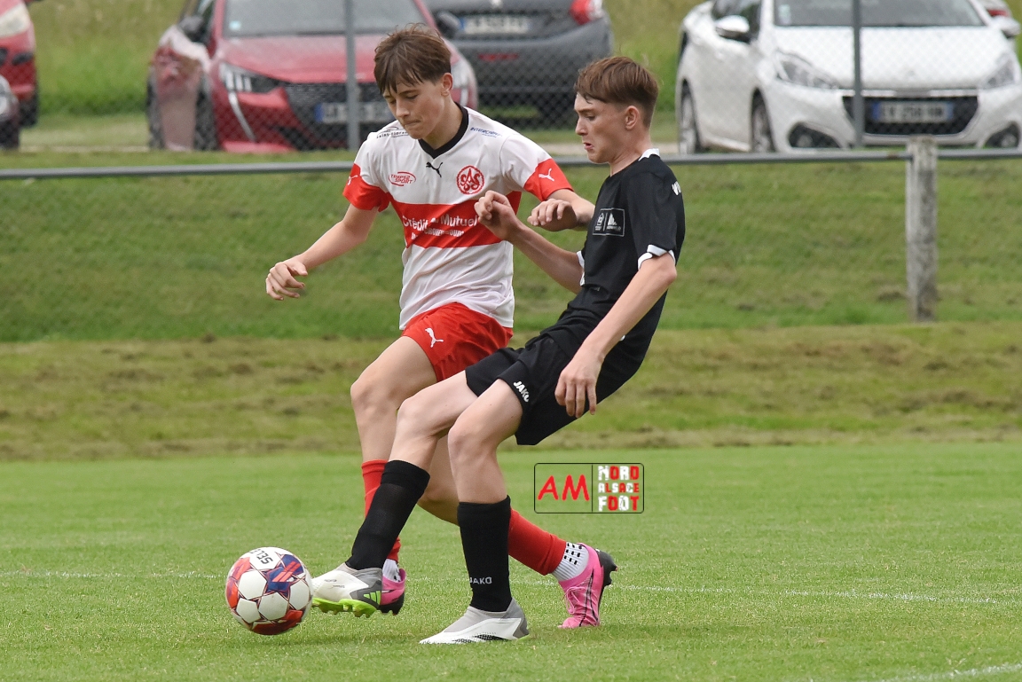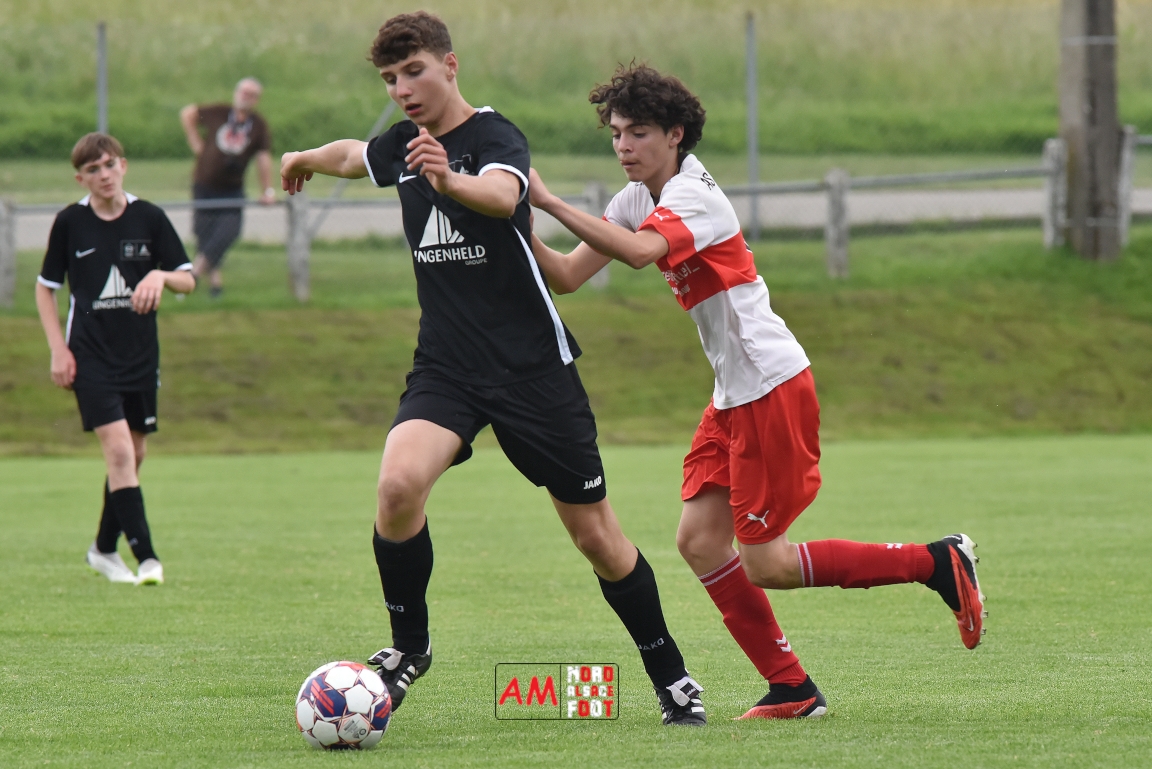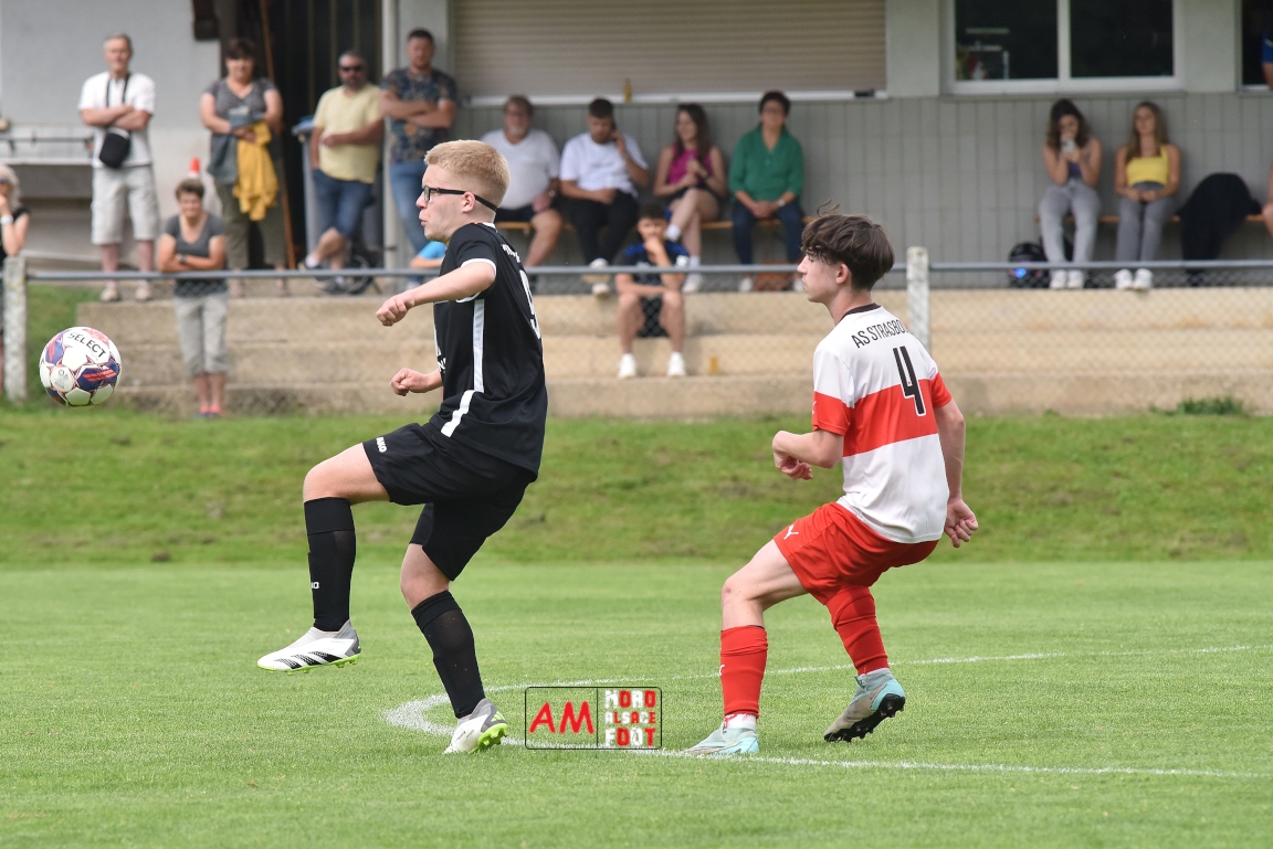 A l’occasion de la 22e et dernière journée de championnat chez les U15/Régionale 2 (Poule C), le Groupement Jeunes d’Alsace du Nord (7e) accueillait l’AS Strasbourg (2e) afin de tenter de se lancer un dernier défi, à savoir prendre leur revanche de la déroute du match aller face à des mêmes adversaires (7-0). Après une première période se soldant par un léger avantage en faveur des visiteurs (1-2), les locaux allaient parvenir à égaliser avant que les Strasbourgeois ne fassent la différence au cours des dix dernières minutes de jeu, ces derniers s’imposant finalement sur ce score de 2-3! Retrouvez, ci-dessous, quelques images de cette rencontre et, pour en apprécier le contenu, veuillez cliquer sur l’une d’entre-elles pour afficher le diaporama.