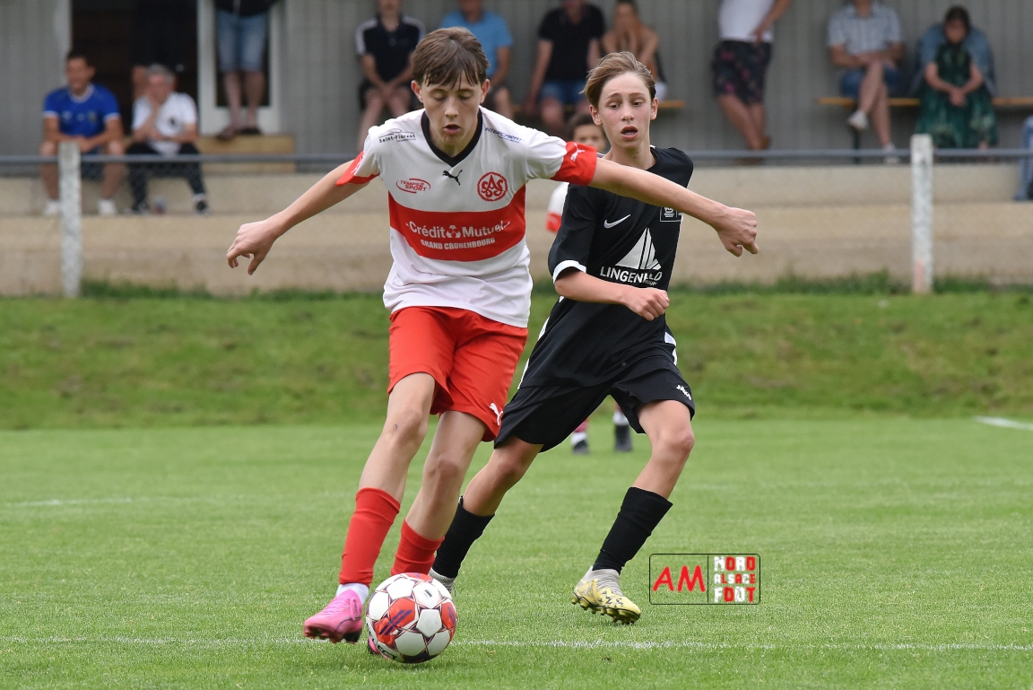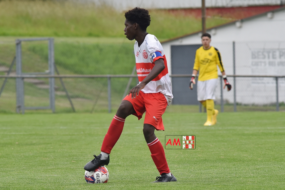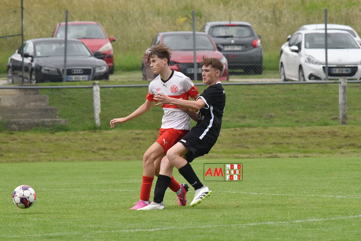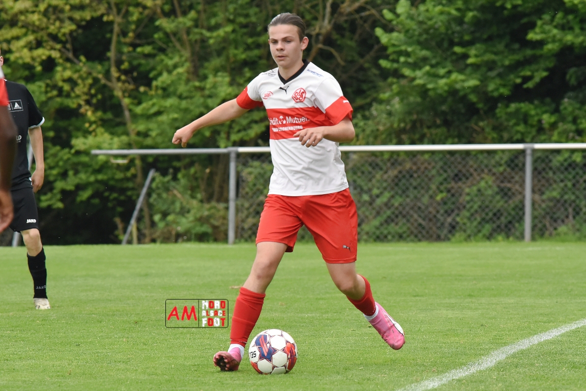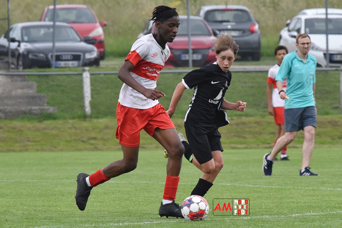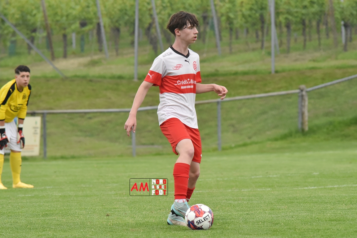 A l’occasion de la 22e et dernière journée de championnat chez les U15/Régionale 2 (Poule C), le Groupement Jeunes d’Alsace du Nord (7e) accueillait l’AS Strasbourg (2e) afin de tenter de se lancer un dernier défi, à savoir prendre leur revanche de la déroute du match aller face à des mêmes adversaires (7-0). Après une première période se soldant par un léger avantage en faveur des visiteurs (1-2), les locaux allaient parvenir à égaliser avant que les Strasbourgeois ne fassent la différence au cours des dix dernières minutes de jeu, ces derniers s’imposant finalement sur ce score de 2-3! Retrouvez, ci-dessous, quelques images de cette rencontre et, pour en apprécier le contenu, veuillez cliquer sur l’une d’entre-elles pour afficher le diaporama.