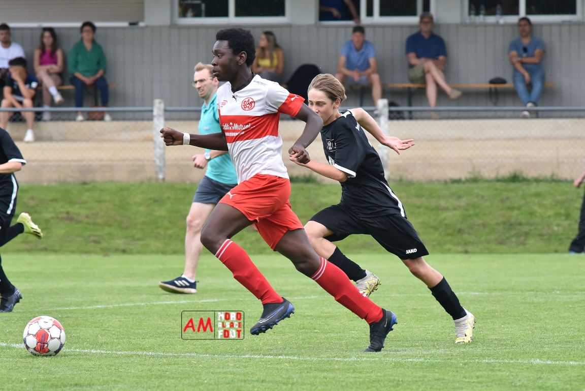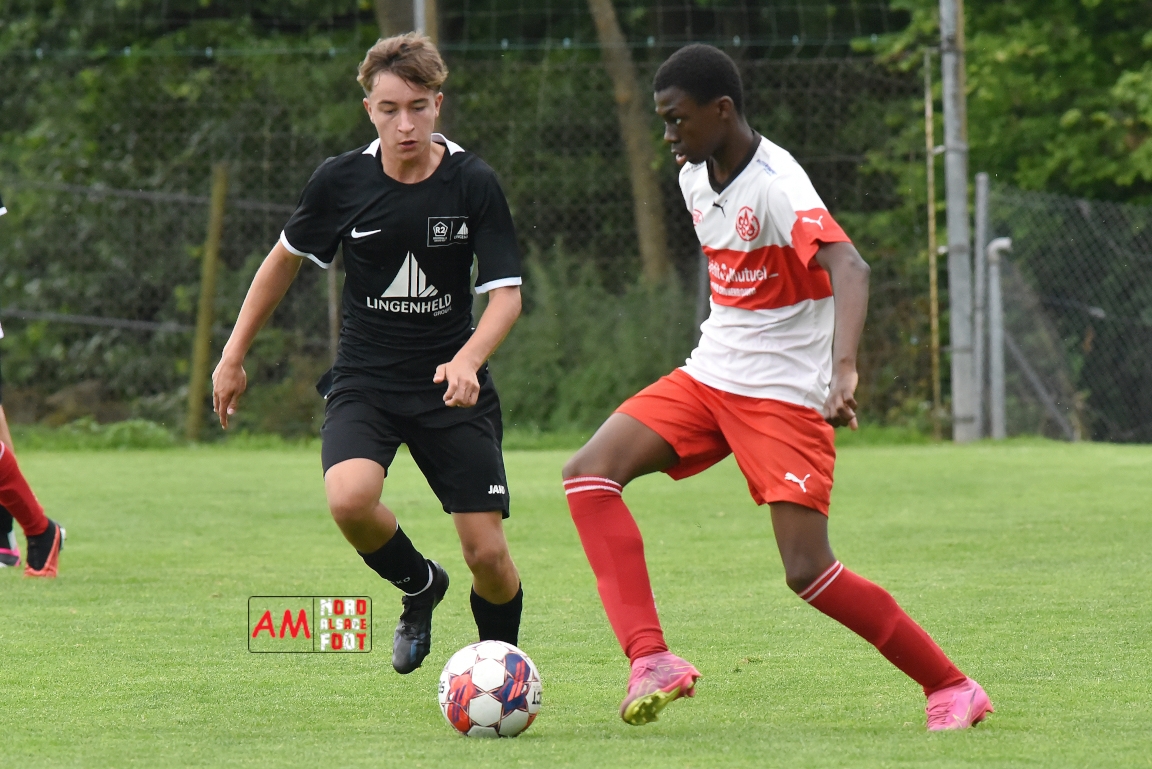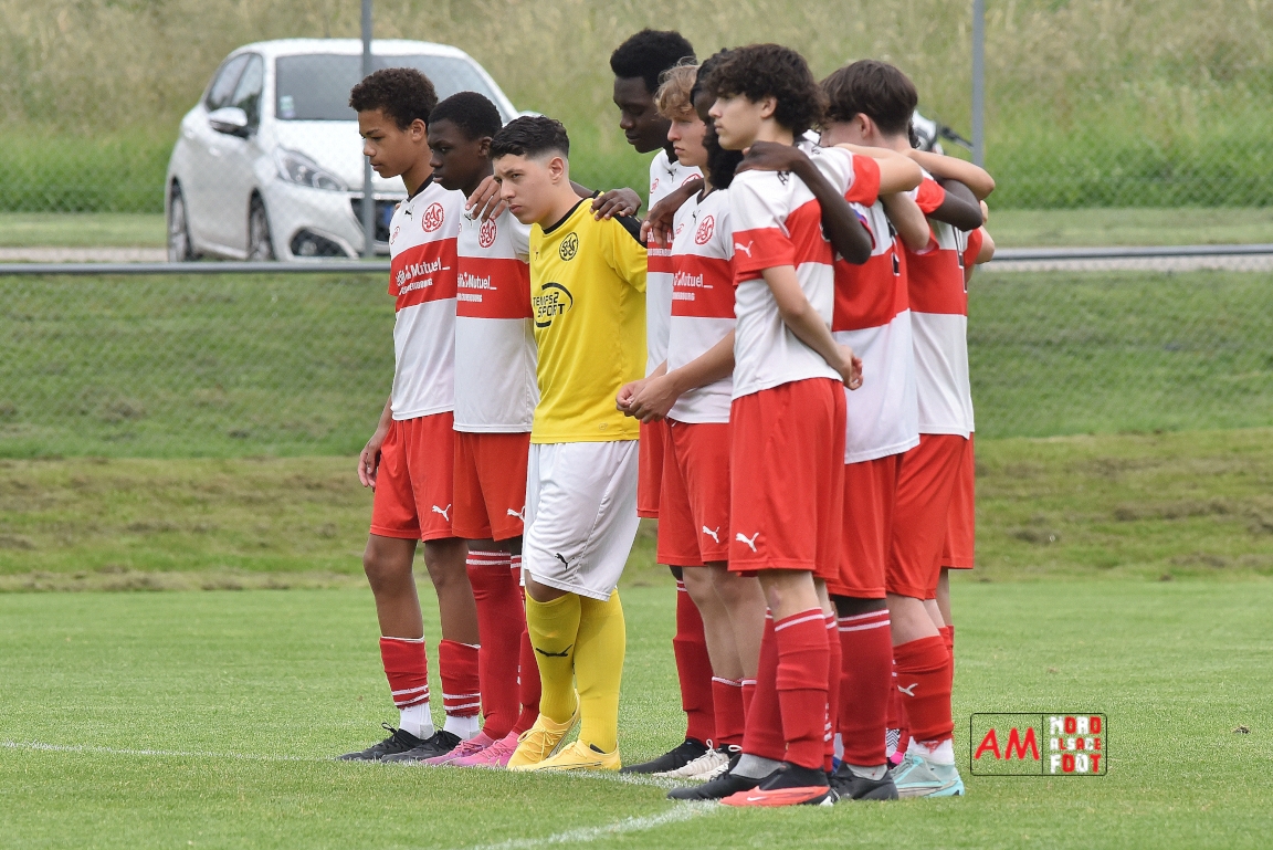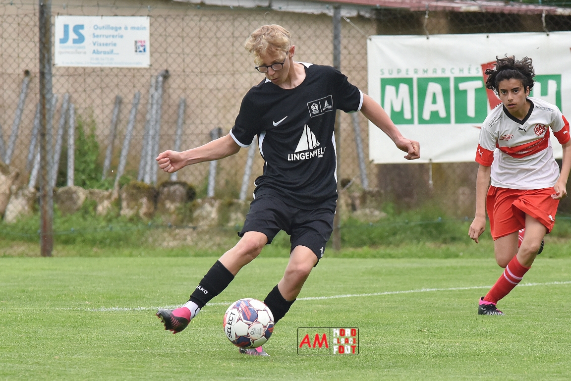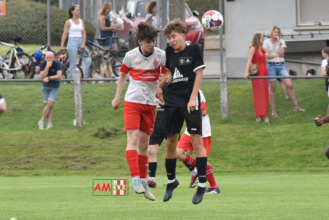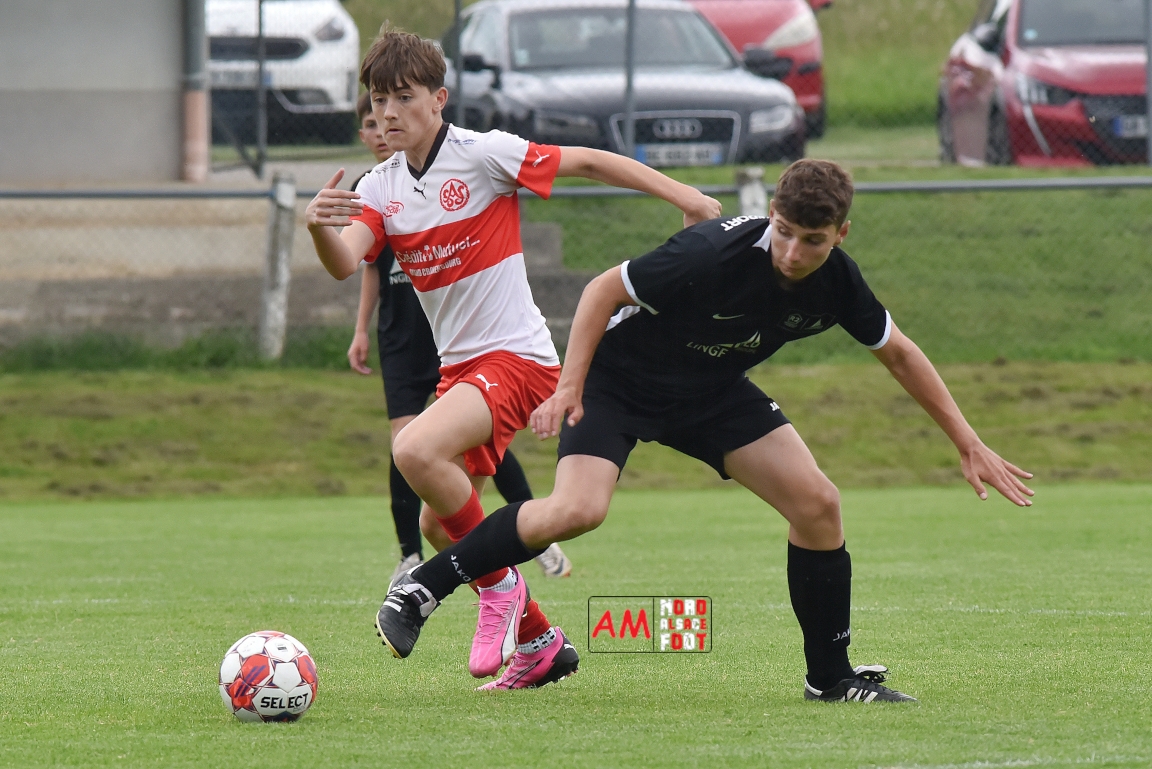 A l’occasion de la 22e et dernière journée de championnat chez les U15/Régionale 2 (Poule C), le Groupement Jeunes d’Alsace du Nord (7e) accueillait l’AS Strasbourg (2e) afin de tenter de se lancer un dernier défi, à savoir prendre leur revanche de la déroute du match aller face à des mêmes adversaires (7-0). Après une première période se soldant par un léger avantage en faveur des visiteurs (1-2), les locaux allaient parvenir à égaliser avant que les Strasbourgeois ne fassent la différence au cours des dix dernières minutes de jeu, ces derniers s’imposant finalement sur ce score de 2-3! Retrouvez, ci-dessous, quelques images de cette rencontre et, pour en apprécier le contenu, veuillez cliquer sur l’une d’entre-elles pour afficher le diaporama.