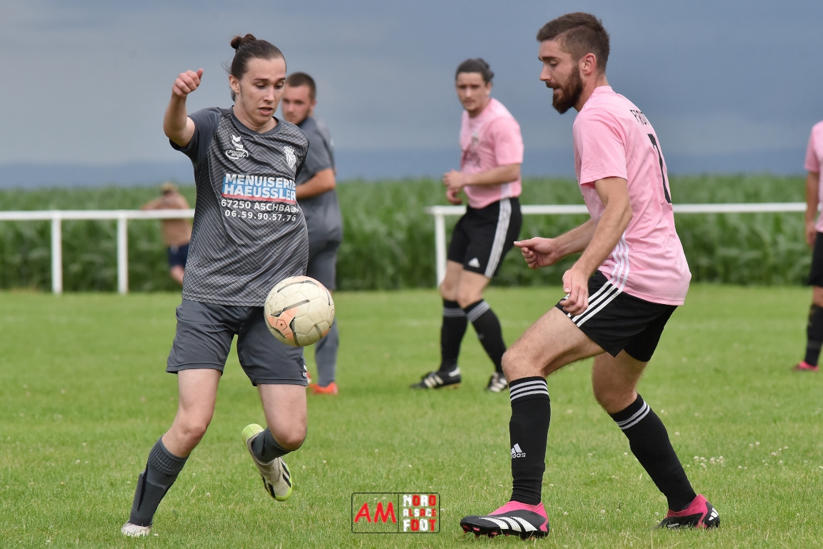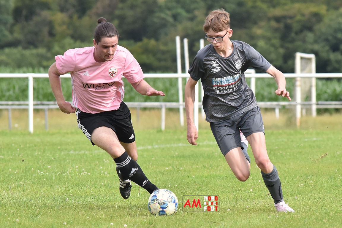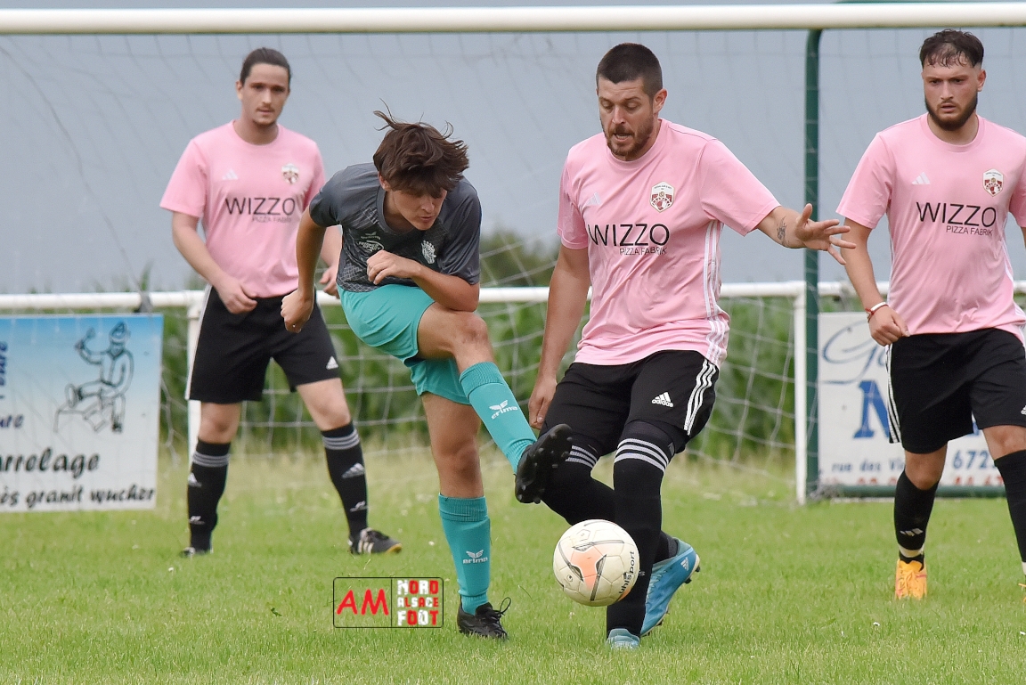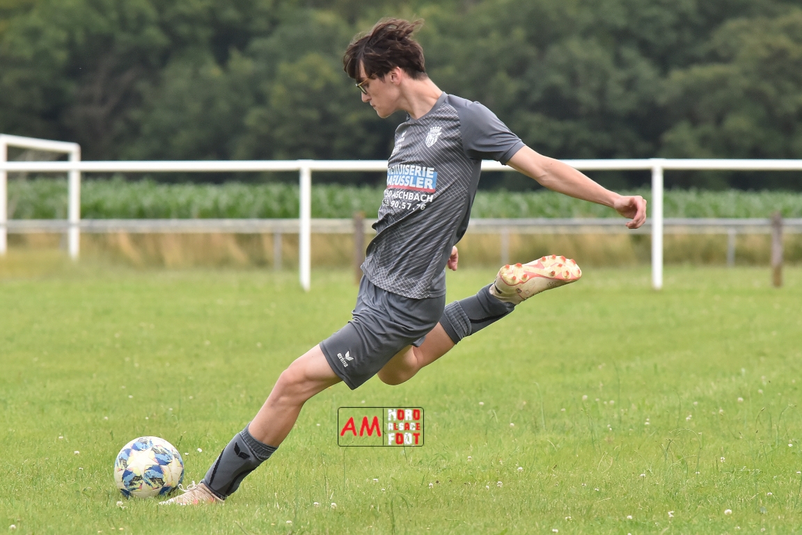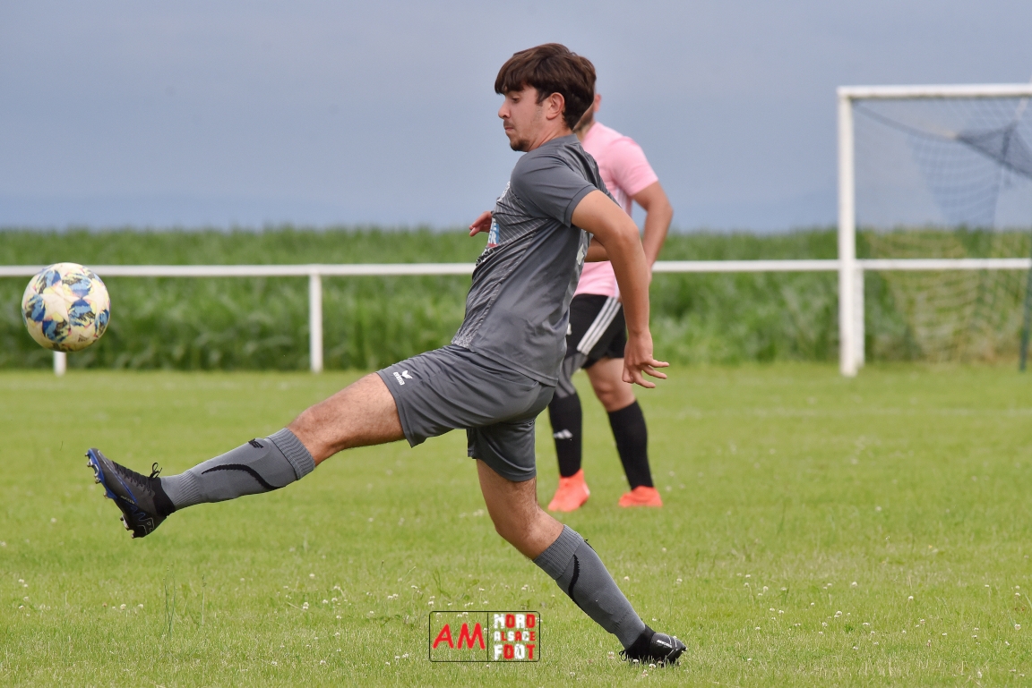 Les U18-2 de la Jeunesse Sportive de l’Outre-Forêt (JSOF) se sont réunis une dernière fois à Drachenbronn pour affronter un mélange des équipes 1&2 du FC Rott avant que chaque jeunes ne rejoignent leurs nouveaux clubs pour de nouvelles aventures. Pour faire le nombre, les jeunes étaient renforcés par Eidel Julien (AS Hunspach) et c’est ce dernier qui ouvrit le score (10e) avant que Mieger Steven n’égalise (13e). Un déboulé sur la gauche de Mathis Bumb redonna l’avantage aux U18 (25e) et on en restera sur ce score à la mi-temps. A la 50e Ozata Dylan égalisa en étant à la réception d’une passe millimétrée de Duplat Thomas dans la surface de réparation. Sept minutes plus tard, Eidel Julien redonna l’avantage à la JSOF d’une frappe des 25m avant qu’il ne soit, dans la foulée, à la conclusion d’une tête au premier poteau suite à un centre de la droite de Bumb Maxime (58e). Baissant légèrement en régime au cours de la dernière demi-heure de jeu, les jeunes concédèrent trois buts par l’incontournable Mieger Steven, ce dernier offrant finalement la victoire à ses protégés sur ce score de 4-5. Retrouvez, ci-dessous, quelques images de cette rencontre et, pour en apprécier le contenu, veuillez cliquer sur l’une d’entre-elles pour afficher le diaporama.