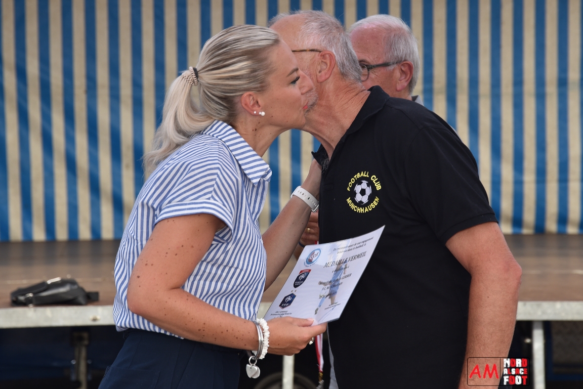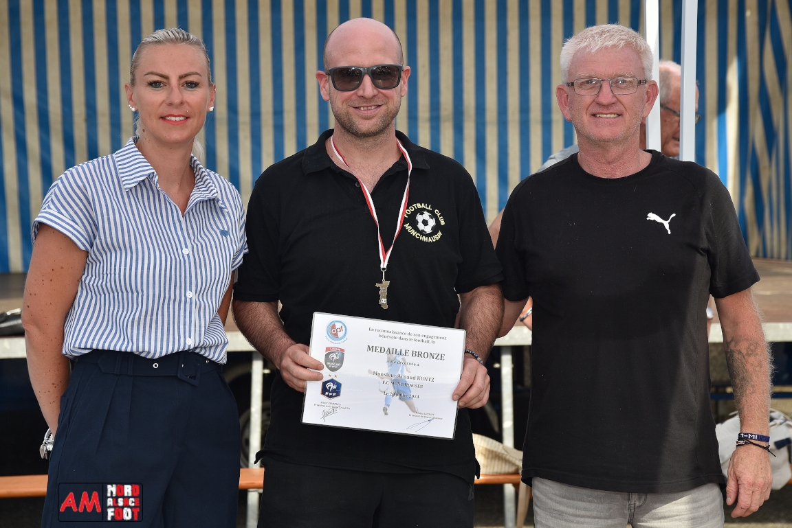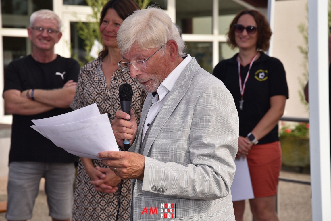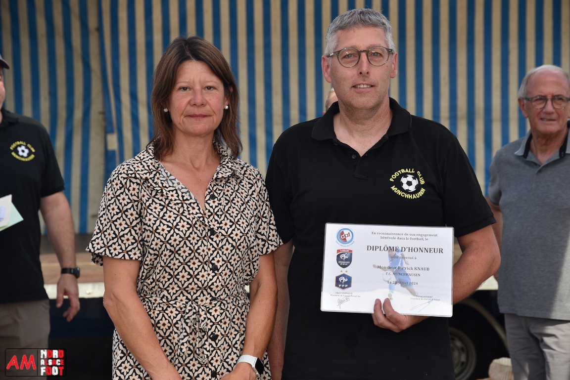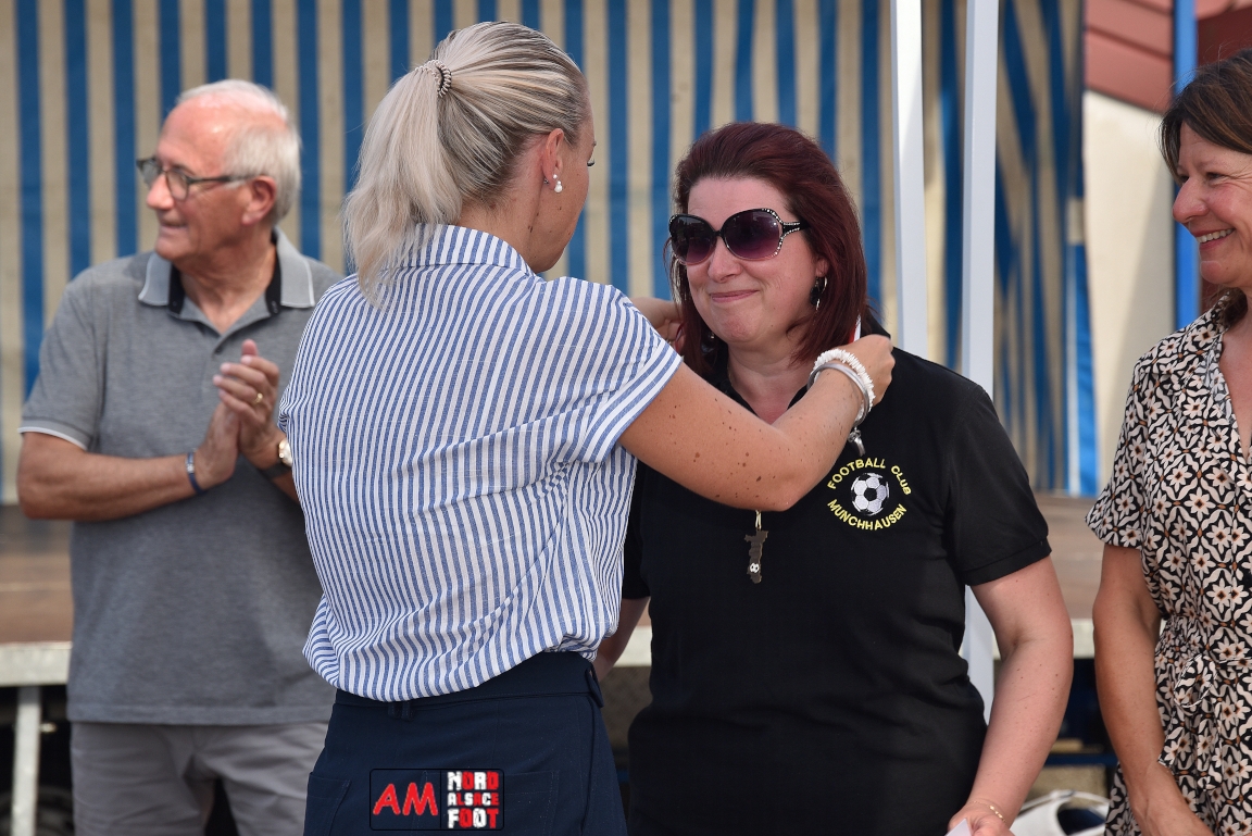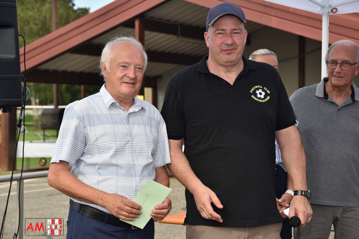 A l’occasion du 55e anniversaire du FC Munchhausen, le Président Gabel Serge, la maire de la commune Ruck Sandra, les représentants territoriaux Zindy Patrice, Wahl Eric et Willig Francis, le Président du District Aucourt Michel et les membres méritants du club se sont donnés rendez-vous au Stade du Rhin devant une petite assistance ayant répondu présente malgré la chaleur. Après le discours d’introduction du Président du club, ce dernier donna la parole aux différents représentants avant que le micro ne soit passé à Willig Francis pour la partie distinctions. C’est alors qu’une quinzaine de dirigeants ont été honorés tour à tour avant que cet évènement ne finisse par la traditionnelle photo de famille. Tous les participants ont ensuite été conviés au traditionnel vin d’honneur. Retrouvez, ci-dessous, quelques images de cette cérémonie et, pour en apprécier le contenu, veuillez cliquer sur l’une d’entre-elles pour afficher le diaporama. Attention, la photo de famille située au bas de l’album principal figure dans un second album, veuillez donc cliquer spécialement sur cette dernière pour la découvrir.
