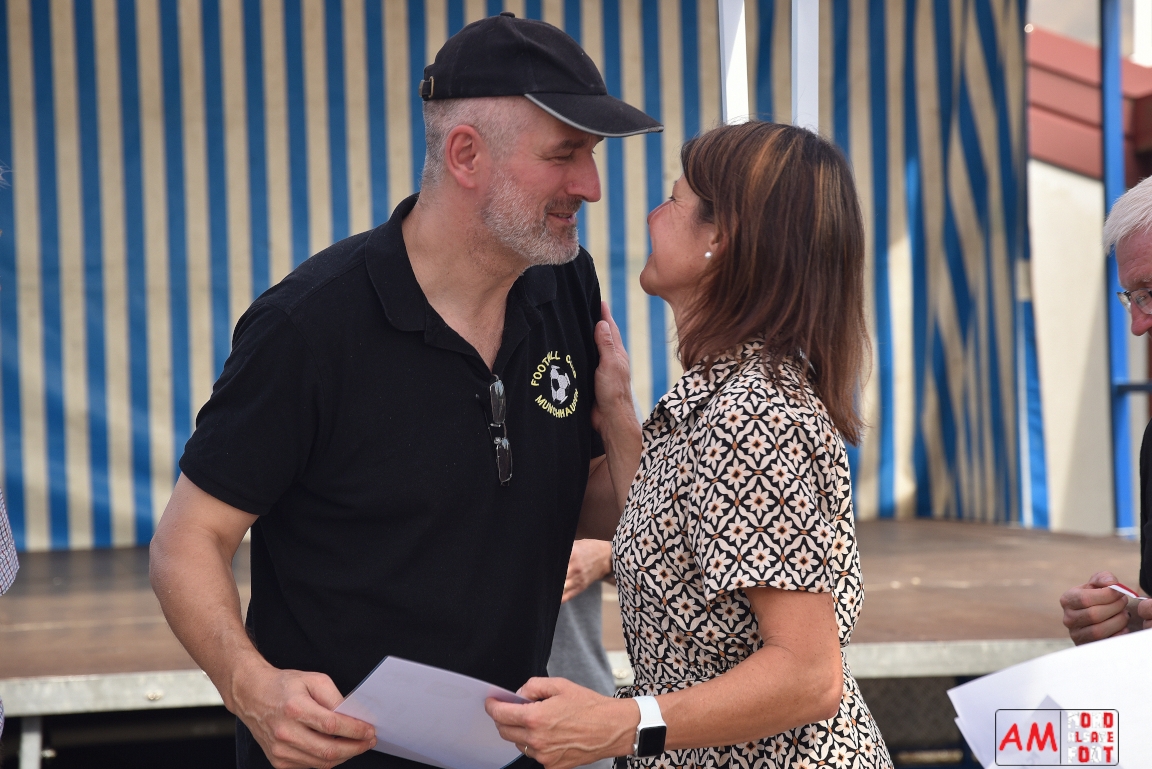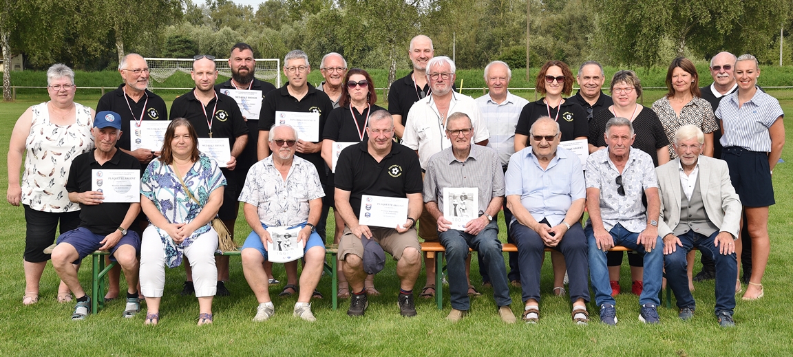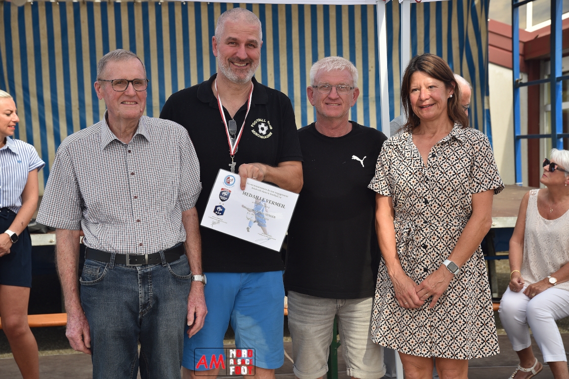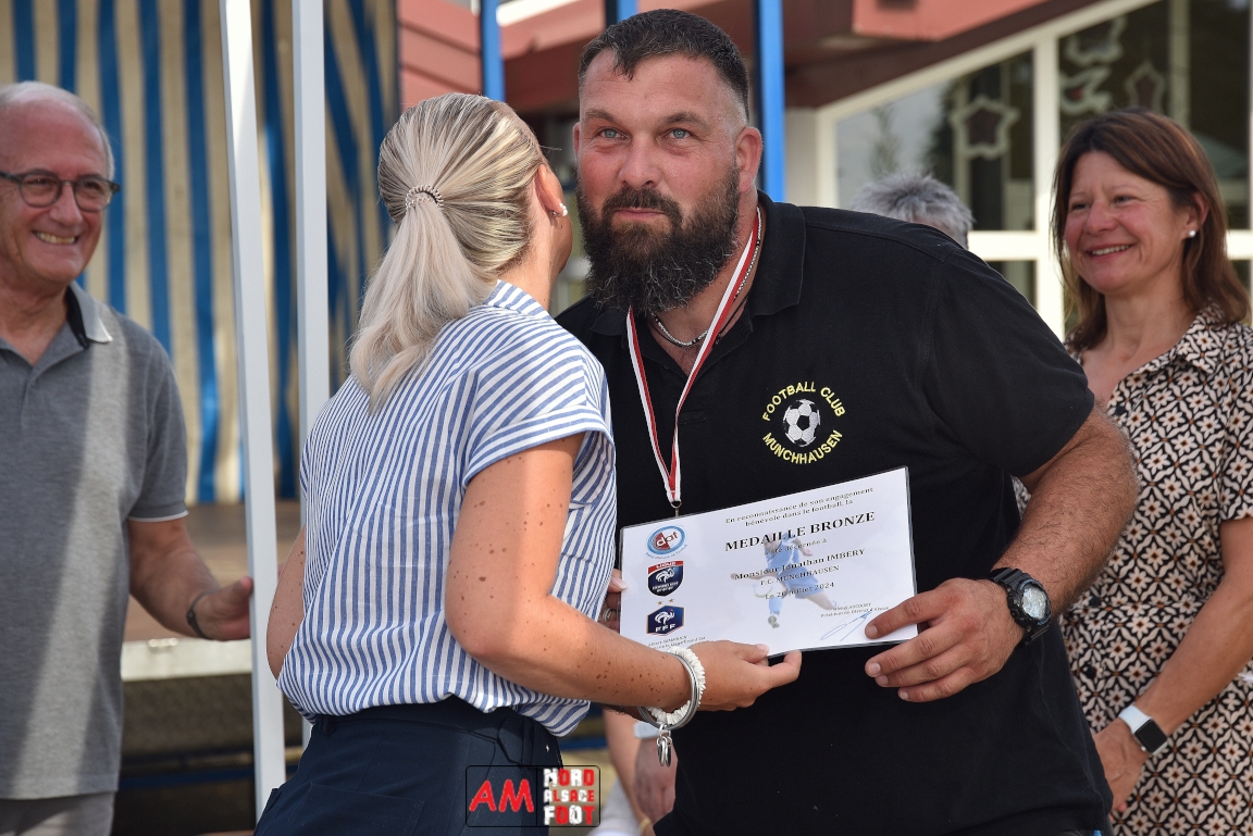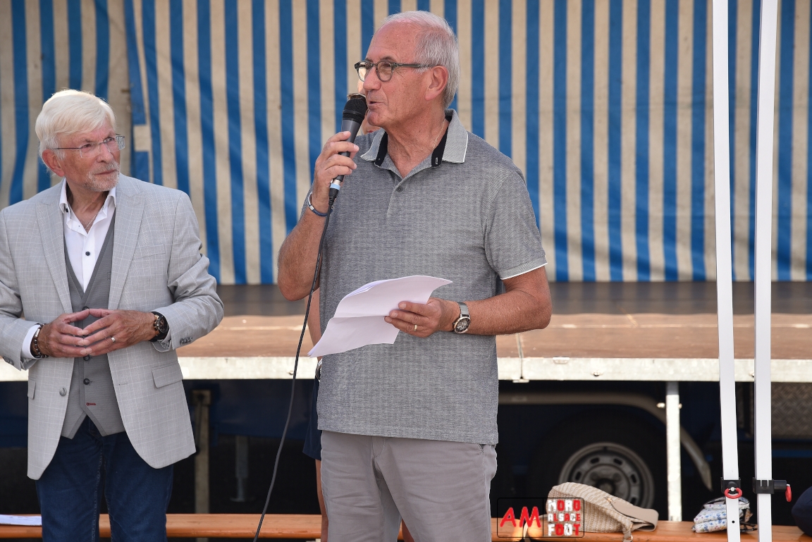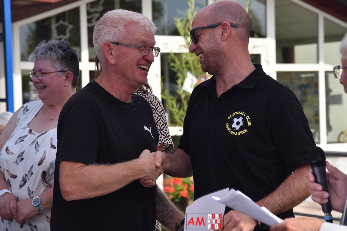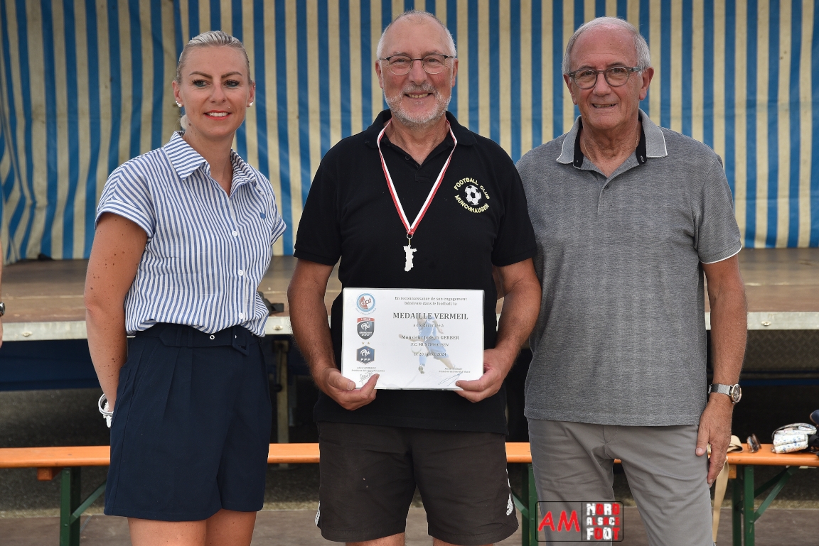 A l’occasion du 55e anniversaire du FC Munchhausen, le Président Gabel Serge, la maire de la commune Ruck Sandra, les représentants territoriaux Zindy Patrice, Wahl Eric et Willig Francis, le Président du District Aucourt Michel et les membres méritants du club se sont donnés rendez-vous au Stade du Rhin devant une petite assistance ayant répondu présente malgré la chaleur. Après le discours d’introduction du Président du club, ce dernier donna la parole aux différents représentants avant que le micro ne soit passé à Willig Francis pour la partie distinctions. C’est alors qu’une quinzaine de dirigeants ont été honorés tour à tour avant que cet évènement ne finisse par la traditionnelle photo de famille. Tous les participants ont ensuite été conviés au traditionnel vin d’honneur. Retrouvez, ci-dessous, quelques images de cette cérémonie et, pour en apprécier le contenu, veuillez cliquer sur l’une d’entre-elles pour afficher le diaporama. Attention, la photo de famille située au bas de l’album principal figure dans un second album, veuillez donc cliquer spécialement sur cette dernière pour la découvrir.