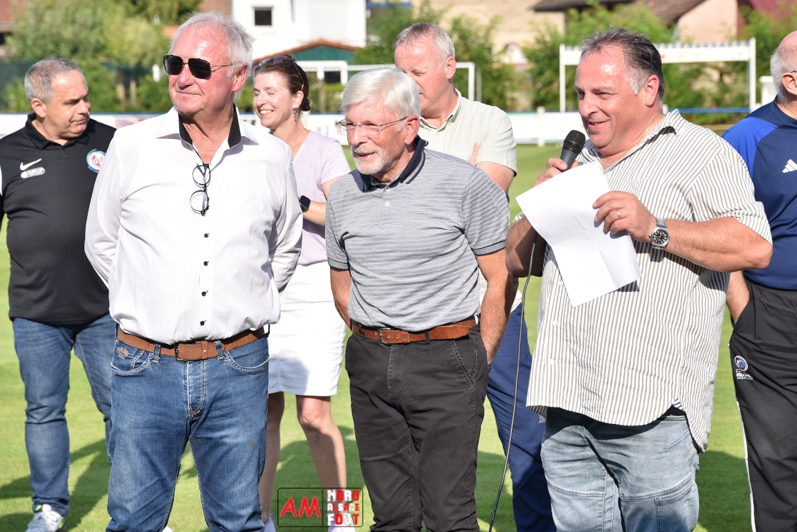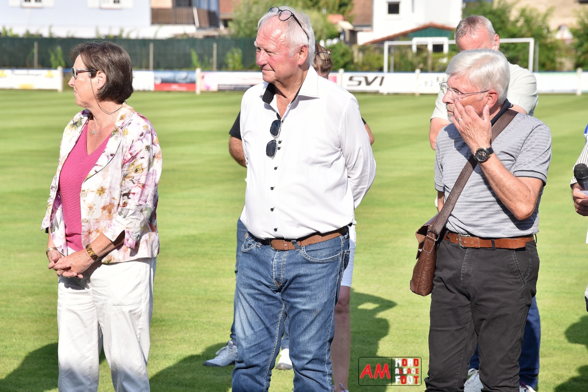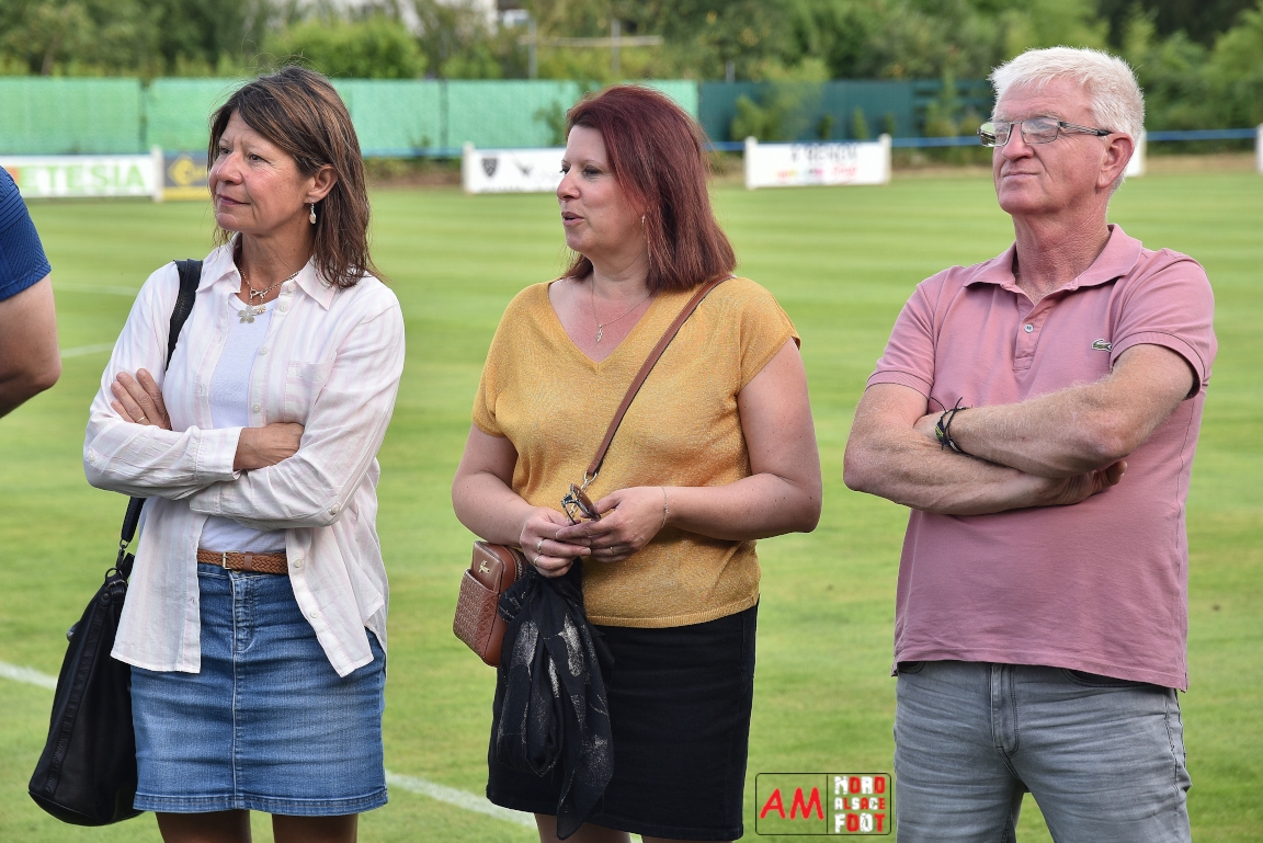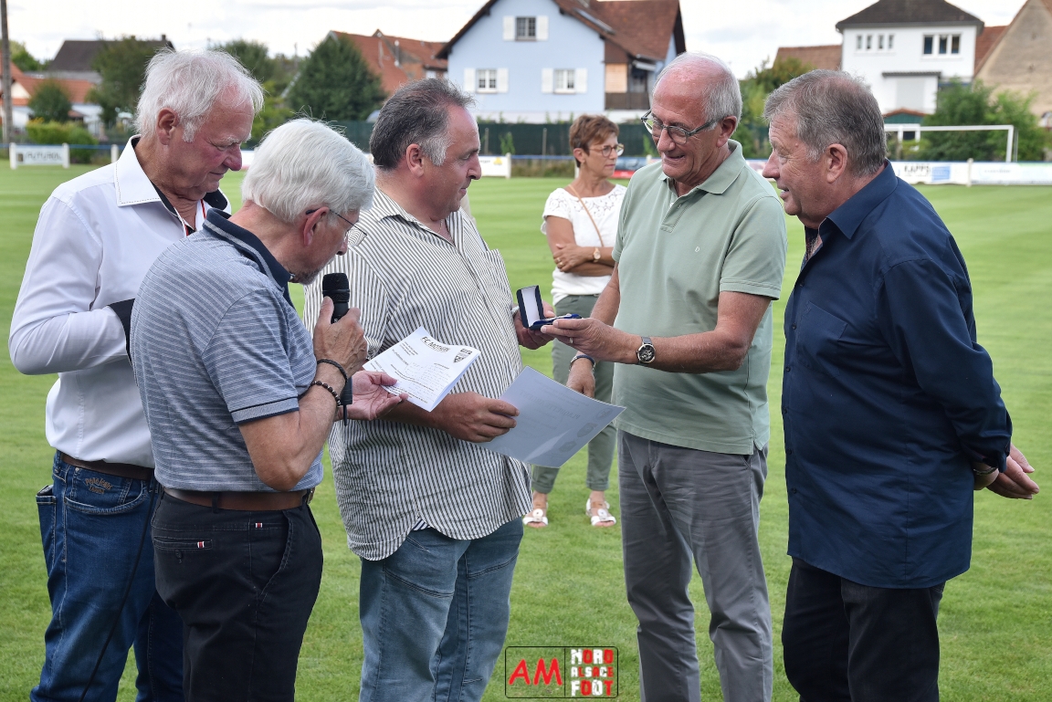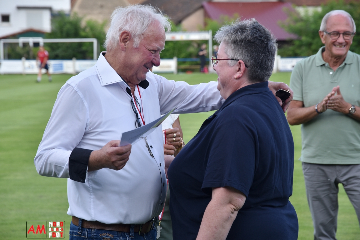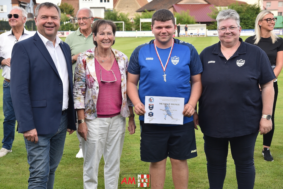 A l’occasion du 95ème anniversaire du FC Mothern, une grosse délégation du District d’Alsace composée de Michel Aucourt (Président du District d’Alsace), de Deubel Caroline (Vice-présidente en charge du développement), de André Hahn (vice-président en charge des coupes), de Pascal Fritz (représentant des arbitres), de Willig Francis (Président de la commission bénévolat), de Wahl Eric (Animateur territorial), de Zindy Patrice (Animateur territorial) et de Hoefler Isabelle (commission bénévolat), des élus du Grand Est et de la Collectivité Européenne d’Alsace avec Isinger Evelyne (Grand Est) et Heintz Paul (CEA), des élus locaux avec Schmaltz Isabelle (Maire de Mothern) et sa deuxième adjointe Ball Martine, des anciens présidents et arbitres ainsi que les acteurs méritants du club ont répondu à l’invitation de Mastio René (Président du FC Mothern) afin de prendre part à la cérémonie officielle. Après que chaque représentant ne soient intervenuschacun dans leur domaine de compétence, ce fut au tour de Willig Francis de prendre la parole pour la partie distinctions. Retrouvez, ci-dessous, quelques images de cette cérémonie et, pour en apprécier le contenu, veuillez cliquer sur l’une d’entre-elles pour afficher le diaporama. Attention, la photo de famille située au bas de l’album principal figure dans un second album, veuillez donc cliquer spécialement sur cette dernière pour la découvrir.