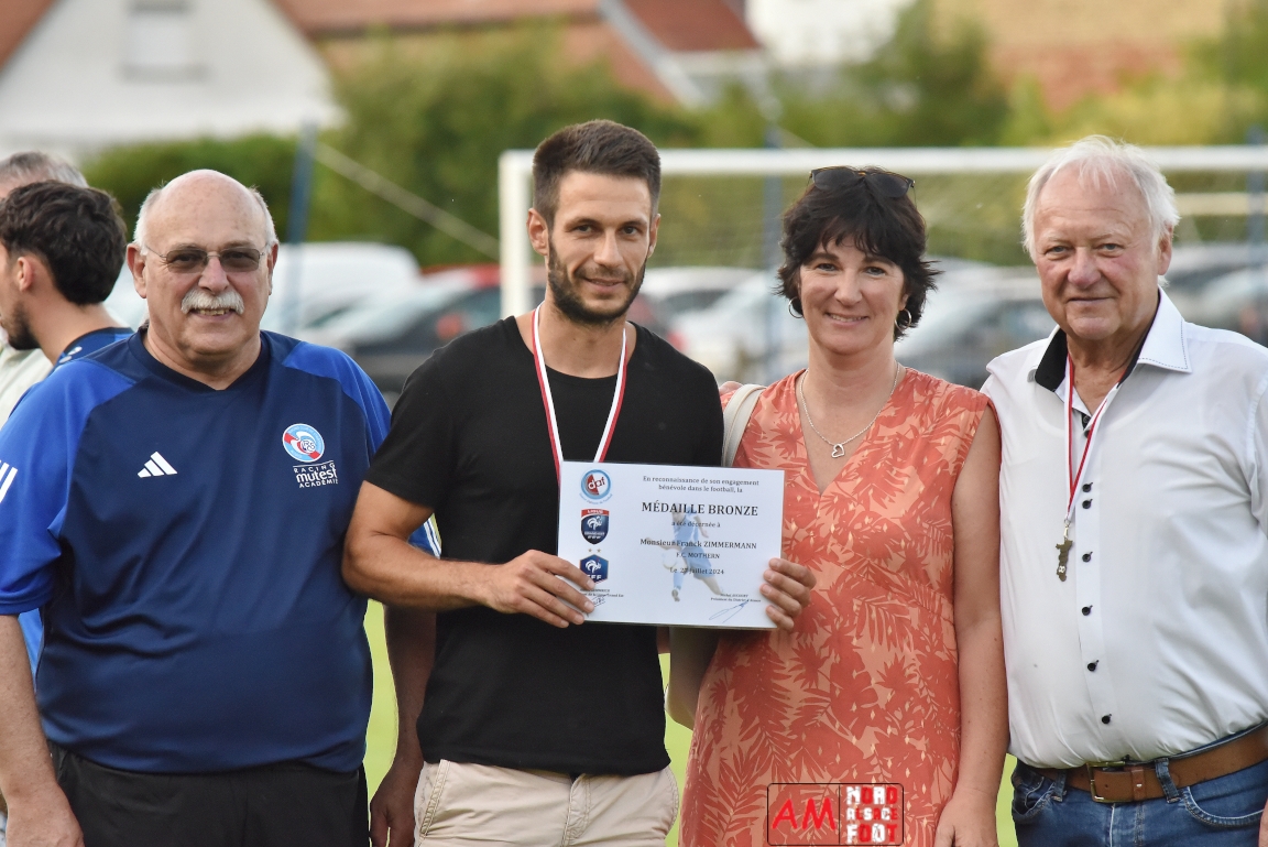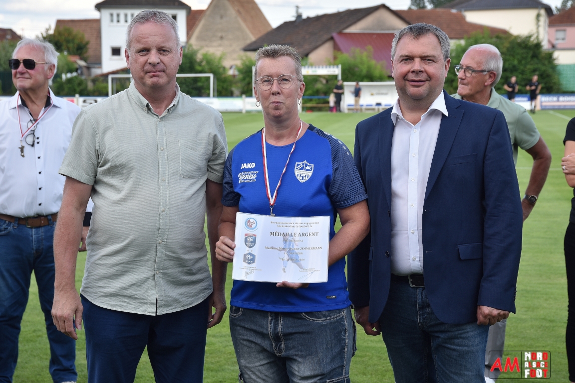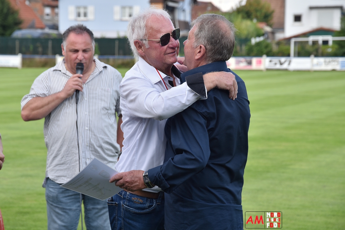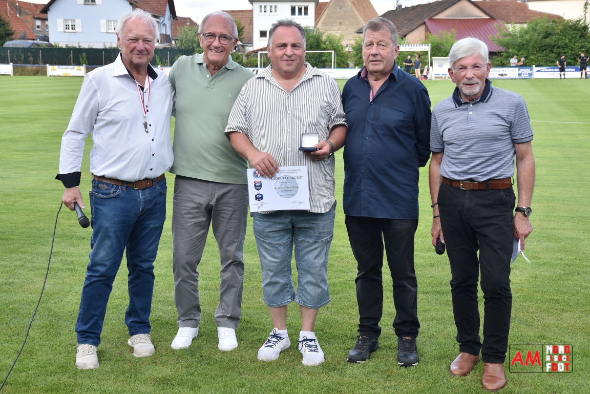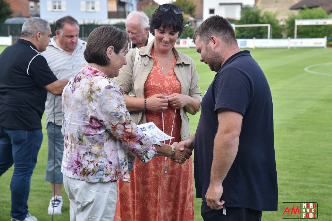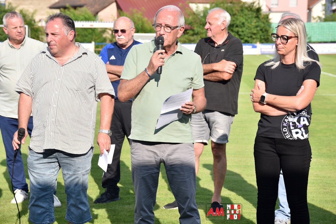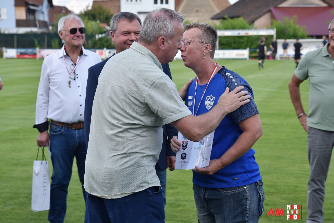 A l’occasion du 95ème anniversaire du FC Mothern, une grosse délégation du District d’Alsace composée de Michel Aucourt (Président du District d’Alsace), de Deubel Caroline (Vice-présidente en charge du développement), de André Hahn (vice-président en charge des coupes), de Pascal Fritz (représentant des arbitres), de Willig Francis (Président de la commission bénévolat), de Wahl Eric (Animateur territorial), de Zindy Patrice (Animateur territorial) et de Hoefler Isabelle (commission bénévolat), des élus du Grand Est et de la Collectivité Européenne d’Alsace avec Isinger Evelyne (Grand Est) et Heintz Paul (CEA), des élus locaux avec Schmaltz Isabelle (Maire de Mothern) et sa deuxième adjointe Ball Martine, des anciens présidents et arbitres ainsi que les acteurs méritants du club ont répondu à l’invitation de Mastio René (Président du FC Mothern) afin de prendre part à la cérémonie officielle. Après que chaque représentant ne soient intervenuschacun dans leur domaine de compétence, ce fut au tour de Willig Francis de prendre la parole pour la partie distinctions. Retrouvez, ci-dessous, quelques images de cette cérémonie et, pour en apprécier le contenu, veuillez cliquer sur l’une d’entre-elles pour afficher le diaporama. Attention, la photo de famille située au bas de l’album principal figure dans un second album, veuillez donc cliquer spécialement sur cette dernière pour la découvrir.