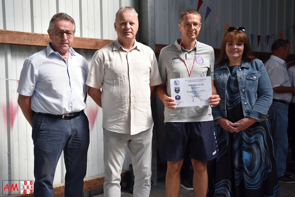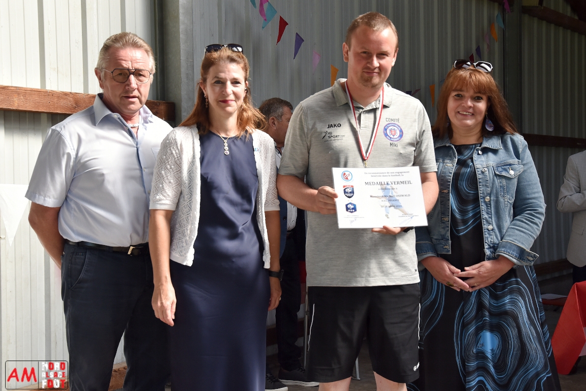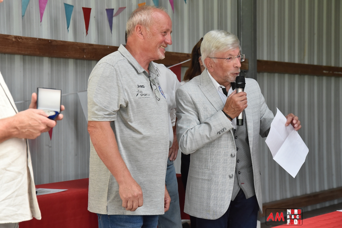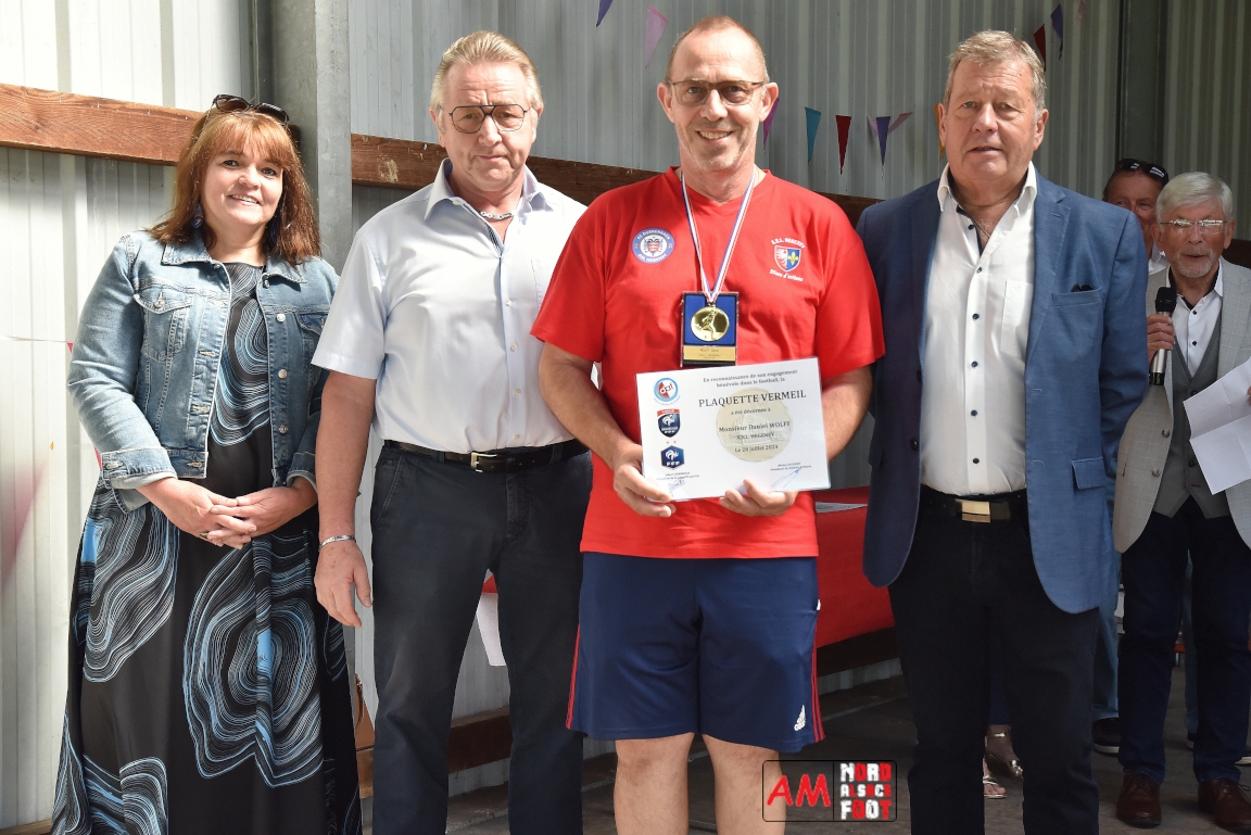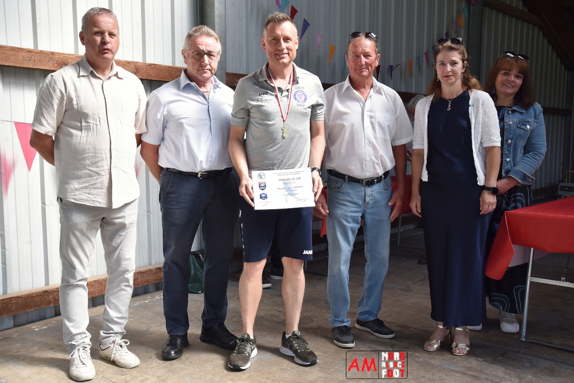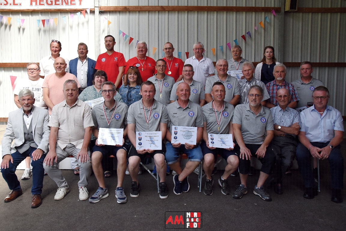 A l’occasion du 35ème anniversaire de l’ASL Hegeney, une délégation du District d’Alsace de Football composée de André Hahn (Vice-président du District d’Alsace), de Pascal Fritz (Comité Directeur du DAF et Administrateur du Territoire Alsace Nord), de Willig Francis (Président de la Commission bénévolat et Coordinateur du Territoire Alsace Nord), de Hoefler Isabelle (Commission Bénévolat) et de Ertzinger Jean-Jacques (Animateur territorial), le maire de la commune Roger Isel et la Conseillère d’Alsace Marajo-Guthmuller Nathalie ont répondu présent à l’invitation de Osswald Jean-Paul (Président de l’ASL Hégeney) afin de prendre part à la cérémonie officielle. Après le discours d’introduction du Président du club, Jean-Paul Osswald, ce fut au tour de André Hahn, de Pascal Fritz, de Roger Isel et de Marajo-Guthmuller Nathalie d’intervenir avant que Willig Francis ne prenne la parole pour la partie distinctions. Retrouvez, ci-dessous, quelques images de cette cérémonie et, pour en apprécier le contenu, veuillez cliquer sur l’une d’entre-elles pour afficher le diaporama.