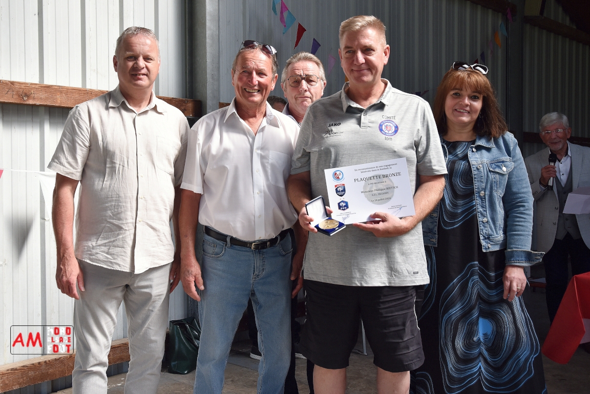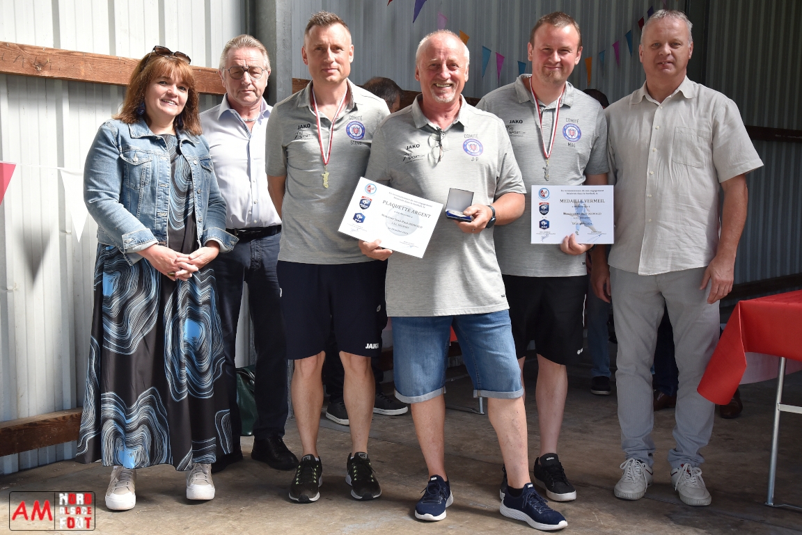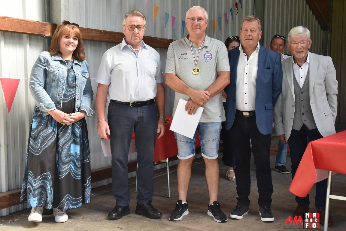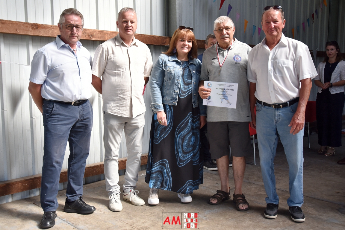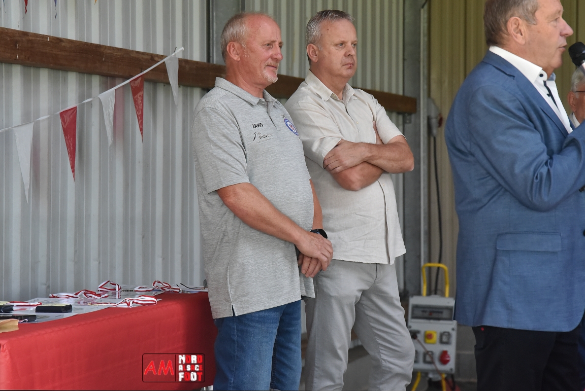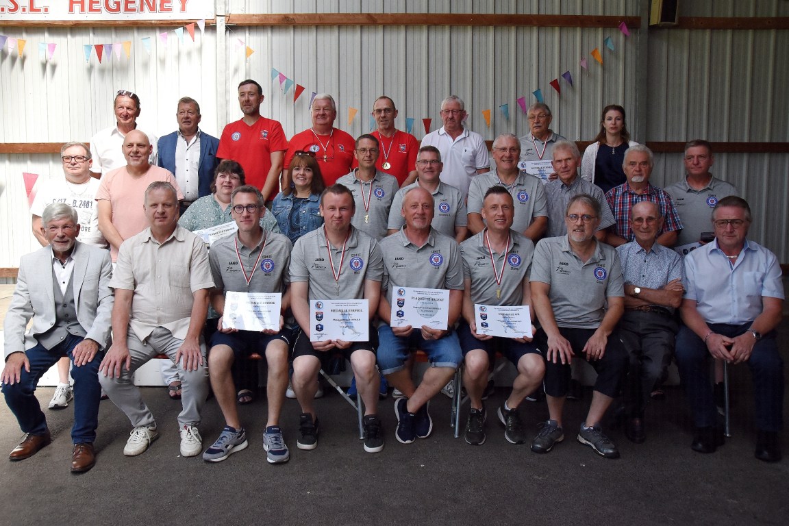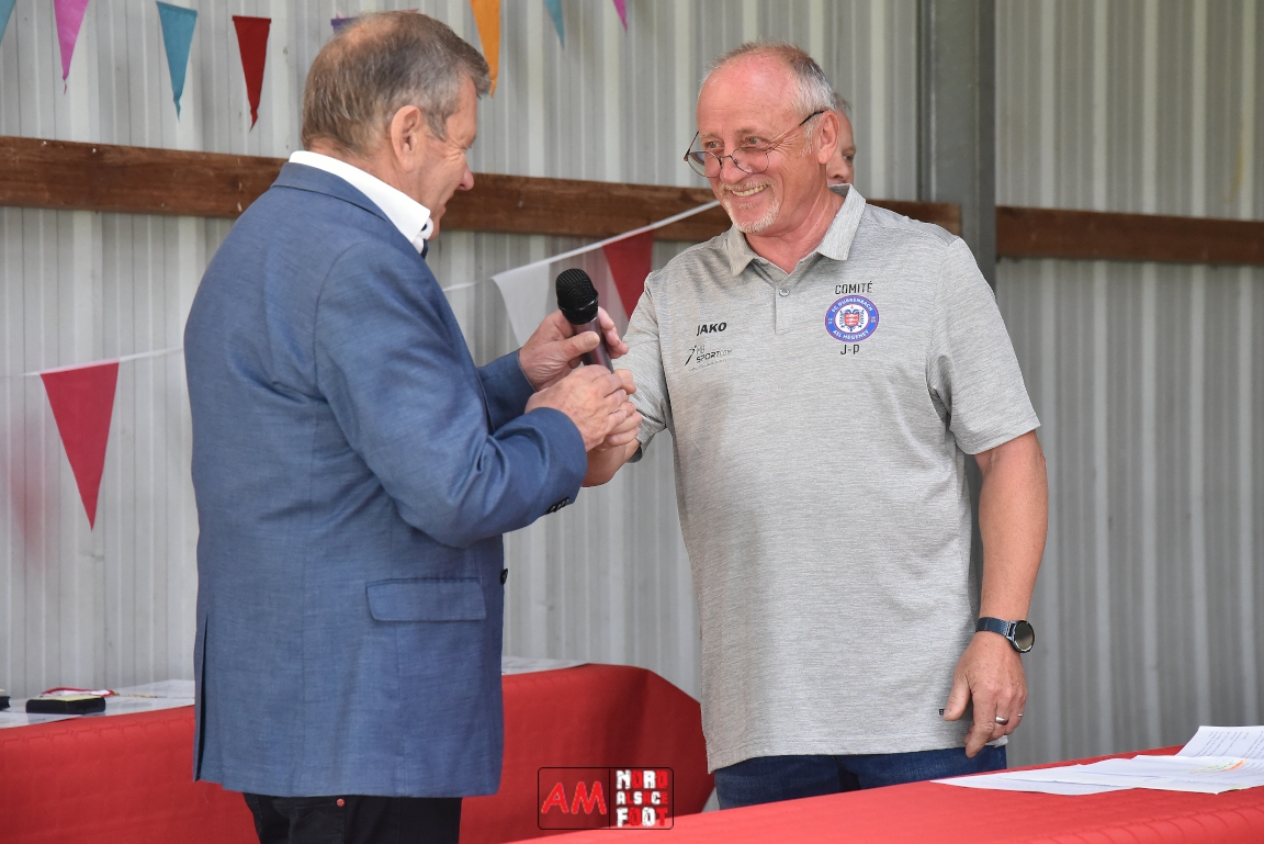 A l’occasion du 35ème anniversaire de l’ASL Hegeney, une délégation du District d’Alsace de Football composée de André Hahn (Vice-président du District d’Alsace), de Pascal Fritz (Comité Directeur du DAF et Administrateur du Territoire Alsace Nord), de Willig Francis (Président de la Commission bénévolat et Coordinateur du Territoire Alsace Nord), de Hoefler Isabelle (Commission Bénévolat) et de Ertzinger Jean-Jacques (Animateur territorial), le maire de la commune Roger Isel et la Conseillère d’Alsace Marajo-Guthmuller Nathalie ont répondu présent à l’invitation de Osswald Jean-Paul (Président de l’ASL Hégeney) afin de prendre part à la cérémonie officielle. Après le discours d’introduction du Président du club, Jean-Paul Osswald, ce fut au tour de André Hahn, de Pascal Fritz, de Roger Isel et de Marajo-Guthmuller Nathalie d’intervenir avant que Willig Francis ne prenne la parole pour la partie distinctions. Retrouvez, ci-dessous, quelques images de cette cérémonie et, pour en apprécier le contenu, veuillez cliquer sur l’une d’entre-elles pour afficher le diaporama.