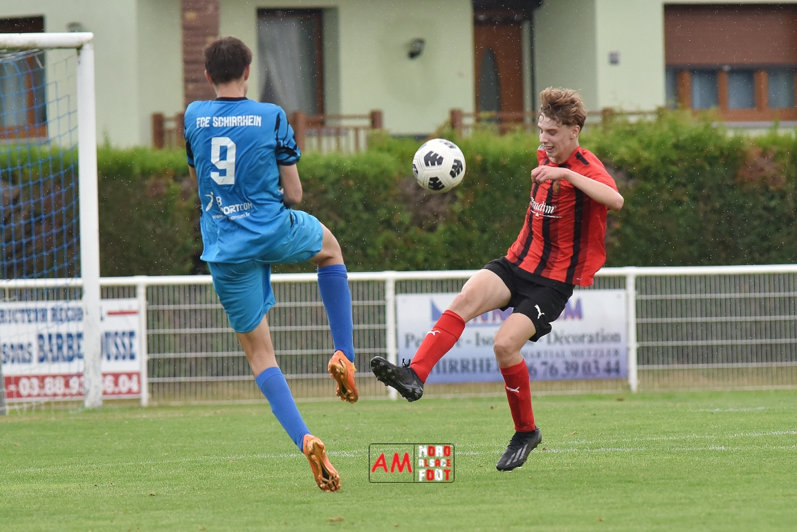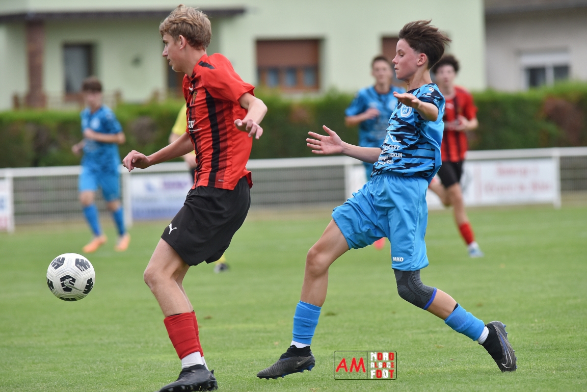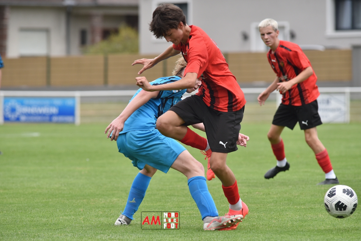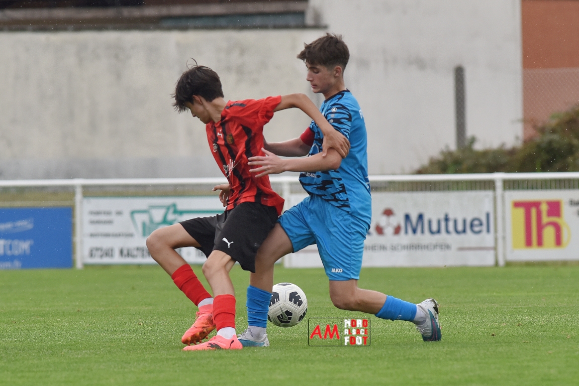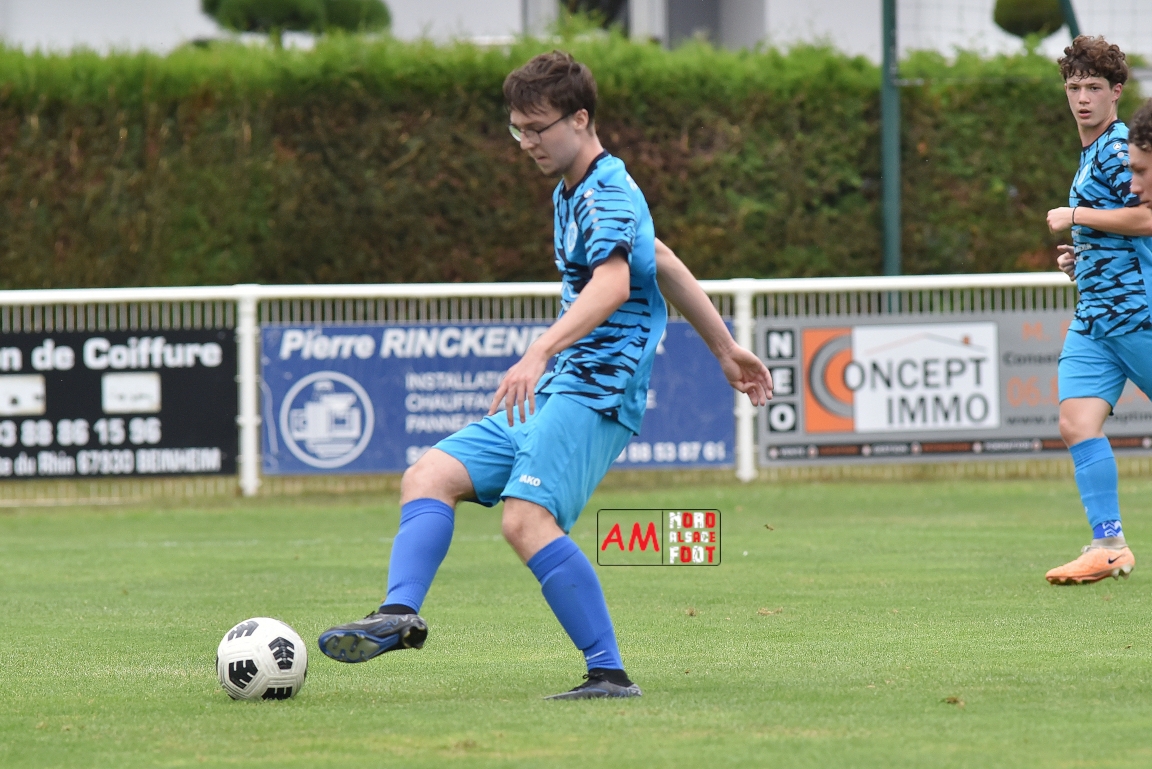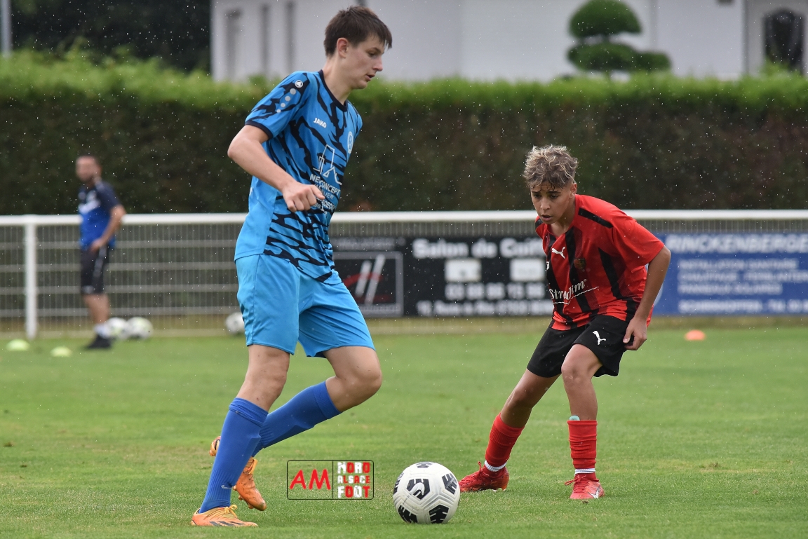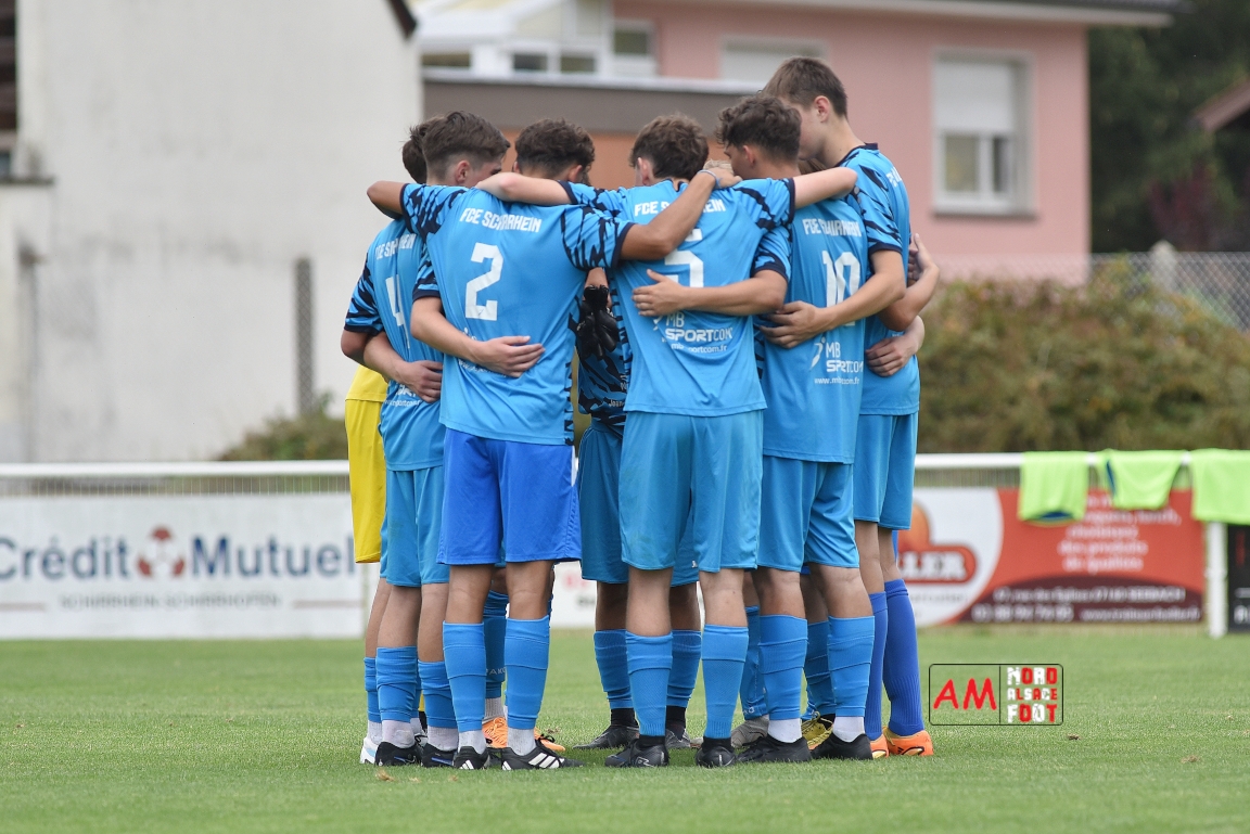 A l’occasion de la traditionnelle fête du foot organisée par le FCE Schirrhein-Schirrhoffen, les U18 du club accueillaient les U16 du FCSR Obernai afin de jauger les forces en présence en vue du premier tour de Coupe Gambardella intervenant à la fin août, et ce, face à une équipe adverse semblant mieux composée que la leur. Après une première période se soldant par un large avantage en faveur des Obernois (1-4), la rencontre allait s’équilibrer en seconde période avant que les deux formations ne se quittent finalement sur ce score de 1-4! Retrouvez, ci-dessous, quelques images de cette rencontre et, pour en apprécier le contenu, veuillez cliquer sur l’une d’entre-elles pour afficher le diaporama.