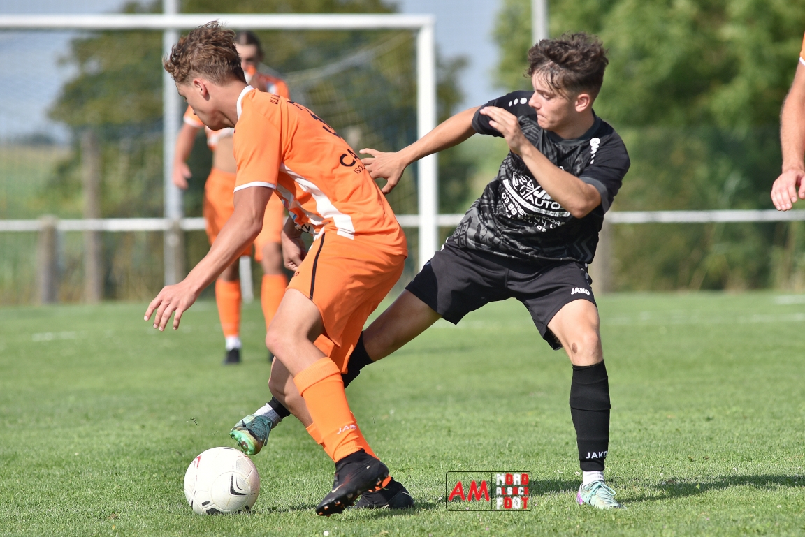 A l’occasion de la seconde journée comptant pour le 70e anniversaire du SC Rittershoffen, l’US Oberlauterbach 2 (District 1) affrontait l’AS Betschdorf (District 2) afin de tenter de poursuivre leur préparation par une victoire, et ce, face à des adversaires qu’ils avaient croisés en championnat lors du précédent exercice. Après une première période se soldant par un léger avantage en faveur des oranges (2-1), ces derniers allaient faire le break en seconde période avant qu’ils ne finissent par s’imposer sur ce score de 3-1! Retrouvez, ci-dessous, quelques images de cette rencontre et, pour en apprécier le contenu, veuillez cliquer sur l’une d’entre-elles pour afficher le diaporama.