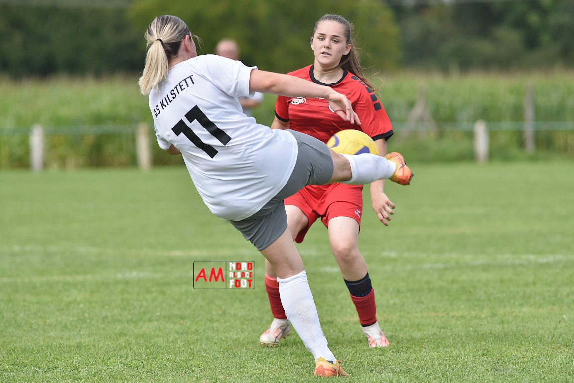 A l’occasion du second match comptant pour la deuxième journées des “Journées Foot” de l’ASStB Leutenheim, l’AS Kilstett F (District 1) affrontait le FC Vendenheim 2 F (Régional 2) afin de tenter de se jauger face à des adversaires de la classe supérieure. Après une première période se soldant par un score nul et vierge, les Kilstettoises allaient inscrire deux buts en seconde période avant qu’elles ne s’imposent finalement sur ce score de 2-0! Retrouvez, ci-dessous, quelques images de cette rencontre et, pour en apprécier le contenu, veuillez cliquer sur l’une d’entre-elles pour afficher le diaporama.