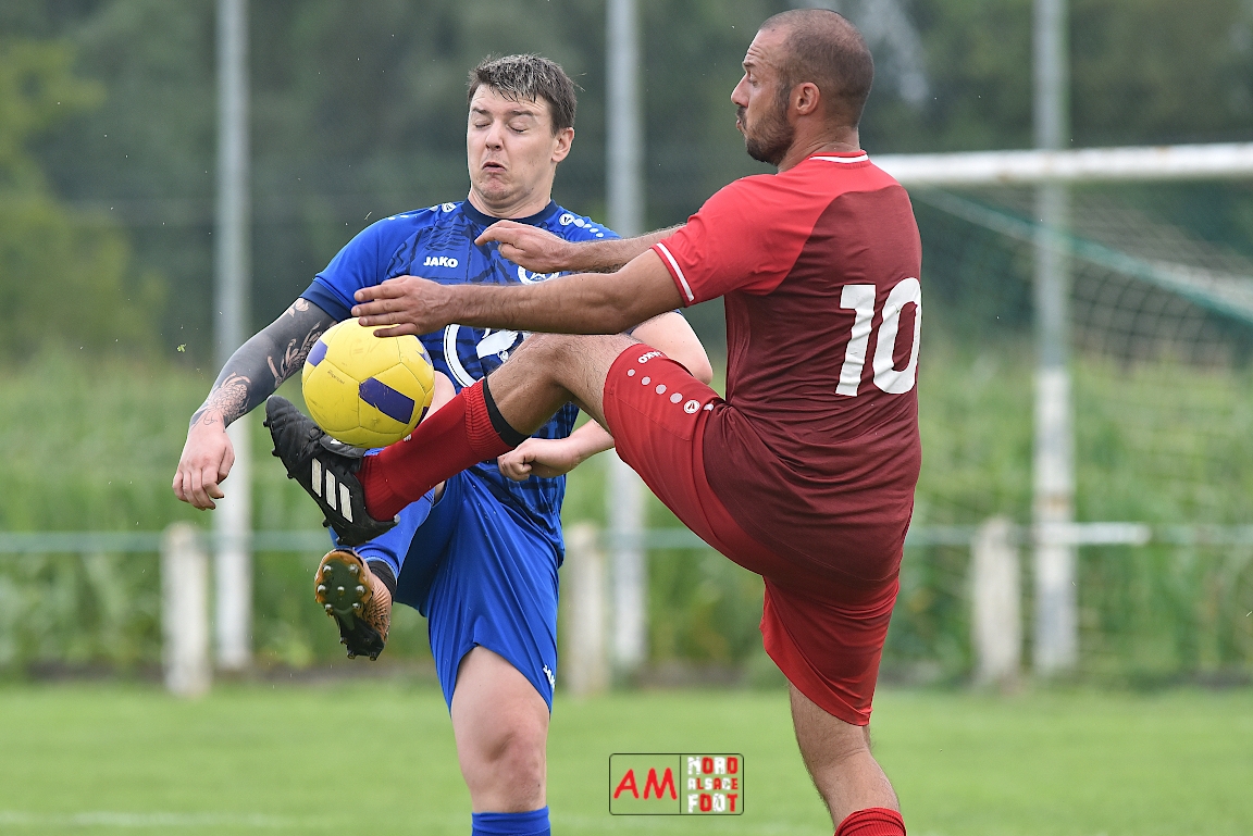 A l’occasion des Journées Foot de l’ASStB Leutenheim, le FCE Schirrhein 3 affrontait le FC Batzendorf 1 pour un duel entre deux équipes s’apprêtant à évoluer en District 4 lors du prochain exercice. Après une première période se soldant par un avantage confortable en faveur des protégés de Mohamed Hannachi (1-3), ces derniers allaient continuer de creuser l’écart en seconde période en ajoutant trois buts au compteur avant que les Schirrheinois ne parviennent à réduire la marque en fin de rencontre, ces deux formations se quittant donc sur ce score de 2-6! Retrouvez, ci-dessous, quelques images de cette rencontre et, pour en apprécier le contenu, veuillez cliquer sur l’une d’entre-elles pour afficher le diaporama.