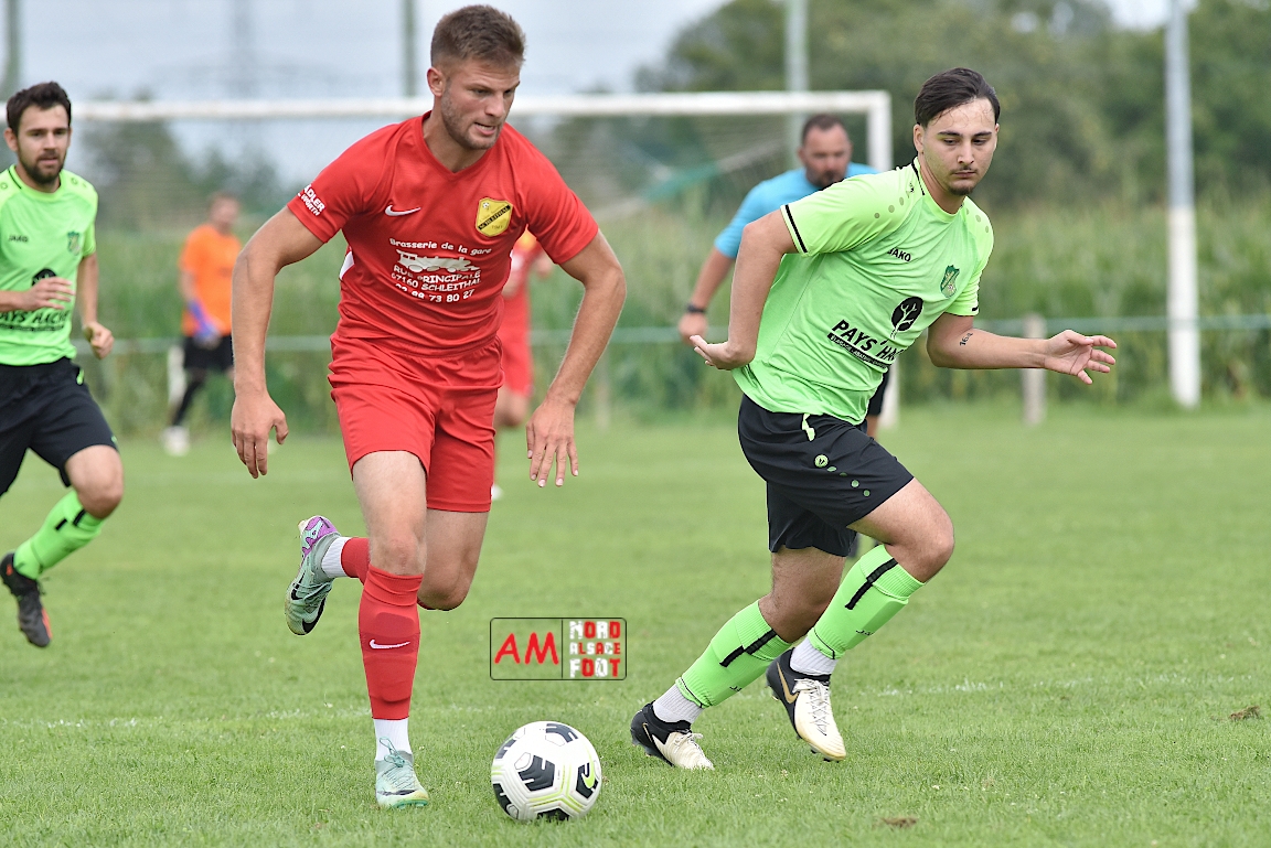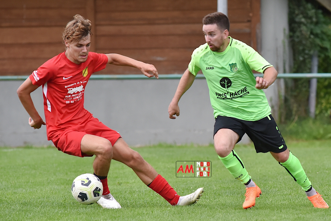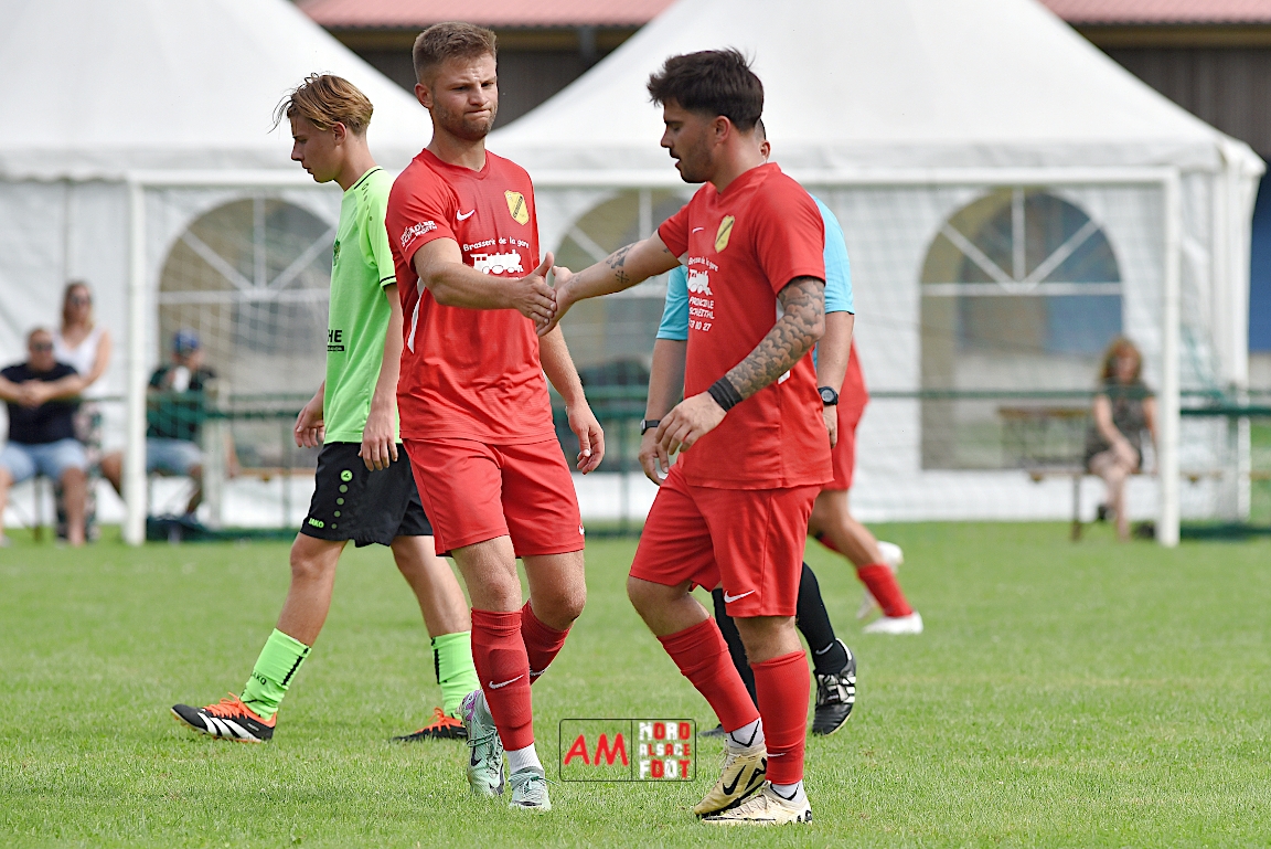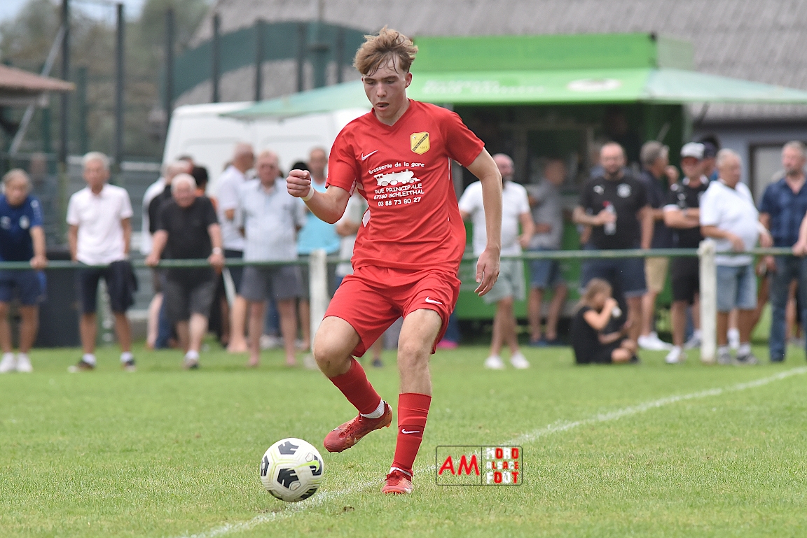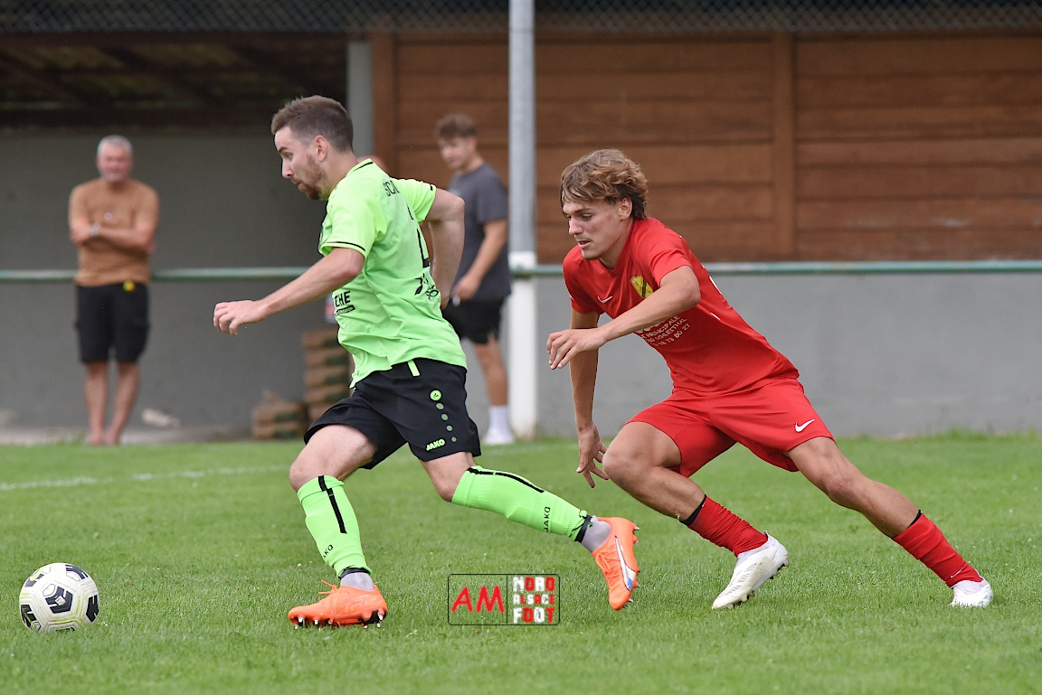 A l’occasion du troisième match comptant pour la deuxième journées des “Journées Foot” organisées par l’ASStB Leutenheim, le SC Roeschwoog (District 2) affrontait l’US Schleithal (Régional 3) afin de travailler les derniers automatismes avant la reprise de la compétition officielle intervenant dans deux semaines. Après une première période se soldant par un court avantage en faveur des protégés de Schmitt Geoffrey (0-1), ces derniers allaient creuser l’écart en seconde période en ajoutant deux buts au compteur afin de s’adjuger une victoire convaincante sur ce score de 0-3! Retrouvez, ci-dessous, quelques images de cette rencontre et, pour en apprécier le contenu, veuillez cliquer sur l’une d’entre-elles pour afficher le diaporama.