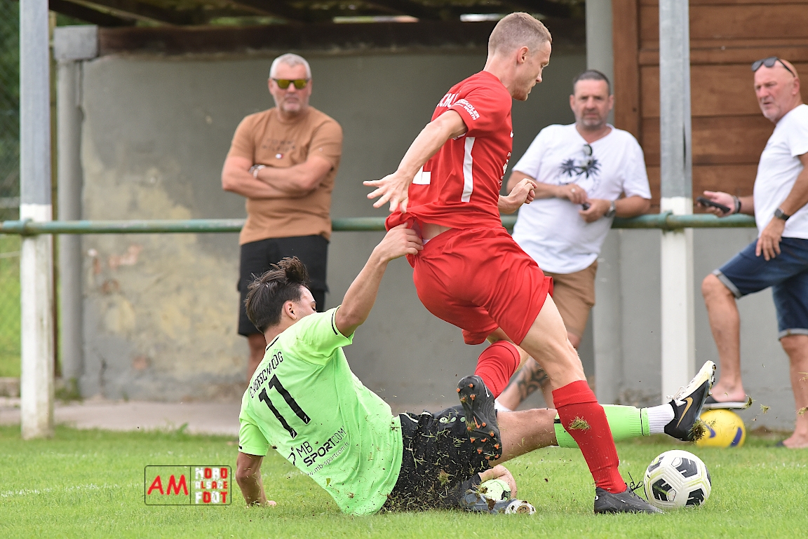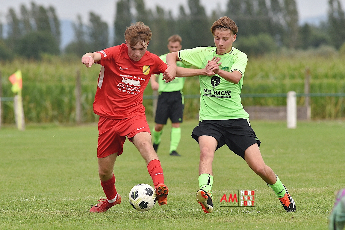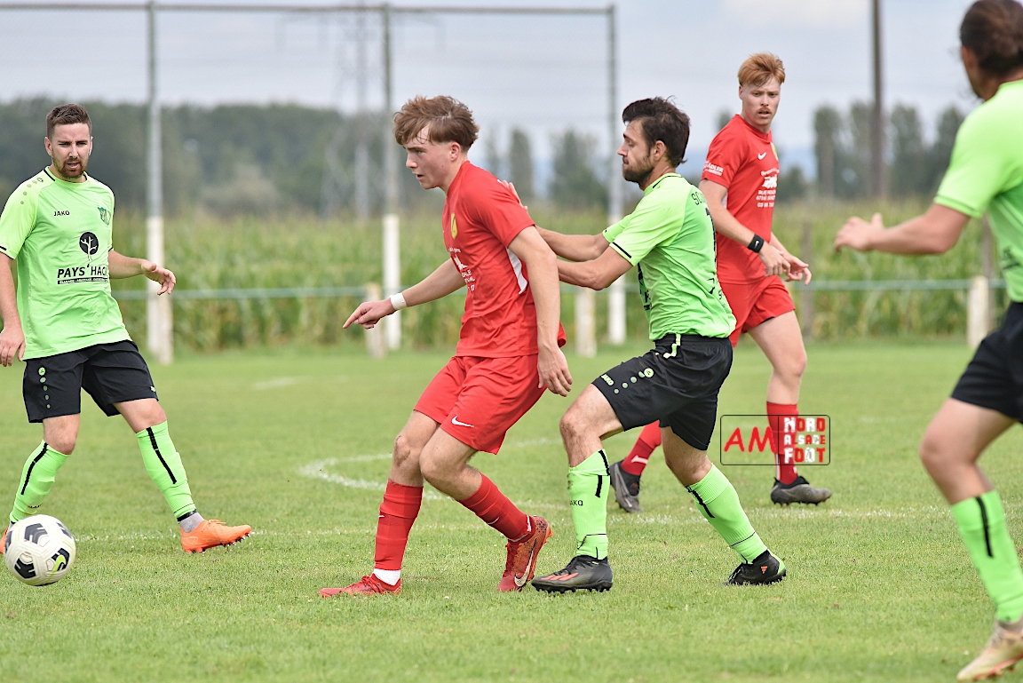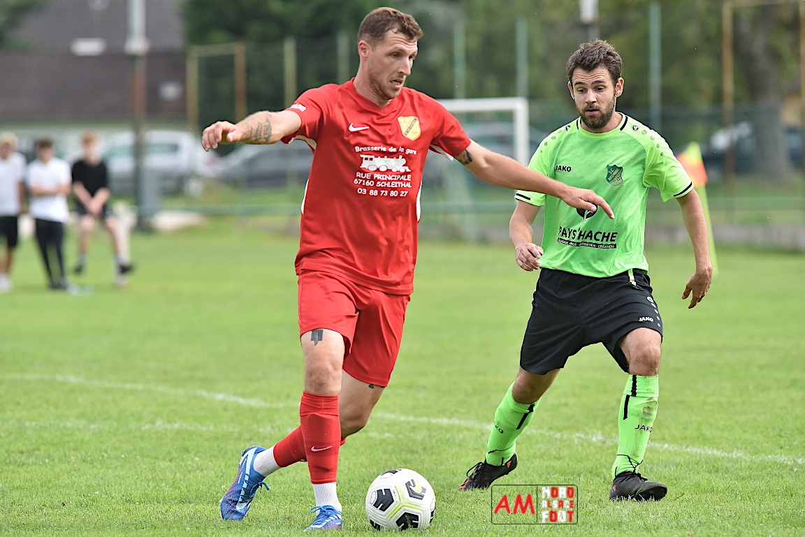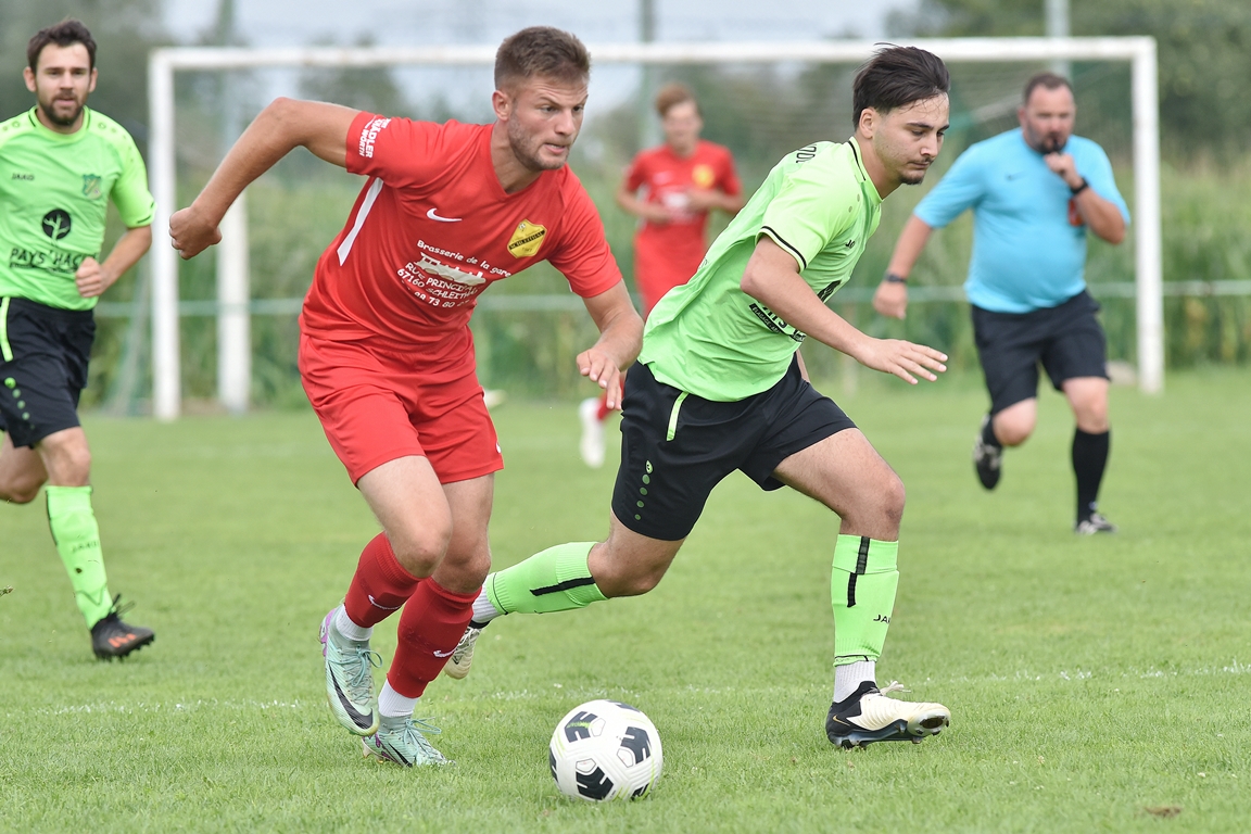 A l’occasion du troisième match comptant pour la deuxième journées des “Journées Foot” organisées par l’ASStB Leutenheim, le SC Roeschwoog (District 2) affrontait l’US Schleithal (Régional 3) afin de travailler les derniers automatismes avant la reprise de la compétition officielle intervenant dans deux semaines. Après une première période se soldant par un court avantage en faveur des protégés de Schmitt Geoffrey (0-1), ces derniers allaient creuser l’écart en seconde période en ajoutant deux buts au compteur afin de s’adjuger une victoire convaincante sur ce score de 0-3! Retrouvez, ci-dessous, quelques images de cette rencontre et, pour en apprécier le contenu, veuillez cliquer sur l’une d’entre-elles pour afficher le diaporama.