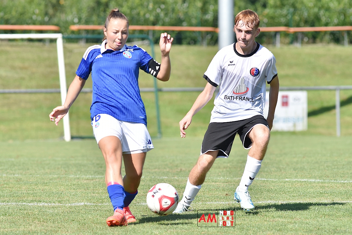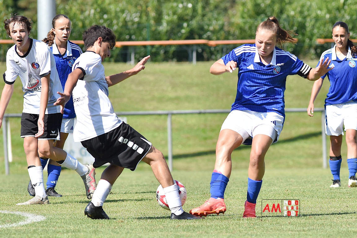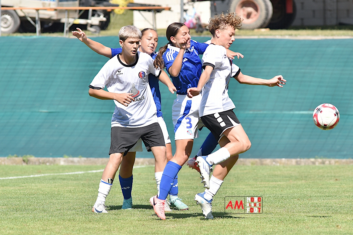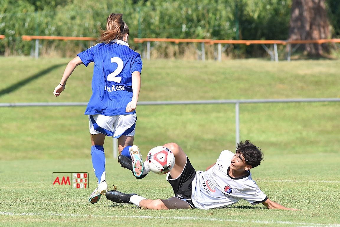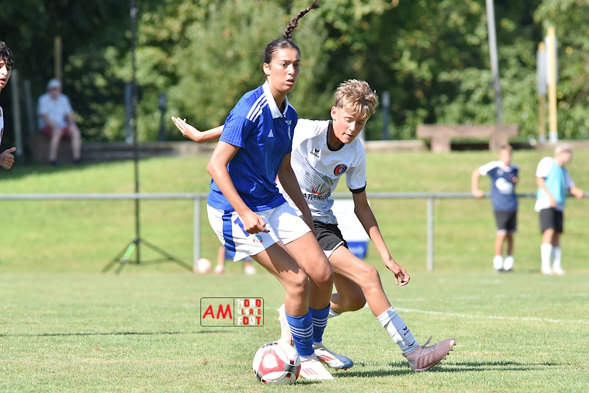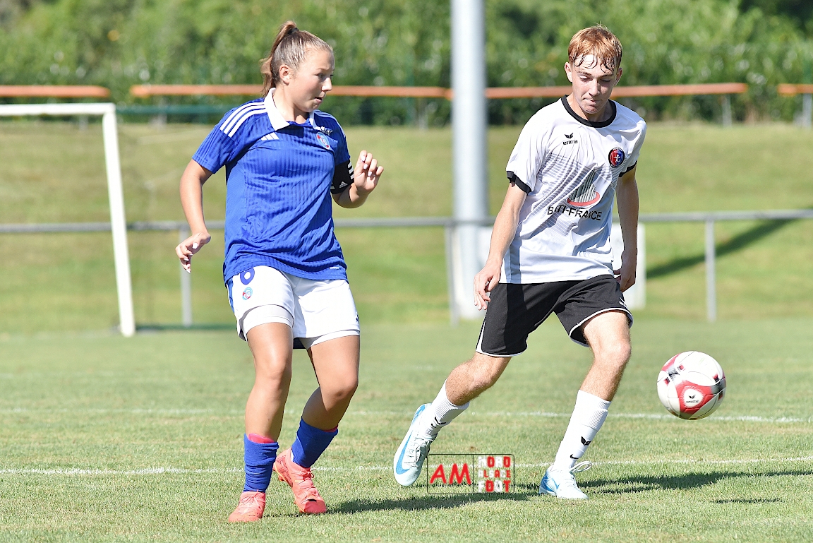 A l’occasion du premier match comptant pour la seconde journée de la Fête d’été 2024 de l’AS Copains Hinterfeld, les U19/F du RC Strasbourg Alsace affrontaient les U15 du KOMETRIB afin de tenter de travailler les automatismes, et ce, face à des adversaires déterminés à faire un résultat ce jeudi matin. Après une première période se soldant par un court avantage en faveur des masculins (0-1), ces derniers allaient aggraver le score en seconde période en ajoutant trois buts au compteur avant qu’ils ne s’imposent sur ce score de 0-4! Retrouvez, ci-dessous, quelques images de cette rencontre et, pour en apprécier le contenu, veuillez cliquer sur l’une d’entre-elles pour afficher le diaporama.