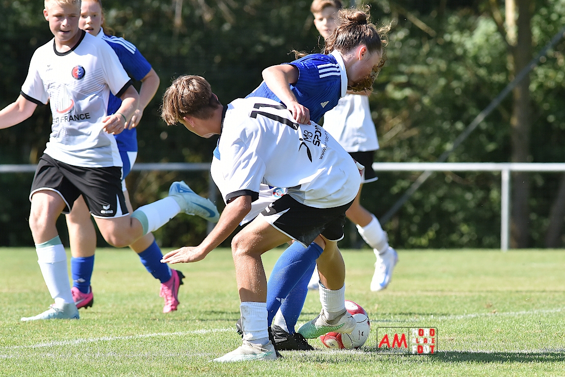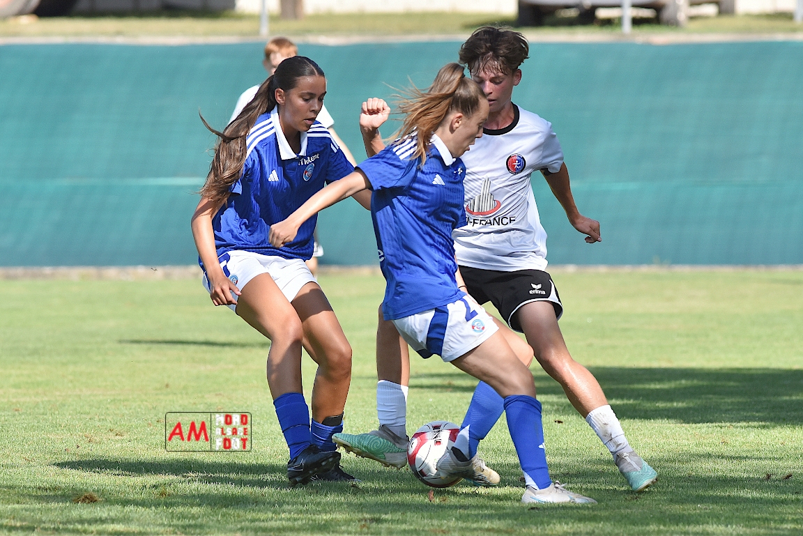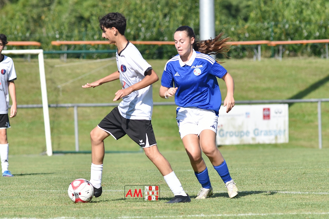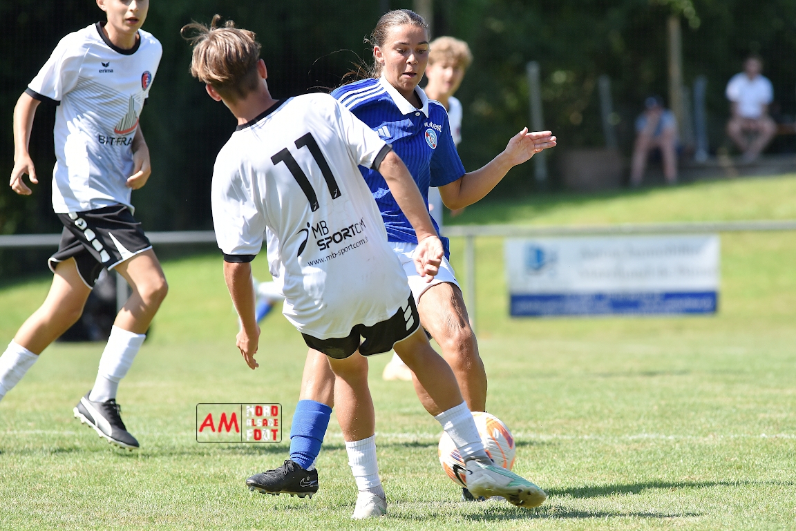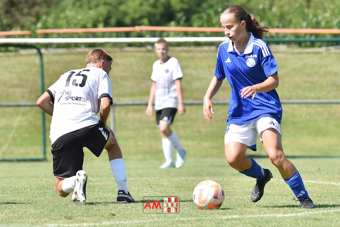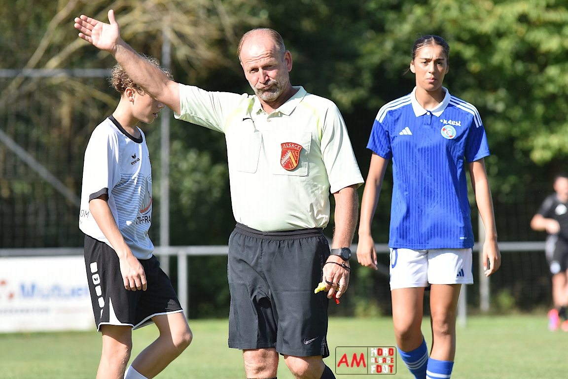 A l’occasion du premier match comptant pour la seconde journée de la Fête d’été 2024 de l’AS Copains Hinterfeld, les U19/F du RC Strasbourg Alsace affrontaient les U15 du KOMETRIB afin de tenter de travailler les automatismes, et ce, face à des adversaires déterminés à faire un résultat ce jeudi matin. Après une première période se soldant par un court avantage en faveur des masculins (0-1), ces derniers allaient aggraver le score en seconde période en ajoutant trois buts au compteur avant qu’ils ne s’imposent sur ce score de 0-4! Retrouvez, ci-dessous, quelques images de cette rencontre et, pour en apprécier le contenu, veuillez cliquer sur l’une d’entre-elles pour afficher le diaporama.