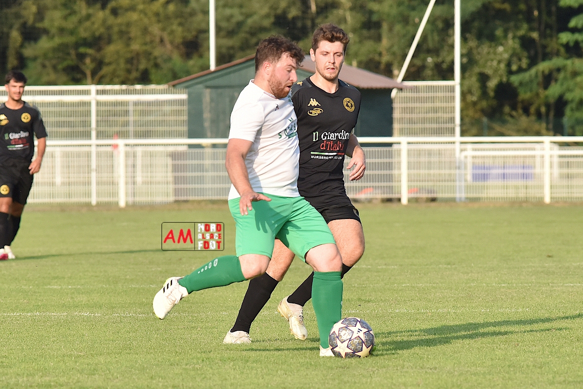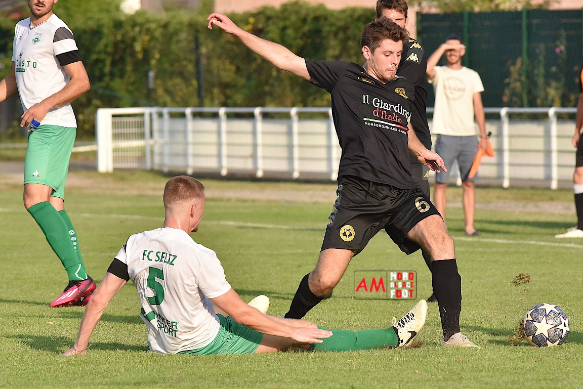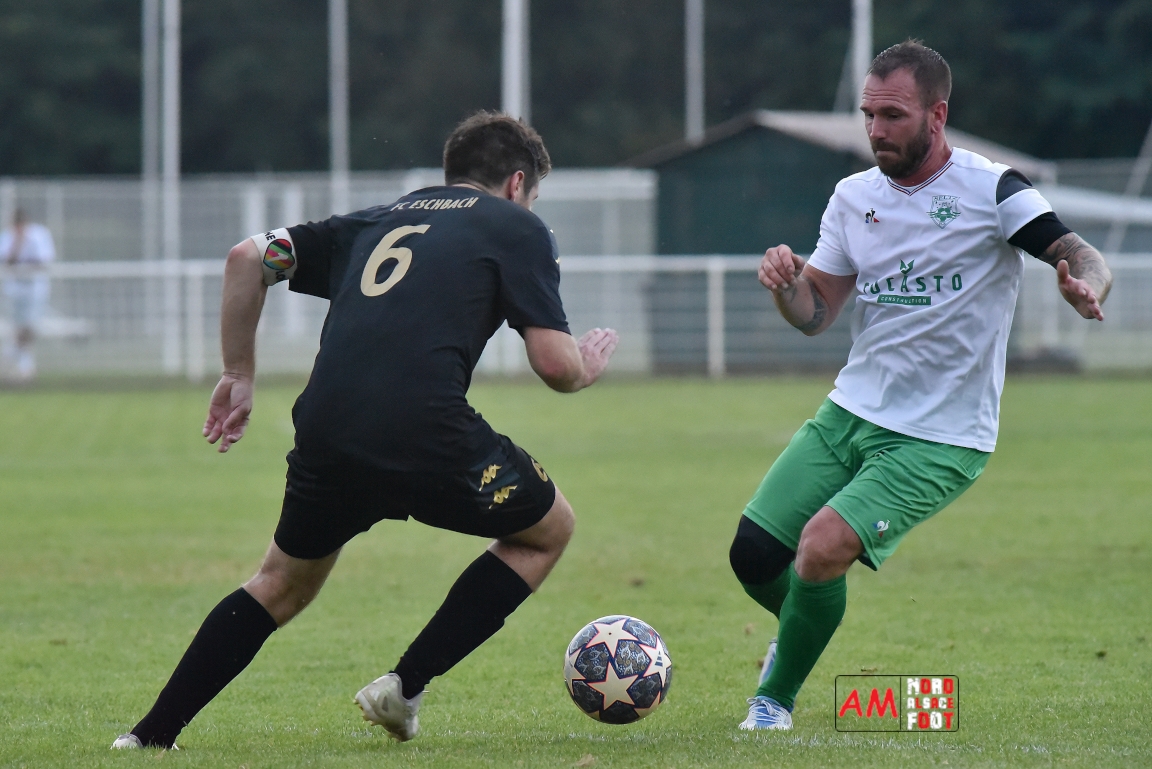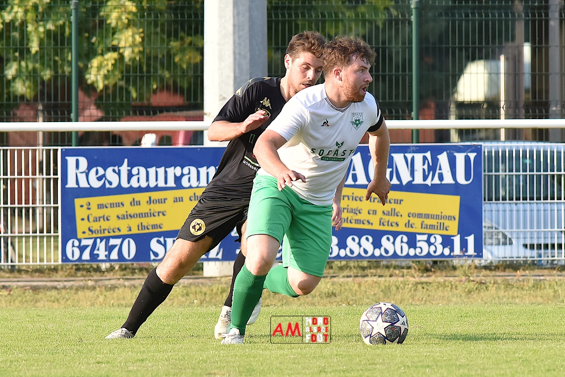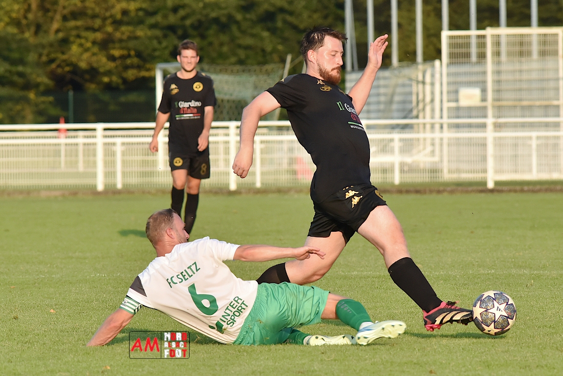 A l’occasion d’un match avancé comptant pour la première journée de championnat en District 3 (Poule B), le FC Seltz 2 accueillait le FC Eschbach afin de tenter d’enregistrer leur(s) premier(s) point(s) de la saison, et ce, face à des adversaires fiers d’un premier succès décroché lors du premier tour de la Coupe de France face au FC Batzendorf (4-1). Après une première période se soldant par un score nul et vierge, les Eschbachois ouvrirent le score à la 57e minute de jeu par l’intermédiaire de Haber Antoine avant que les locaux ne craquent totalement en fin de rencontre en encaissant deux buts quasiment coup sur coup, ces derniers étant inscrits par Ehrhart Arthur (84e) et Billard Maxime (87e). Retrouvez, ci-dessous, quelques images de cette rencontre et, pour en apprécier le contenu, veuillez cliquer sur l’une d’entre-elles pour afficher le diaporama.