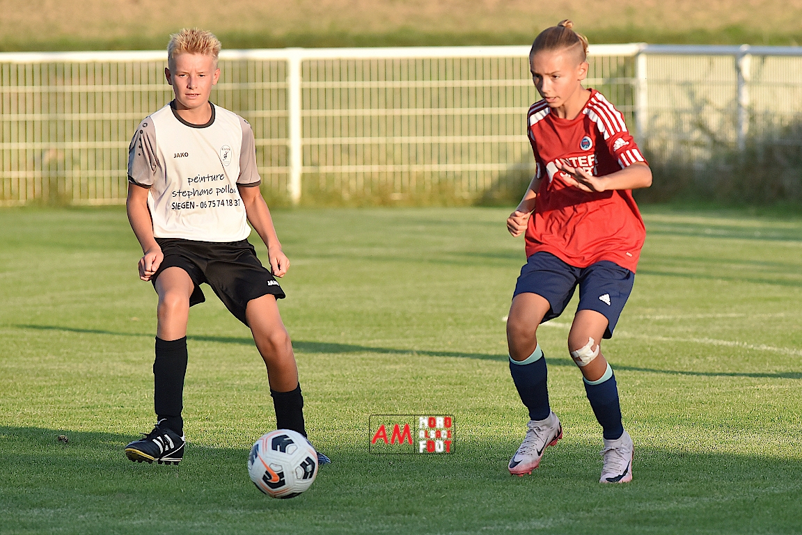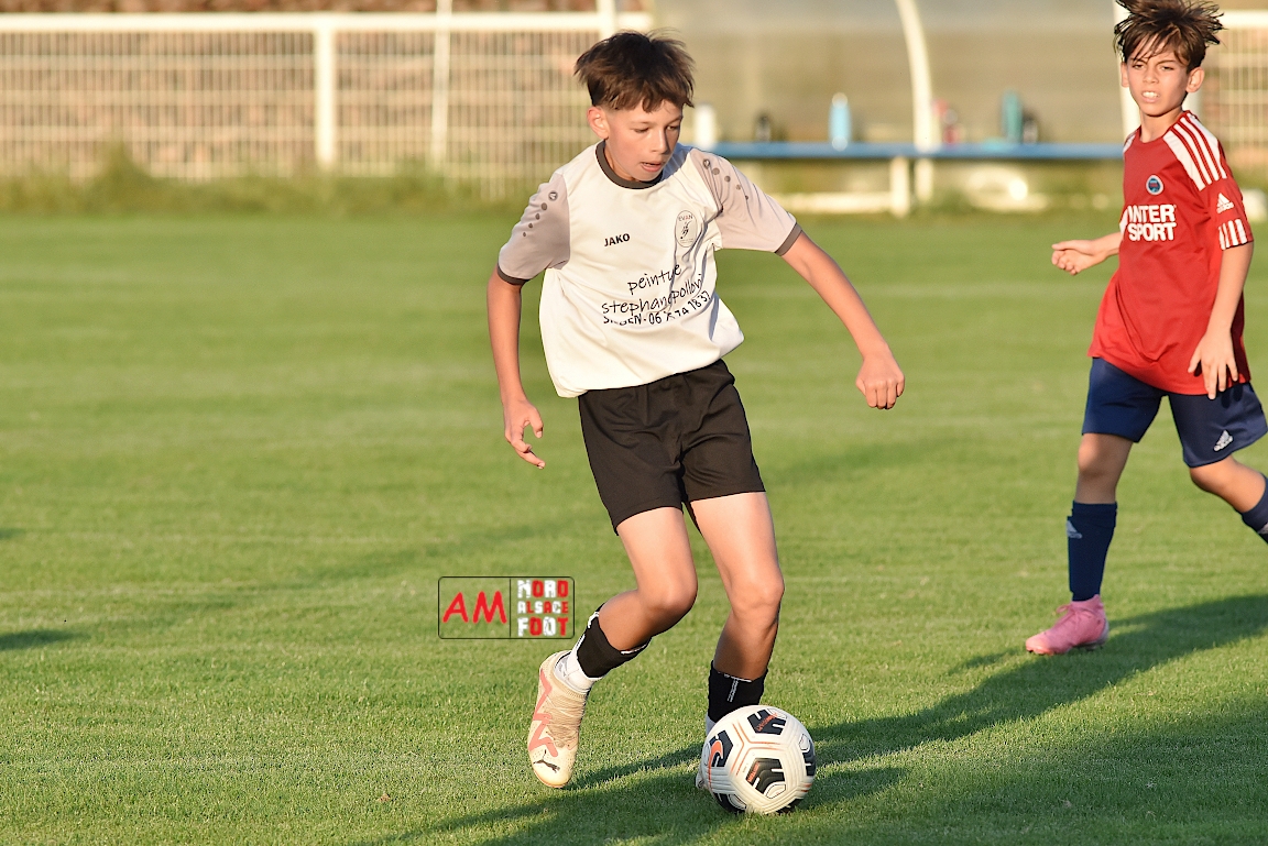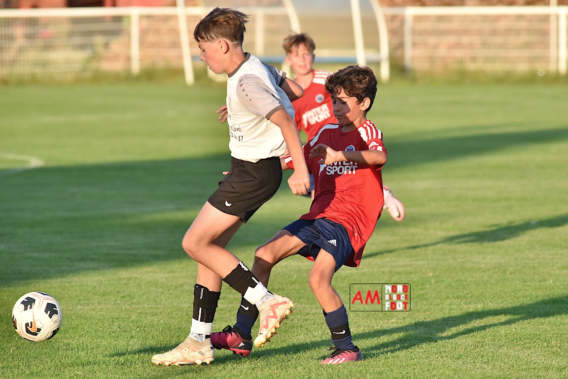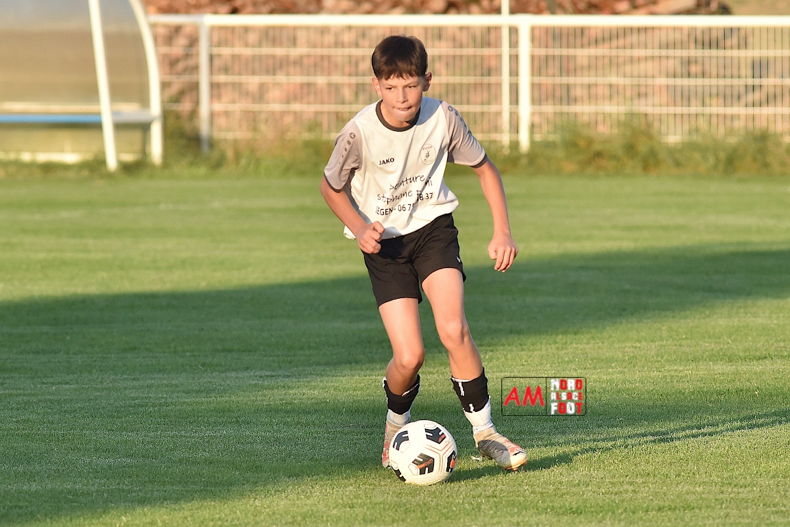 A l’occasion d’un match de préparation, les U13-1 du Groupement Jeunes d’Alsace du Nord (District 1) accueillaient les U13-2 du FCSR Haguenau (District 2) afin de peaufiner les derniers automatisme avant la reprise du championnat prévue le 7 septembre prochain avec la réception du FCOSK 06 pour le GJAN et avec le déplacement à Seltz pour le FCSR Haguenau. Après une première période se soldant par un large avantage en faveur des locaux (5-2), les débats allaient s’équilibrer en seconde période, ce qui n’empêcha pas les locaux d’ajouter un but au compteur avant qu’ils ne s’imposent sur ce score de 6-2! Retrouvez, ci-dessous, quelques images de cette rencontre et, pour en apprécier le contenu, veuillez cliquer sur l’une d’entre-elles pour afficher le diaporama.