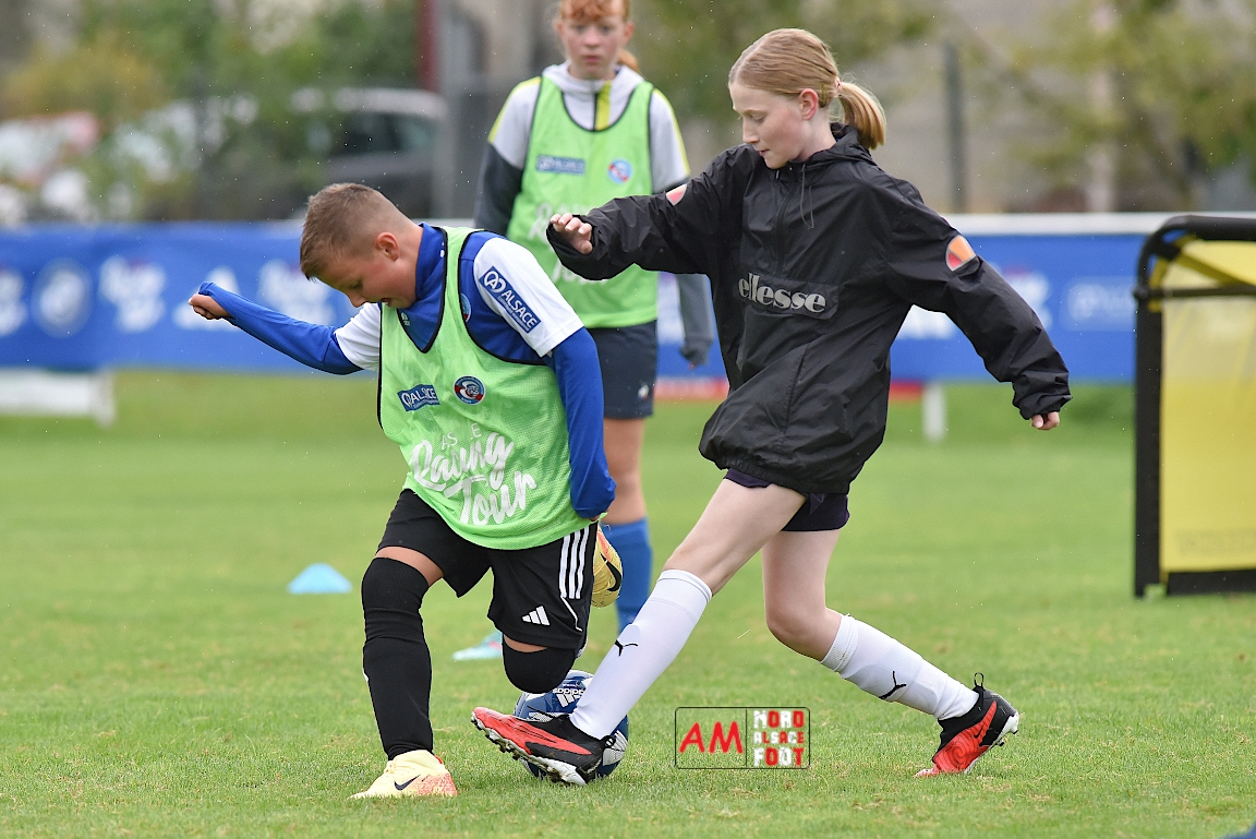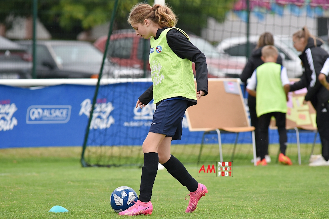 A l’occasion d’une étape de l’Alsace Racing Tour sur les installations du FC Riedseltz, vingt joueurs de la catégorie U11 et 20 joueuses de la catégorie U13 se sont données rendez-vous au Stade Municipal. Renouvelant les “mercredis du foot” ayant marqué de nombreuses générations de footballeurs, l’Alsace Racing Tour va à la rencontre des clubs du District d’Alsace en proposant des ateliers ludiques, animations football et tournoi au jeunes footballeurs garçons et filles de moins de treize ans avant qu’un goûter ne clôture l’évènement. Retrouvez, ci-dessous, quelques images de cet évènement et, pour en apprécier le contenu, veuillez cliquer sur l’une d’entre-elles pour afficher le diaporama.