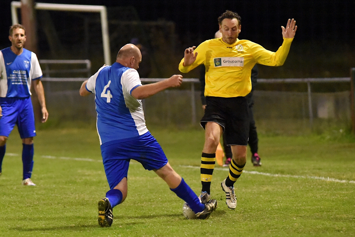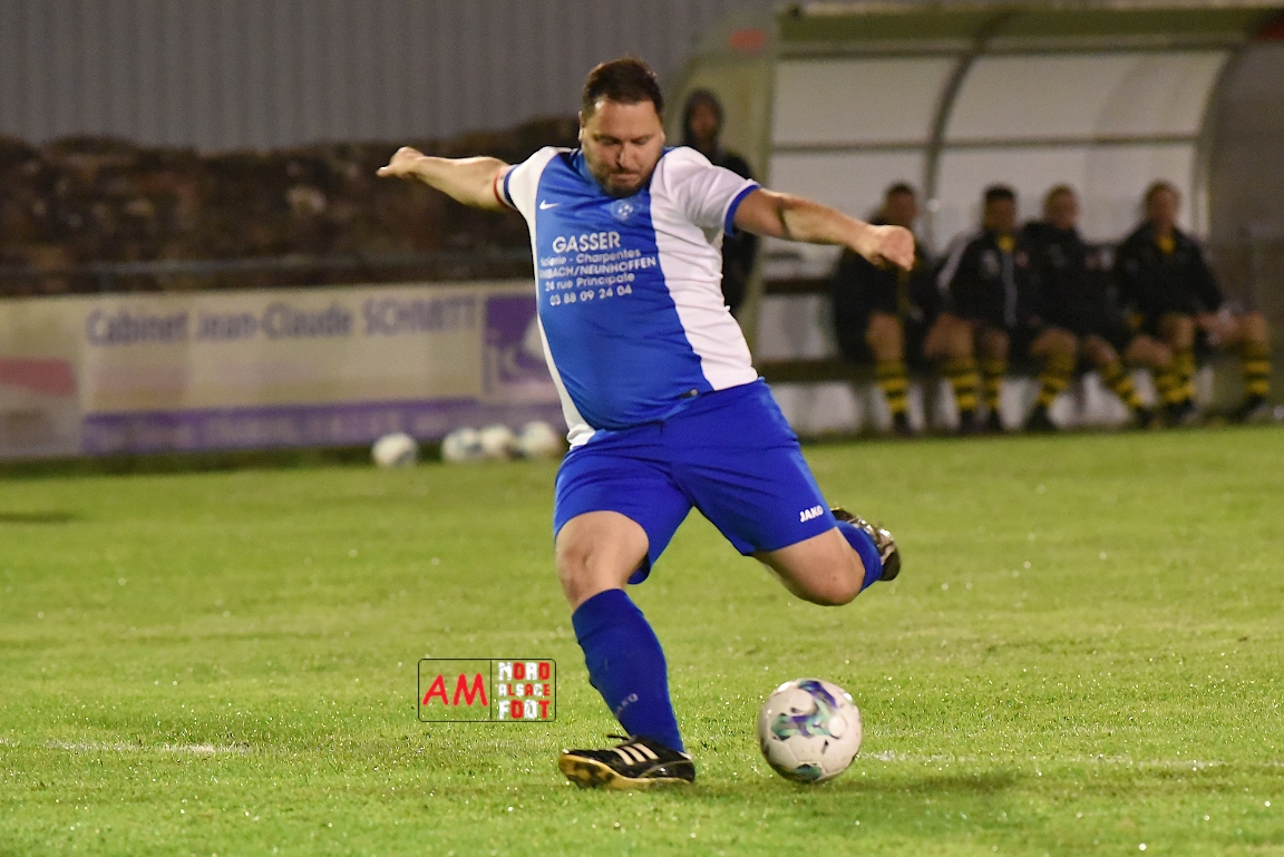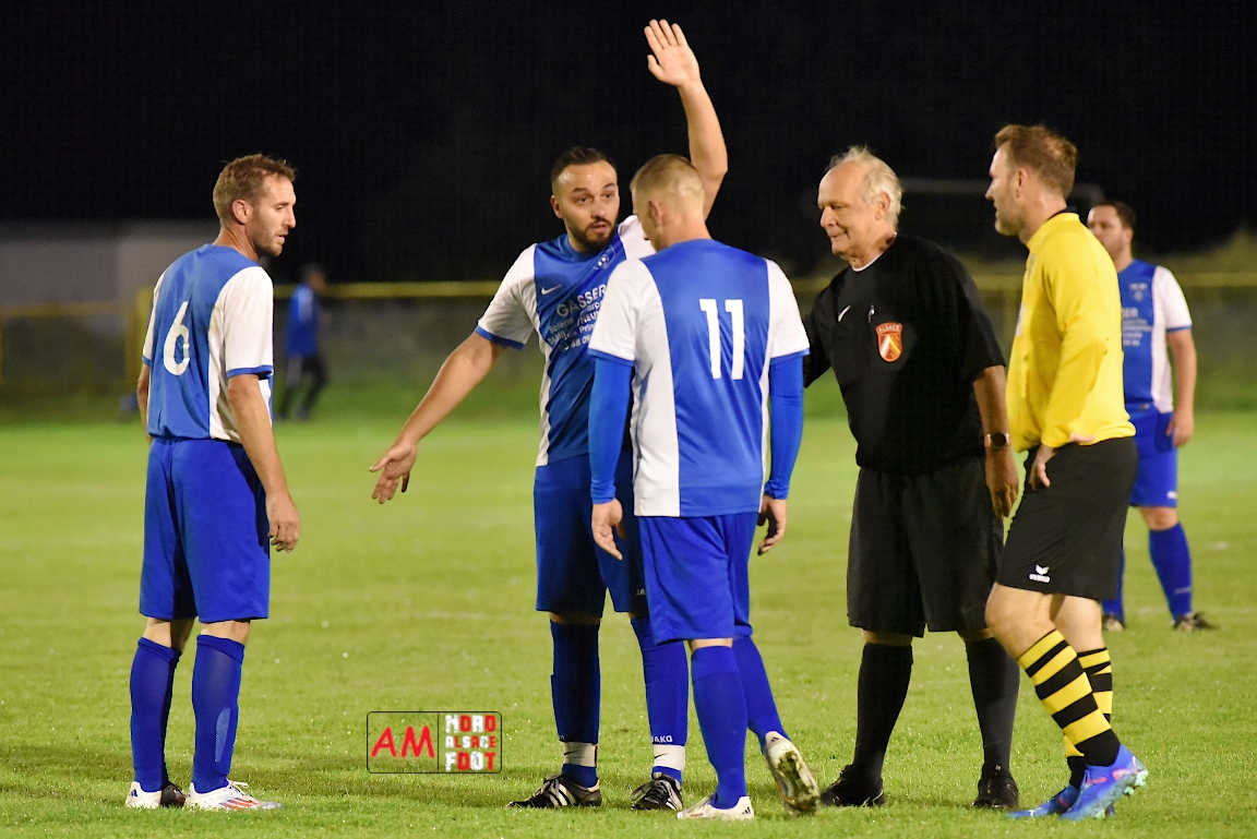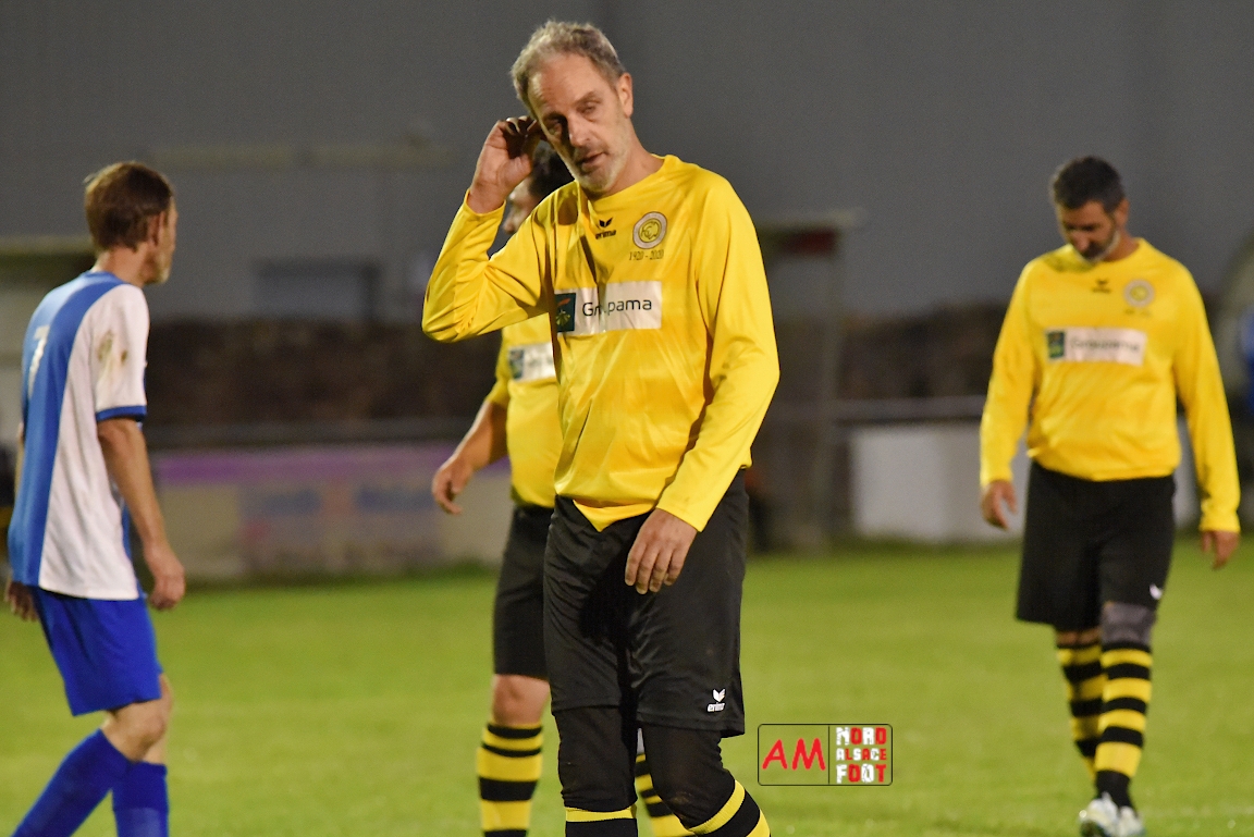 A l’occasion du premier tour de la Coupe d’Alsace Vétérans, l’entente Wissembourg/EWAS 81 accueillait le FC Dambach/Neunhoffen 81 afin de tenter d’enchaîner après la victoire décrochée, vendredi dernier, face à l’Entente Vétérans de l’Outre-Forêt (4-0), et ce, face à des adversaires débutant la compétition officielle ce vendredi. Après une première période se soldant par un score de parité grâce à l’ouverture du score des visiteurs signée Unal Sadik (29e) contre une égalisation des locaux signée Oztas Sadullah (34e), les jaunes et noirs allaient prendre le large en seconde période grâce à un triplé de Hof Vincent (36e, 37e, 43e) avant qu’il n’encaisse un but étant inscrit par Eppinger Morgan (70e), ce qui n’empêcha pas l’entente locale de s’imposer sur ce score de 4-2! Retrouvez, ci-dessous, quelques images de cette rencontre et, pour en apprécier le contenu, veuillez cliquer sur l’une d’entre-elles pour afficher le diaporama.